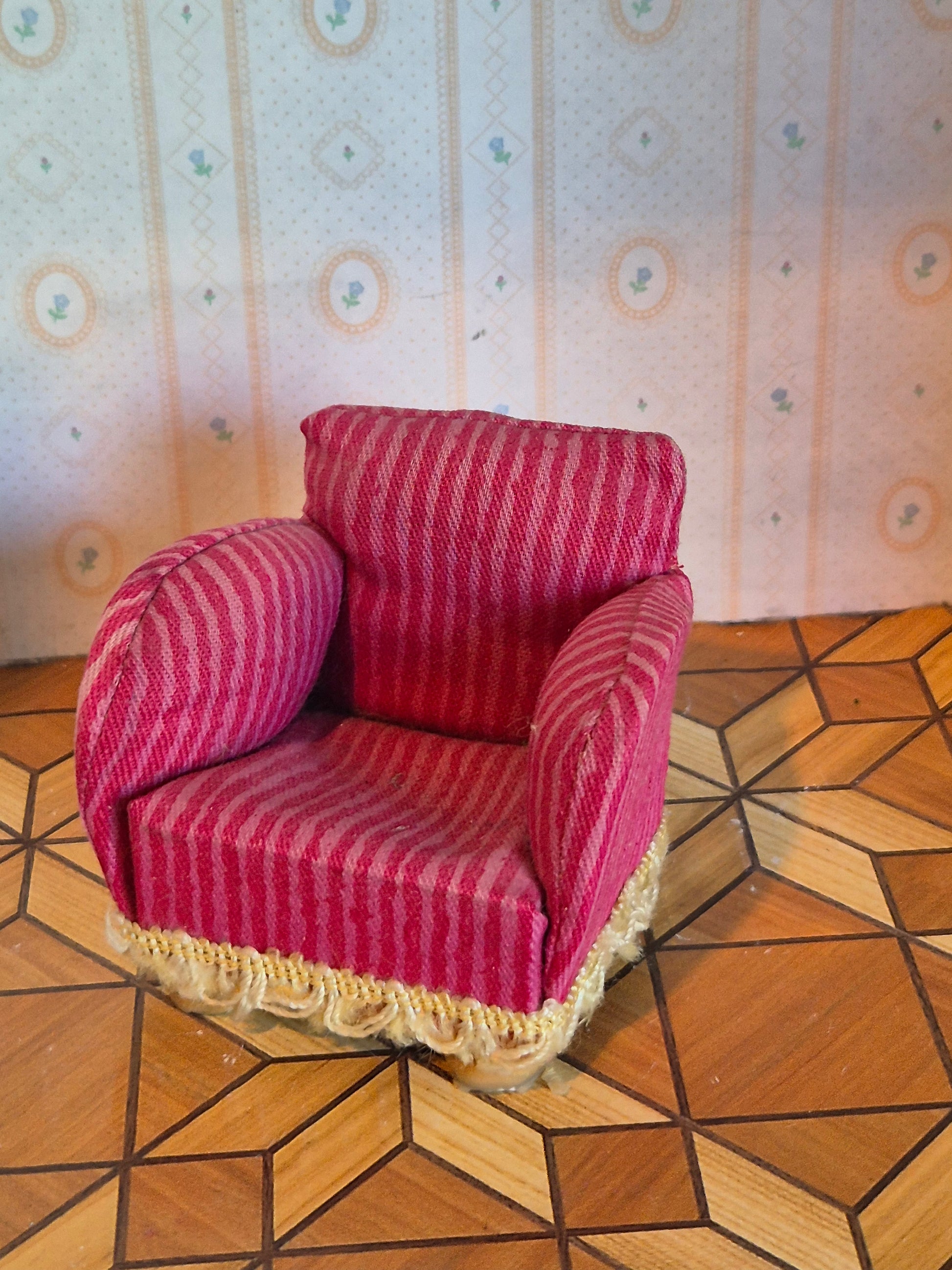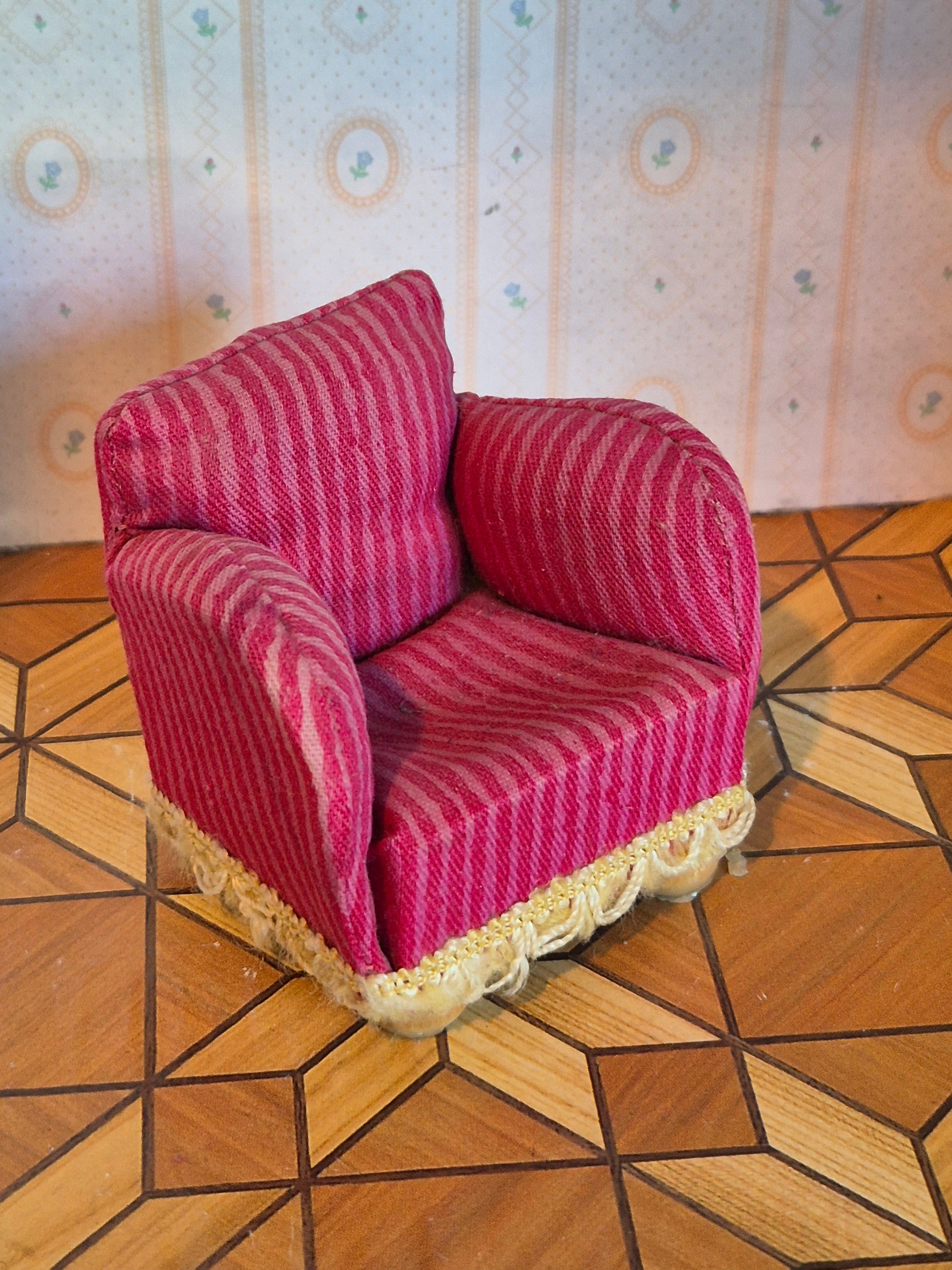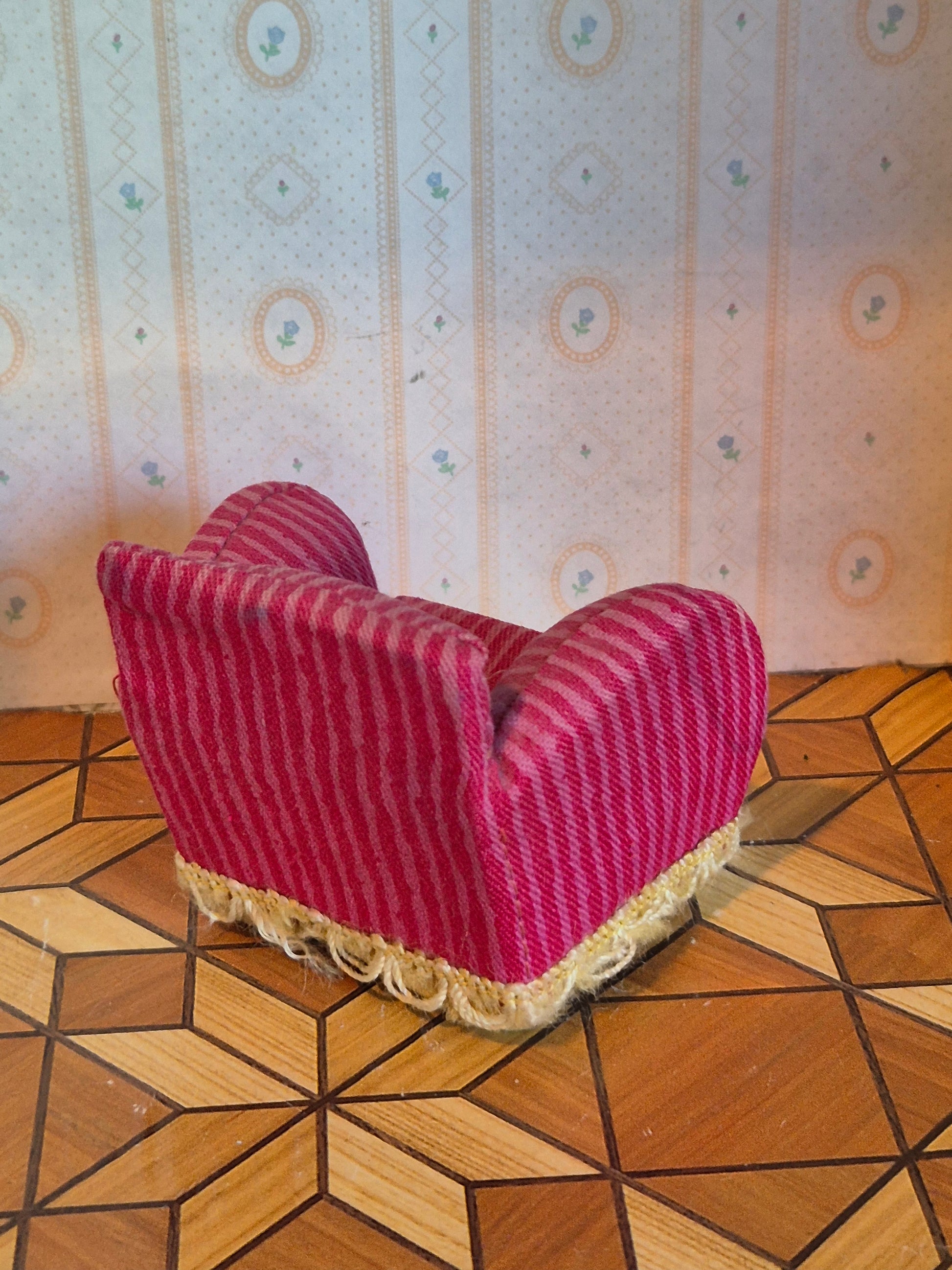 Ældre pink stribet Lerro lænestol med patina i udmærket stand