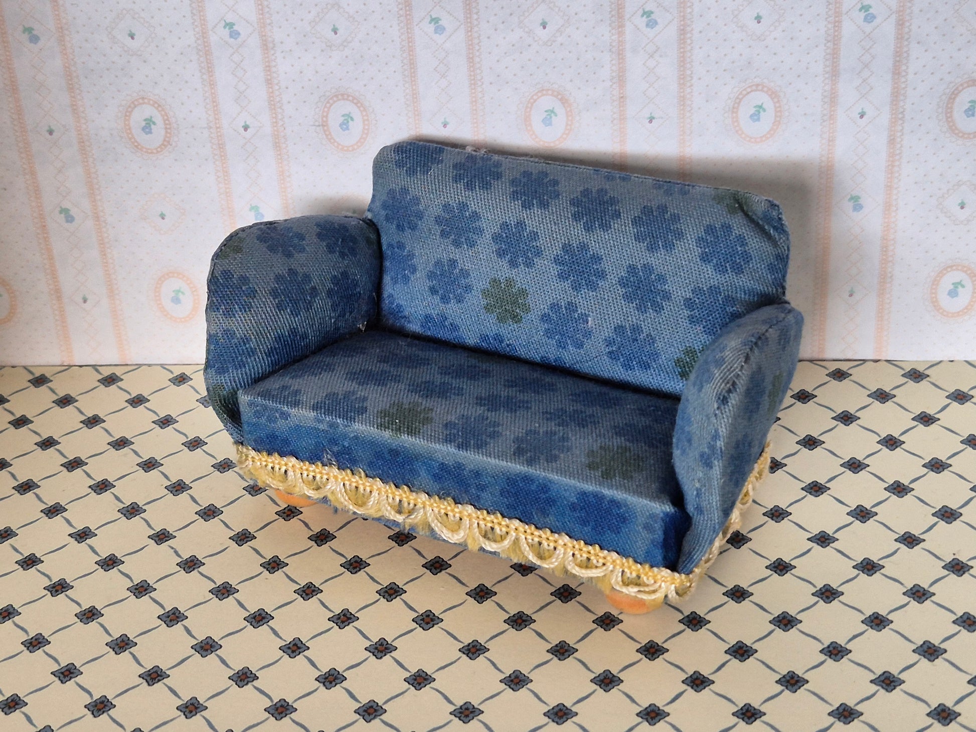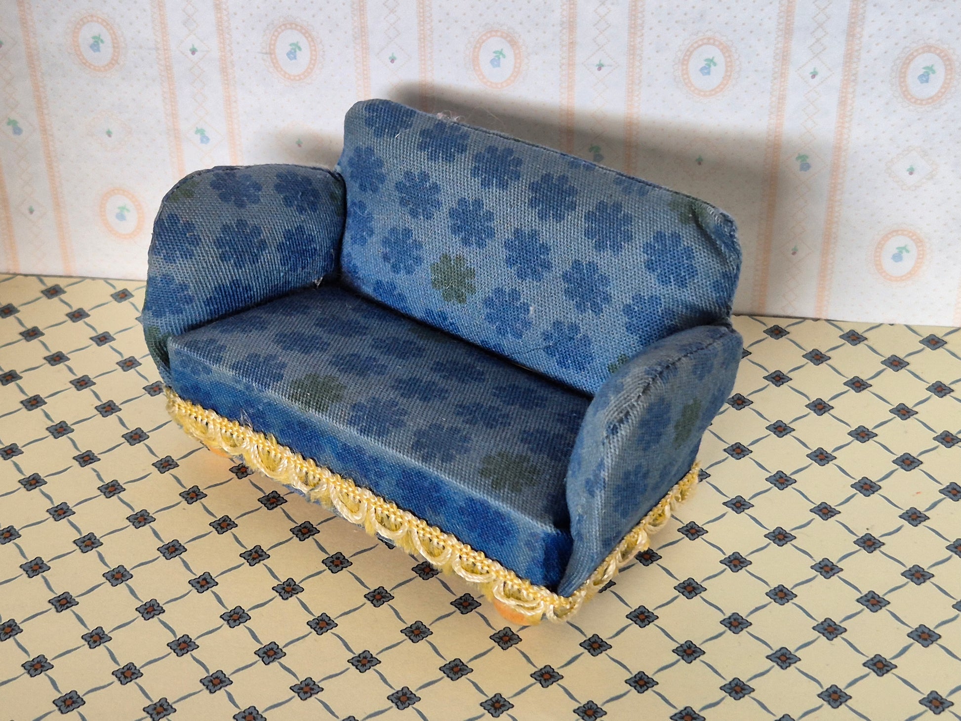 Vintage 1:16 sofa i lyseblå med mønster af mærket Lerro.
