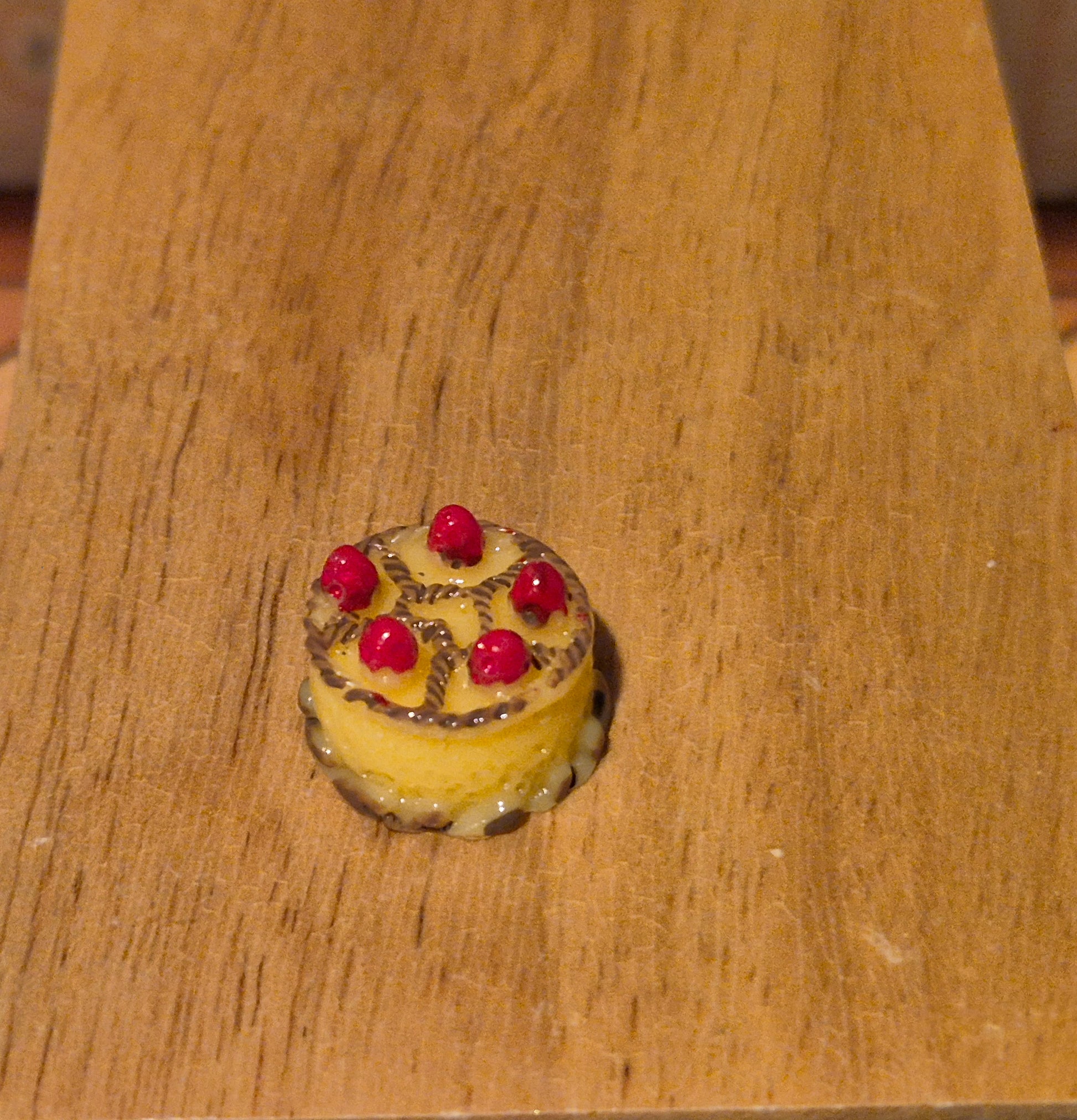 Lille lagkage af plast. Pæn og fin. Ca 1 cm