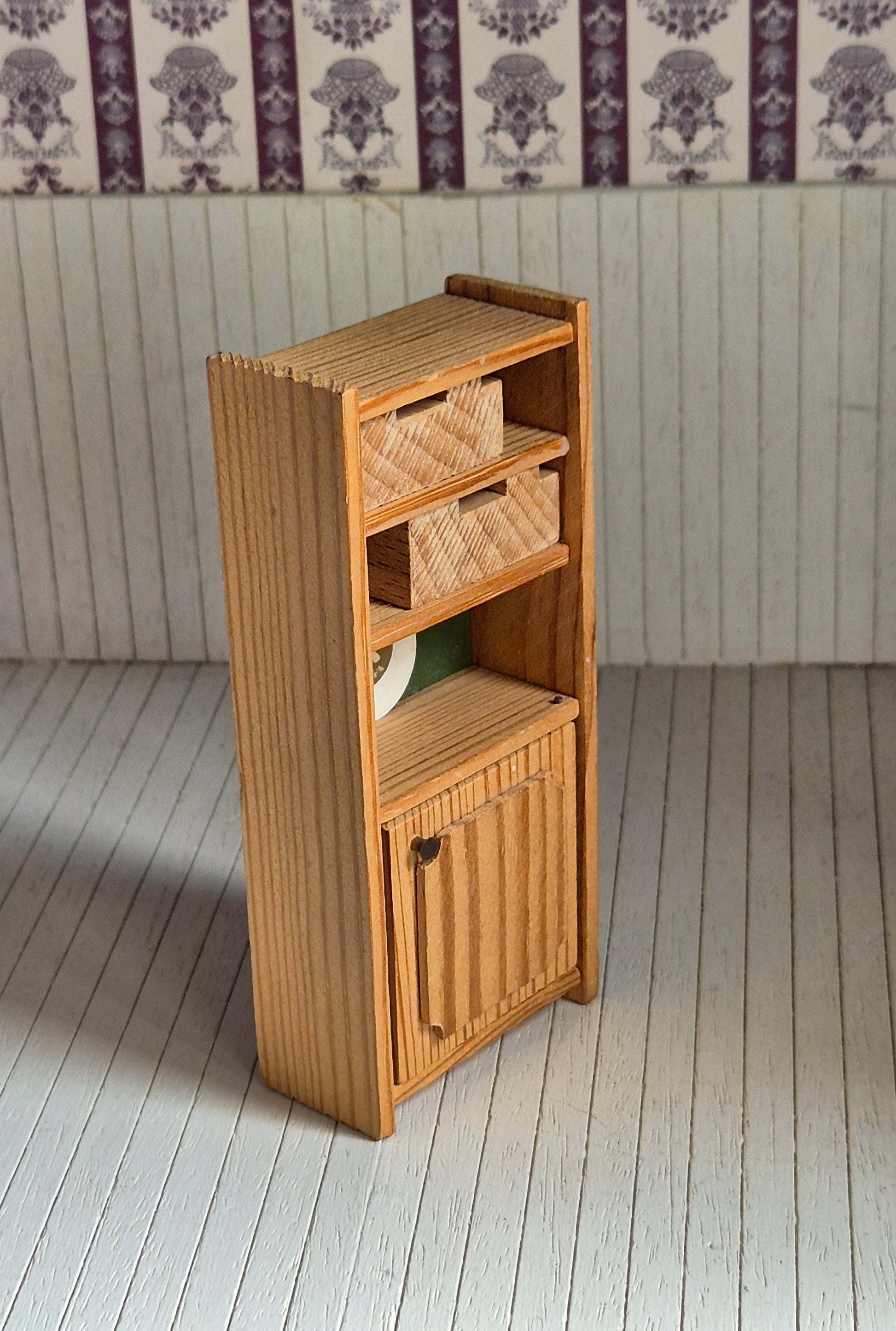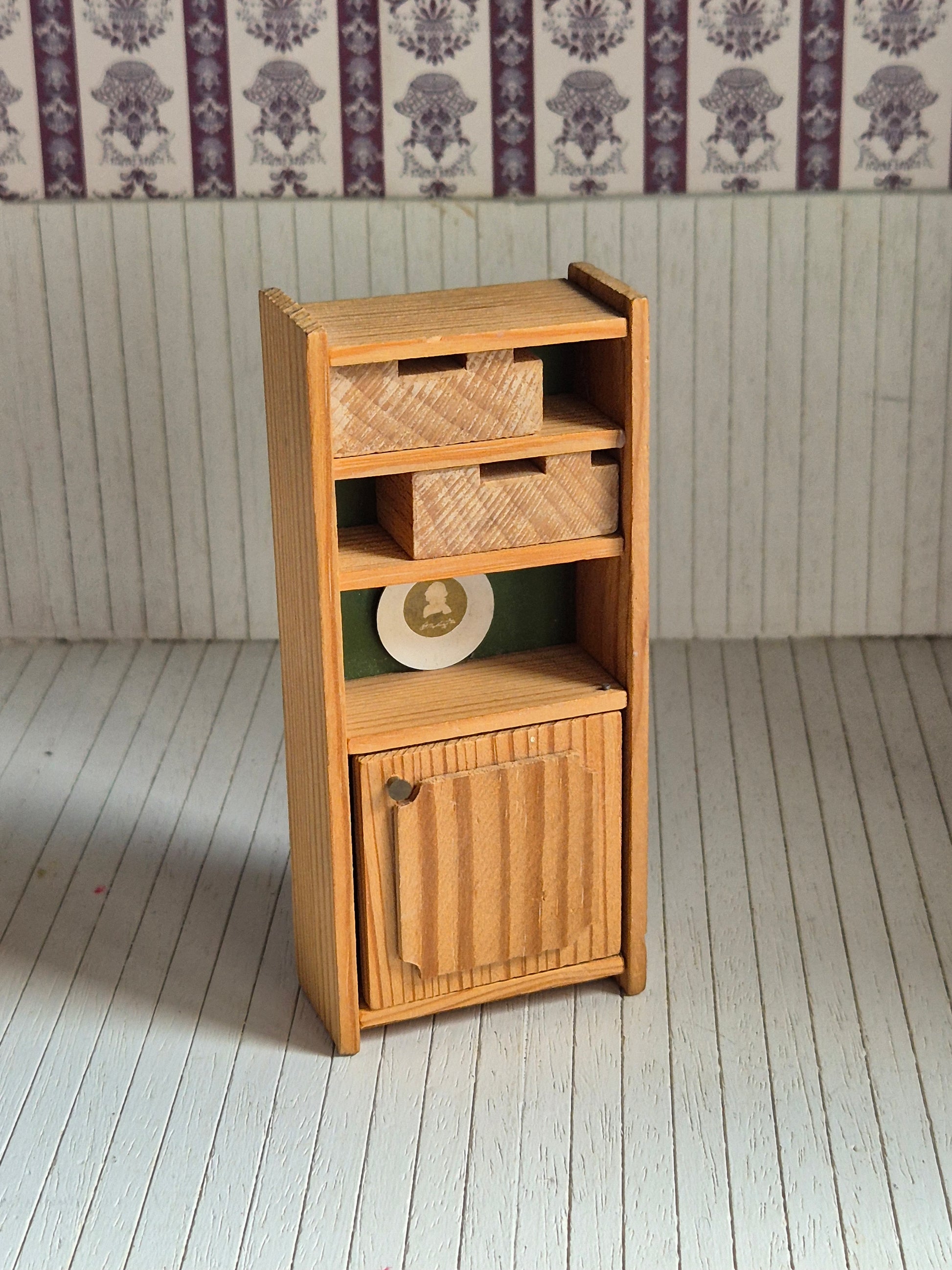 Bogreol af fyrretræ af mærket Lisa af Danmark. Ældre møbel til dukkehuset.