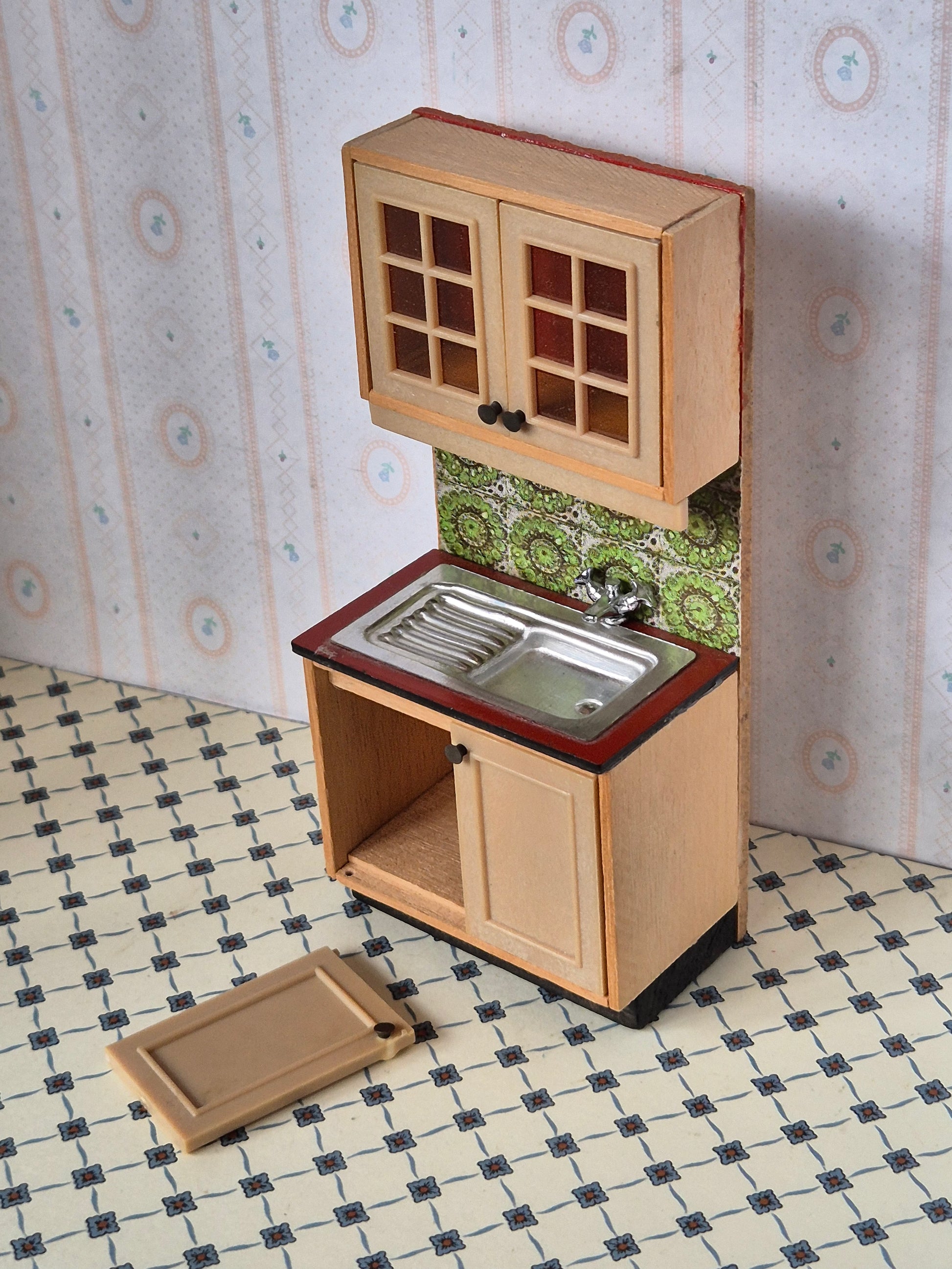 Vintage køkkenelement af Lisa af Danmark. En låge er knækket.