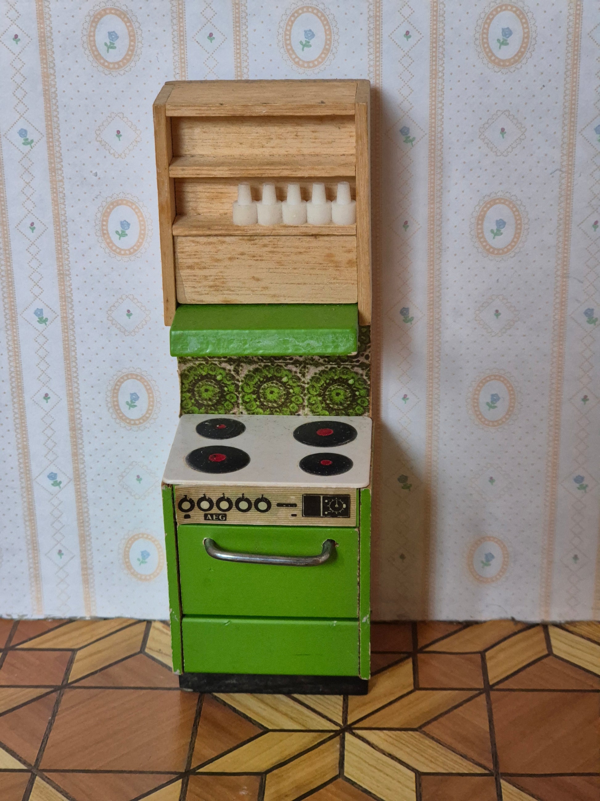 Lisa af Danmark komfur, grøn. Mangler emhætte klistermærket.