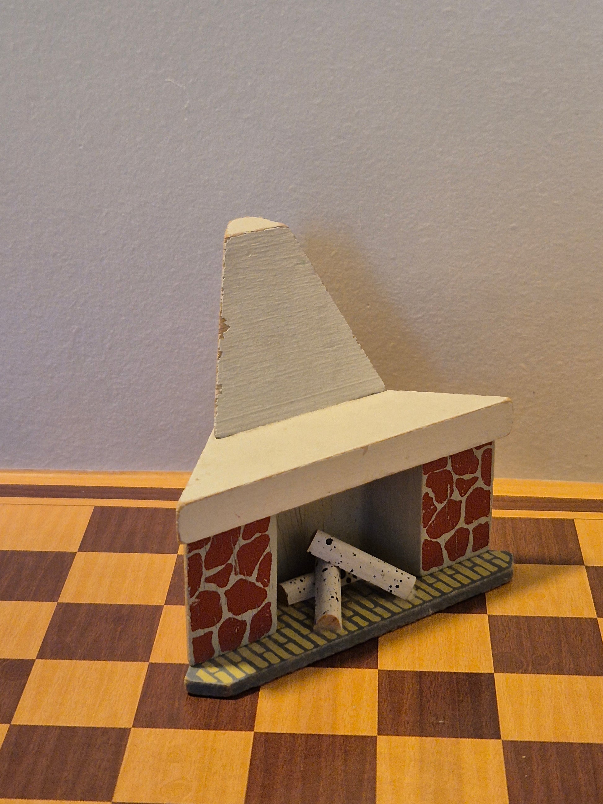 God Lisa af Danmark hjørnepejs 1:16 af træ med brugsspor og patina.