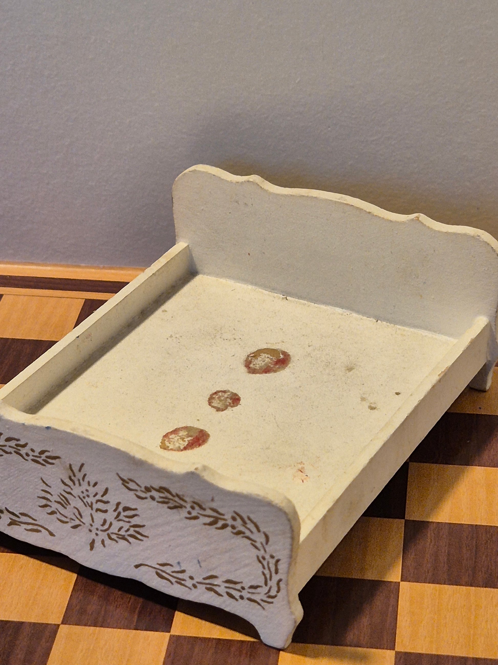 Vintage rokoko seng i hvid med pæne udskæringer og gylden detaljer. Udmærket stand. Det er lisa af Danmark. Der er limrester og patina
