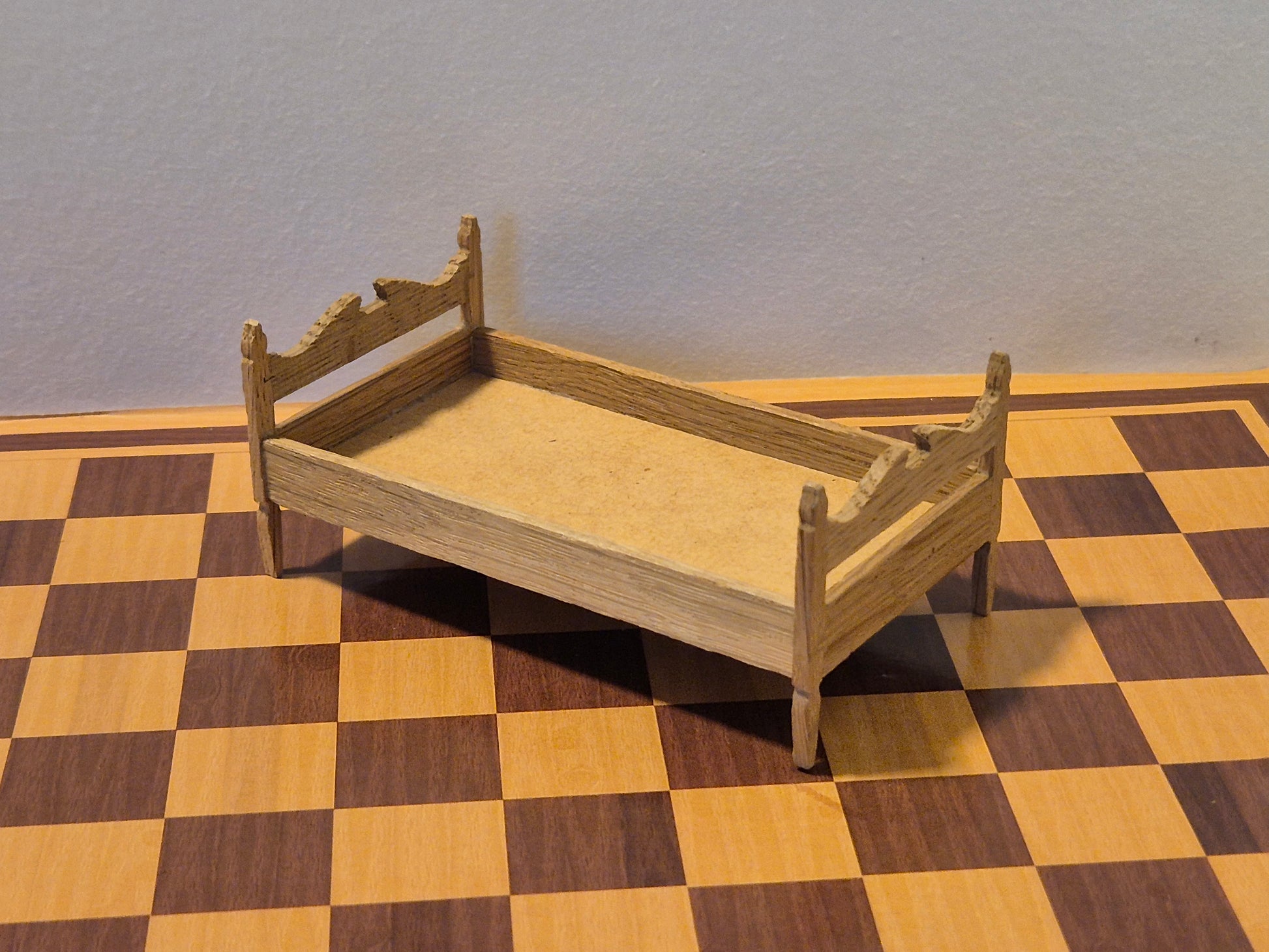 Pæn original og vintage egetræs enkeltseng af mærket Lisa af Danmark. Fine udskæringer og detaljer. Udmærket stand.