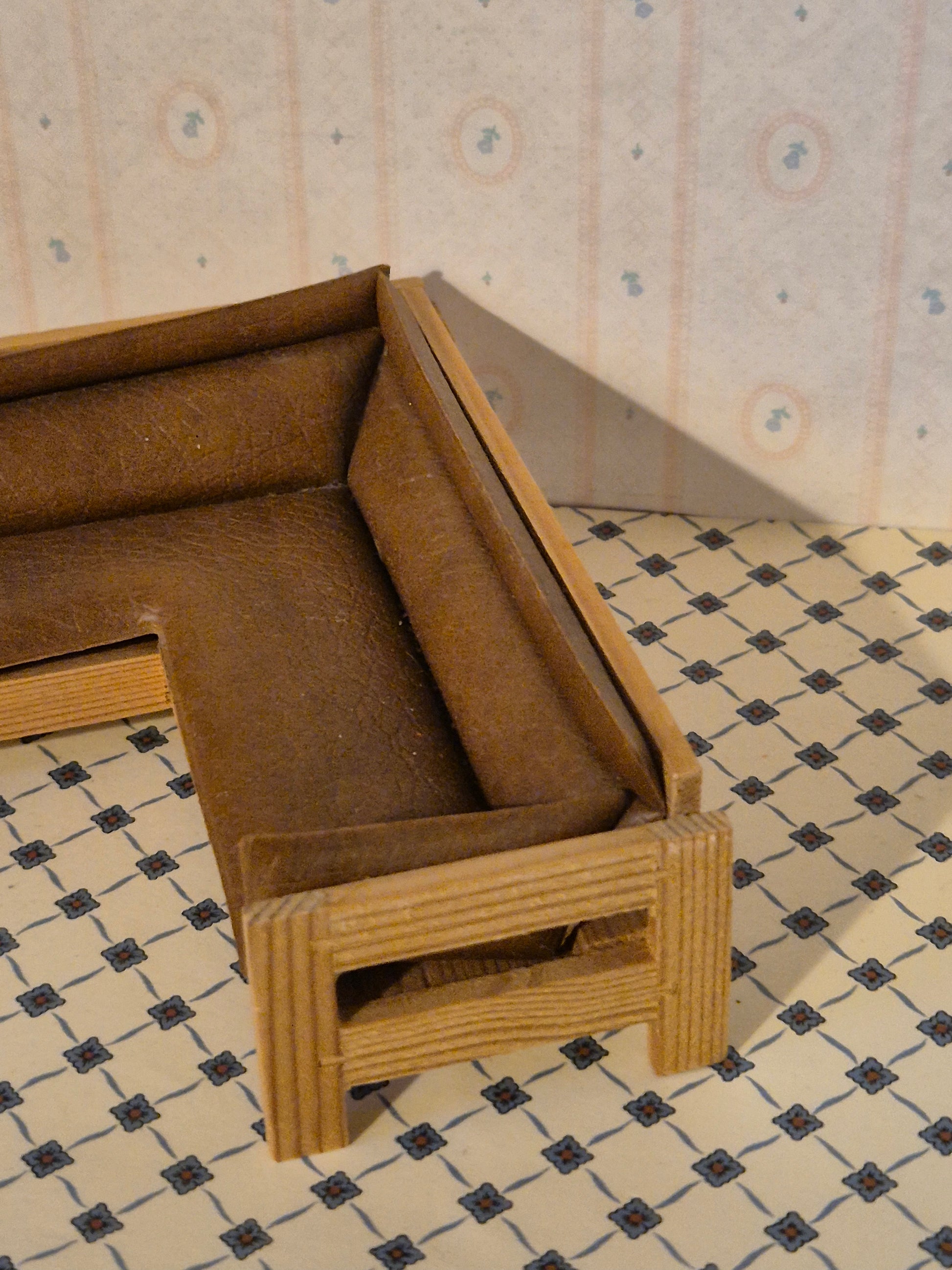 Pæn vintage hjørnesofa af træ med lysebrunt læderbetræk af mærket Lisa af Danmark. Rigtig fin og god stand.
