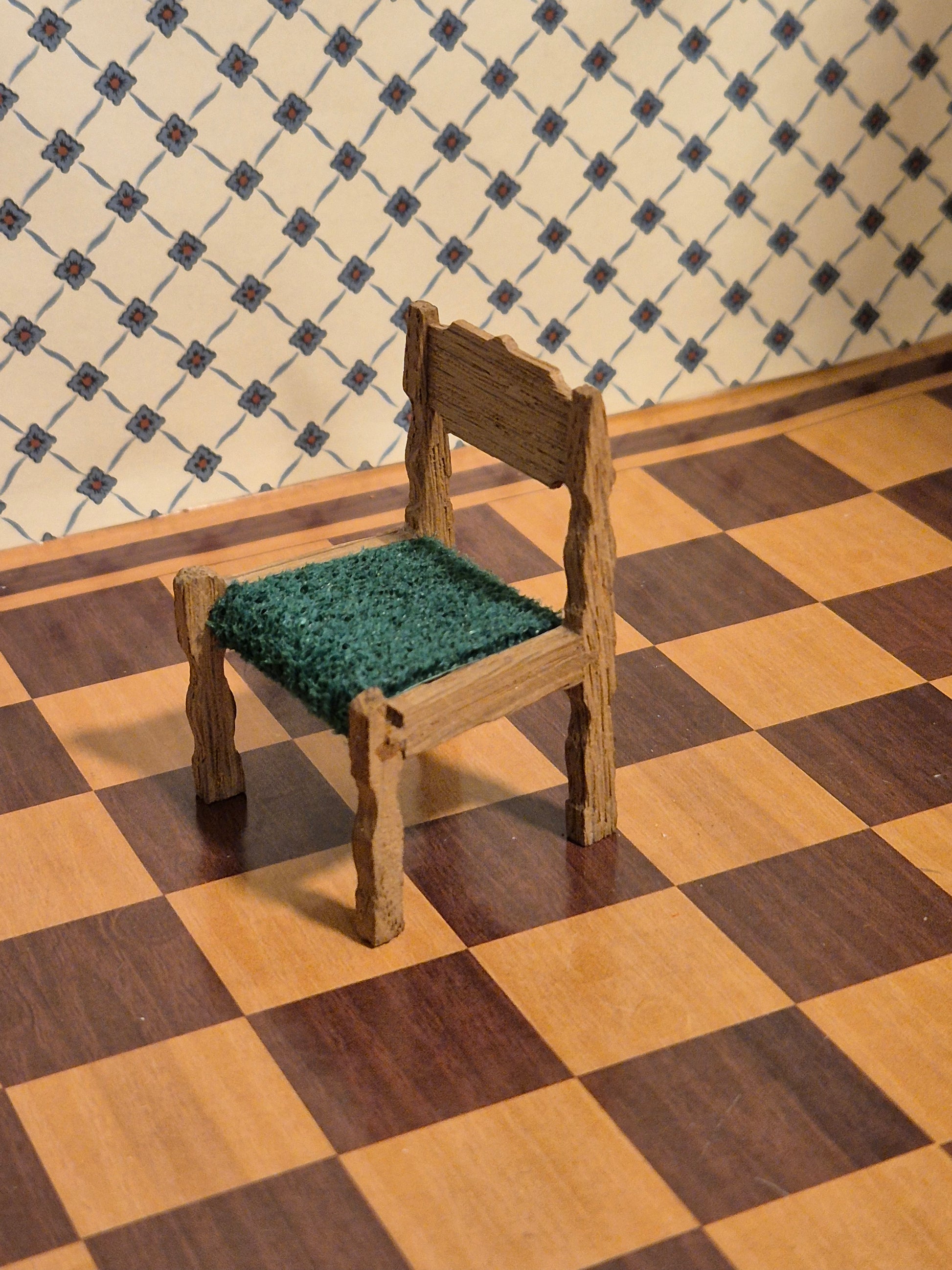 Vintage egetræ stol med grønt sæde af Lisa af Danmark, den er limet, har fejl og brugsspor.