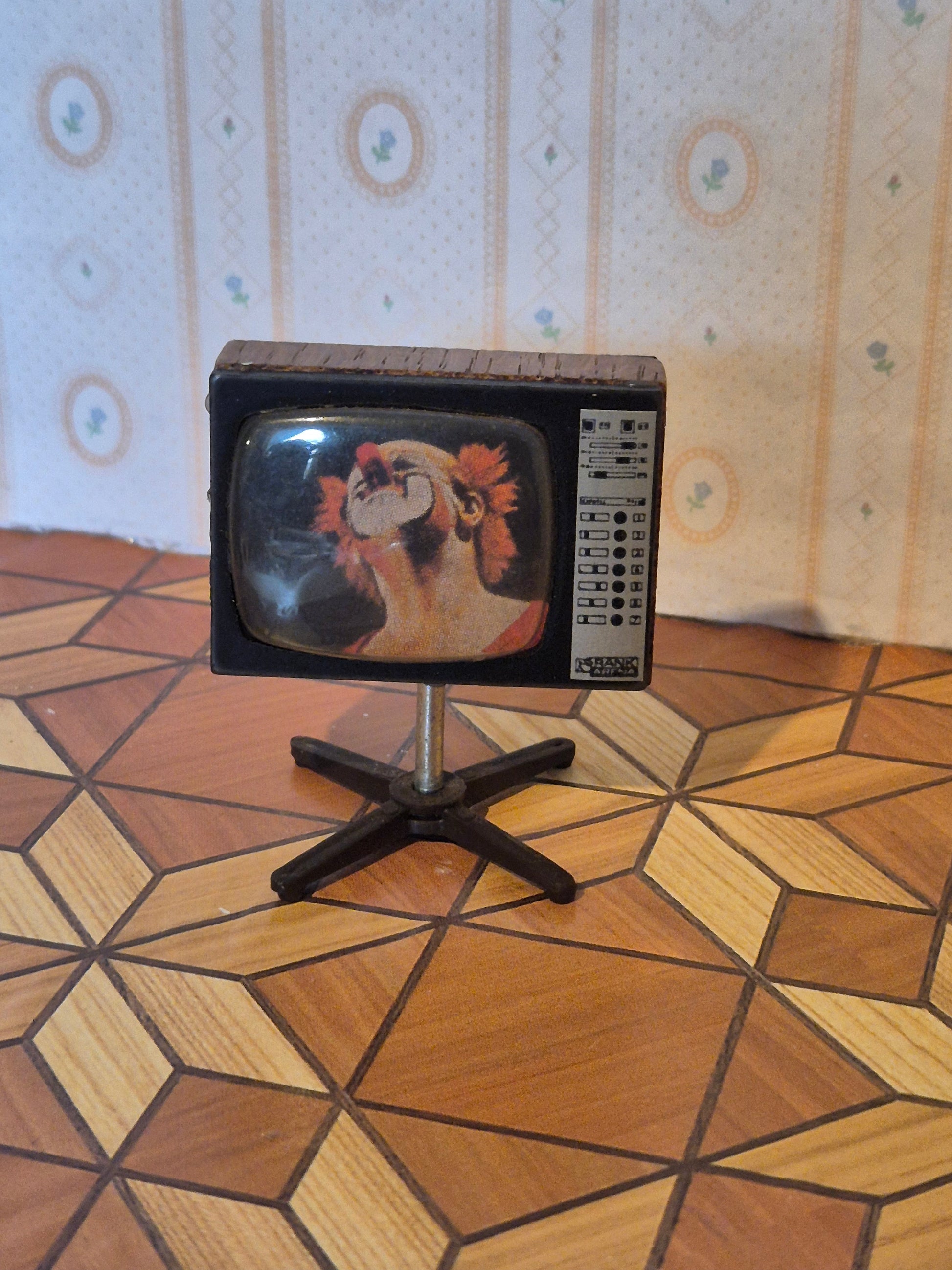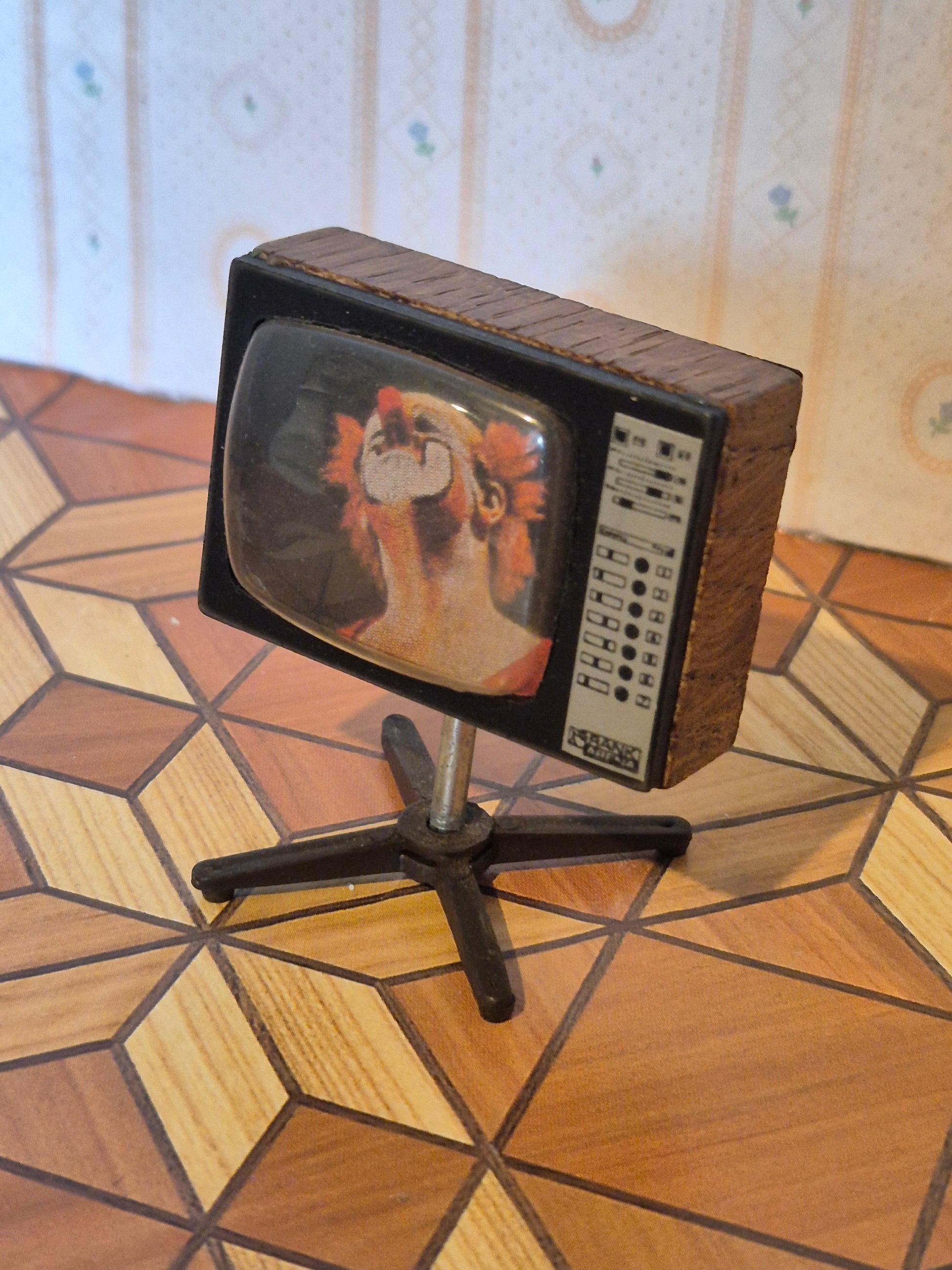 Flot og intakt, originalt TV med klovne skærmmotiv. Virkelig god stand.