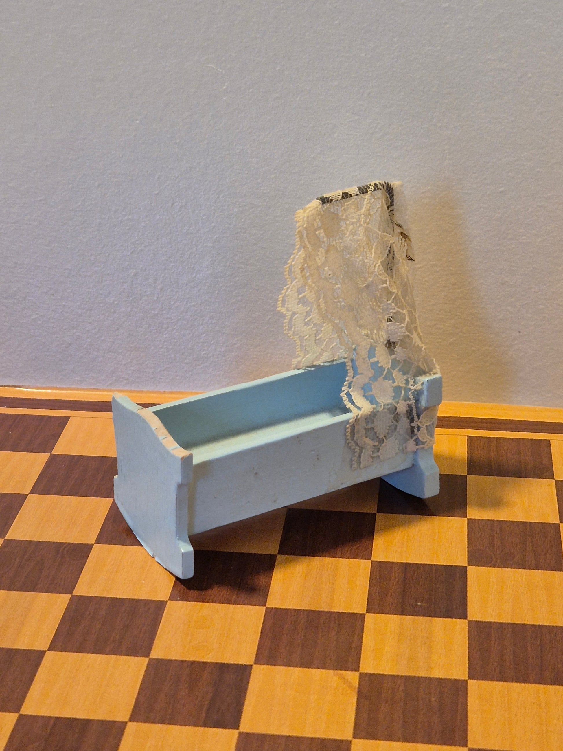 Udmærket god vugge i lyseblå af mærket Lisa af Danmark. Der er patina