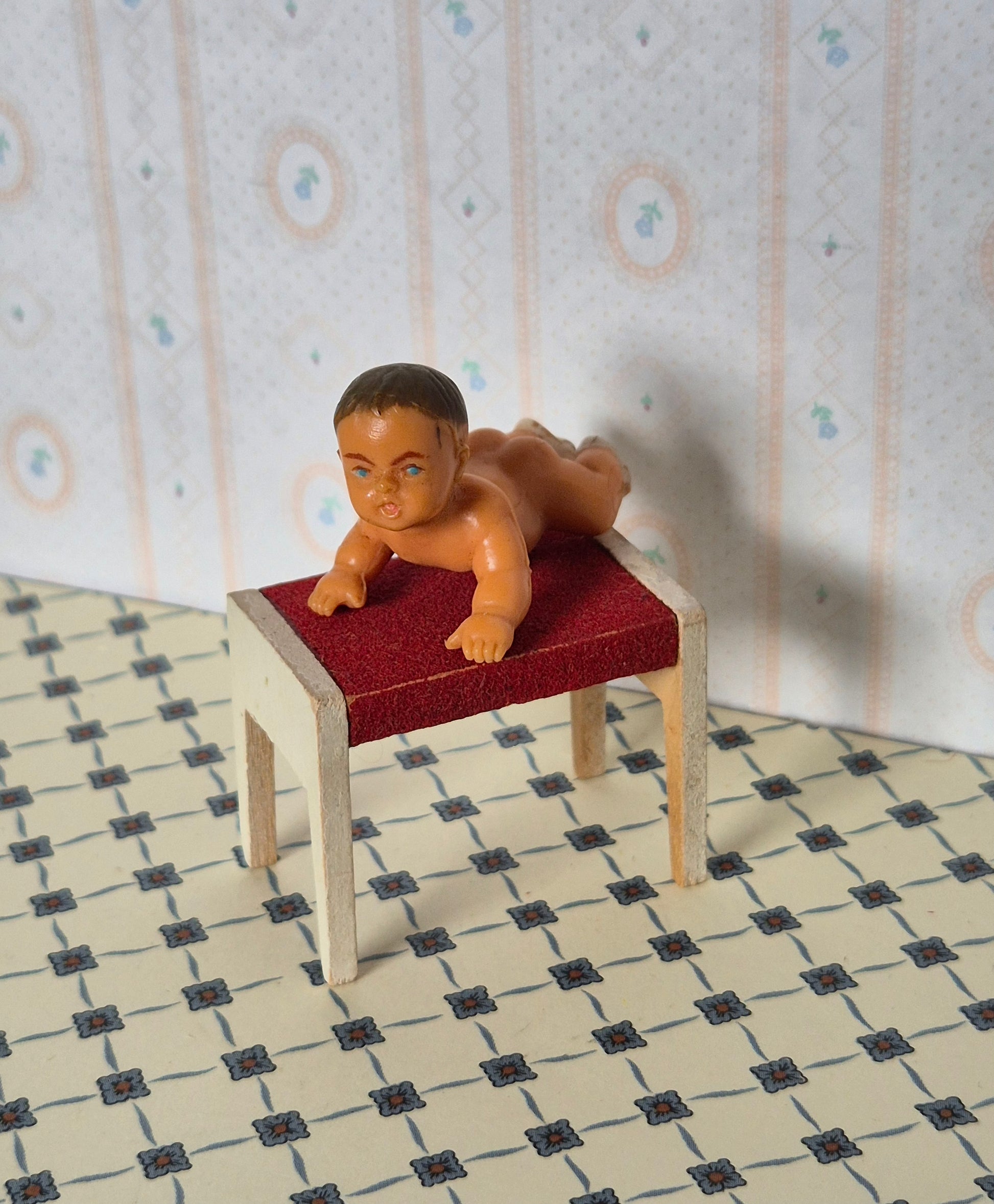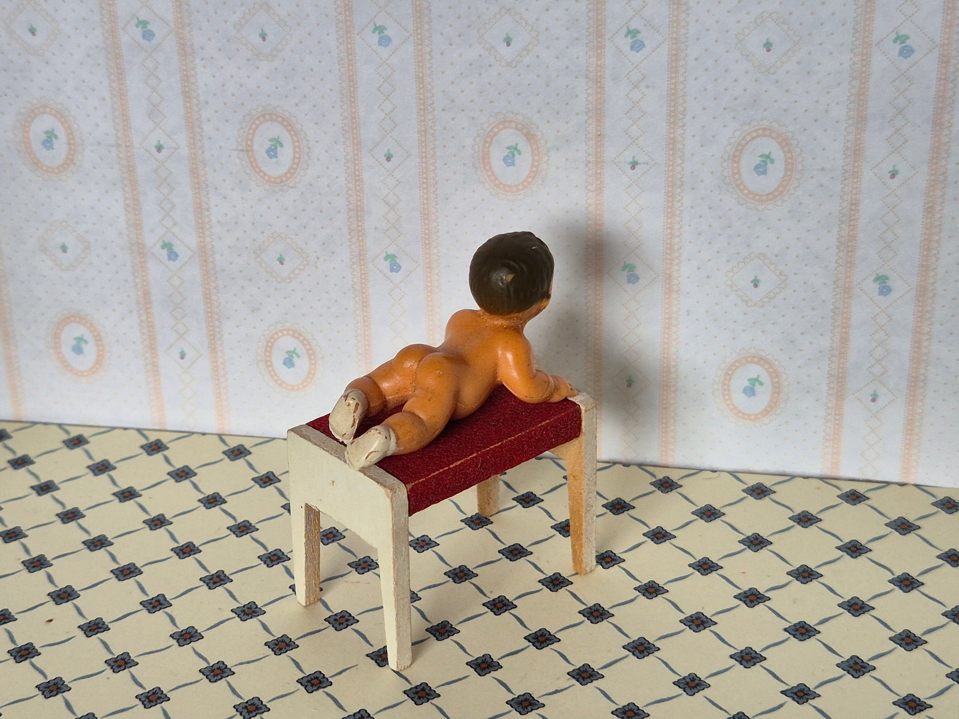 Vintage Lundby baby dukke. Kravlende baby dukke. Udmærket stand med patina