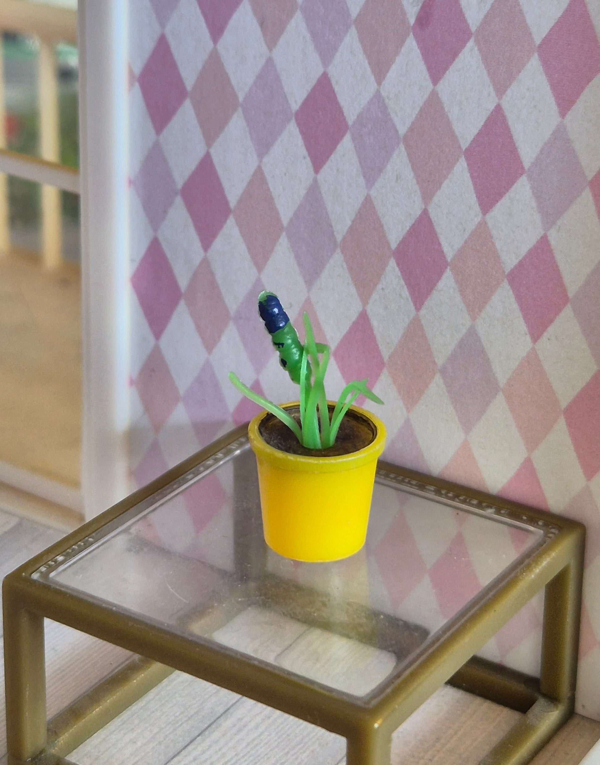 Fin vintage Lundby blomst med blå top i gul potteskjuler