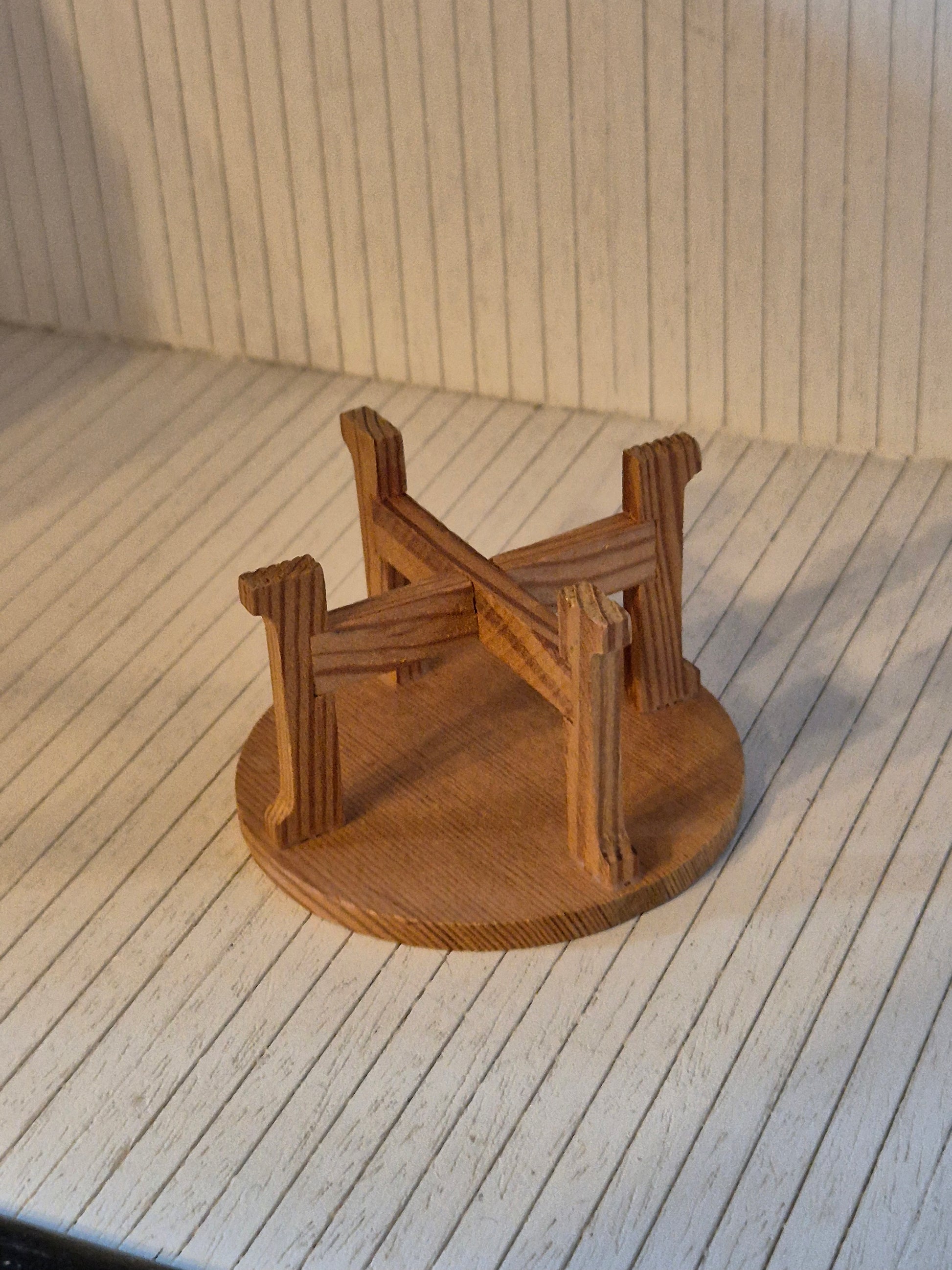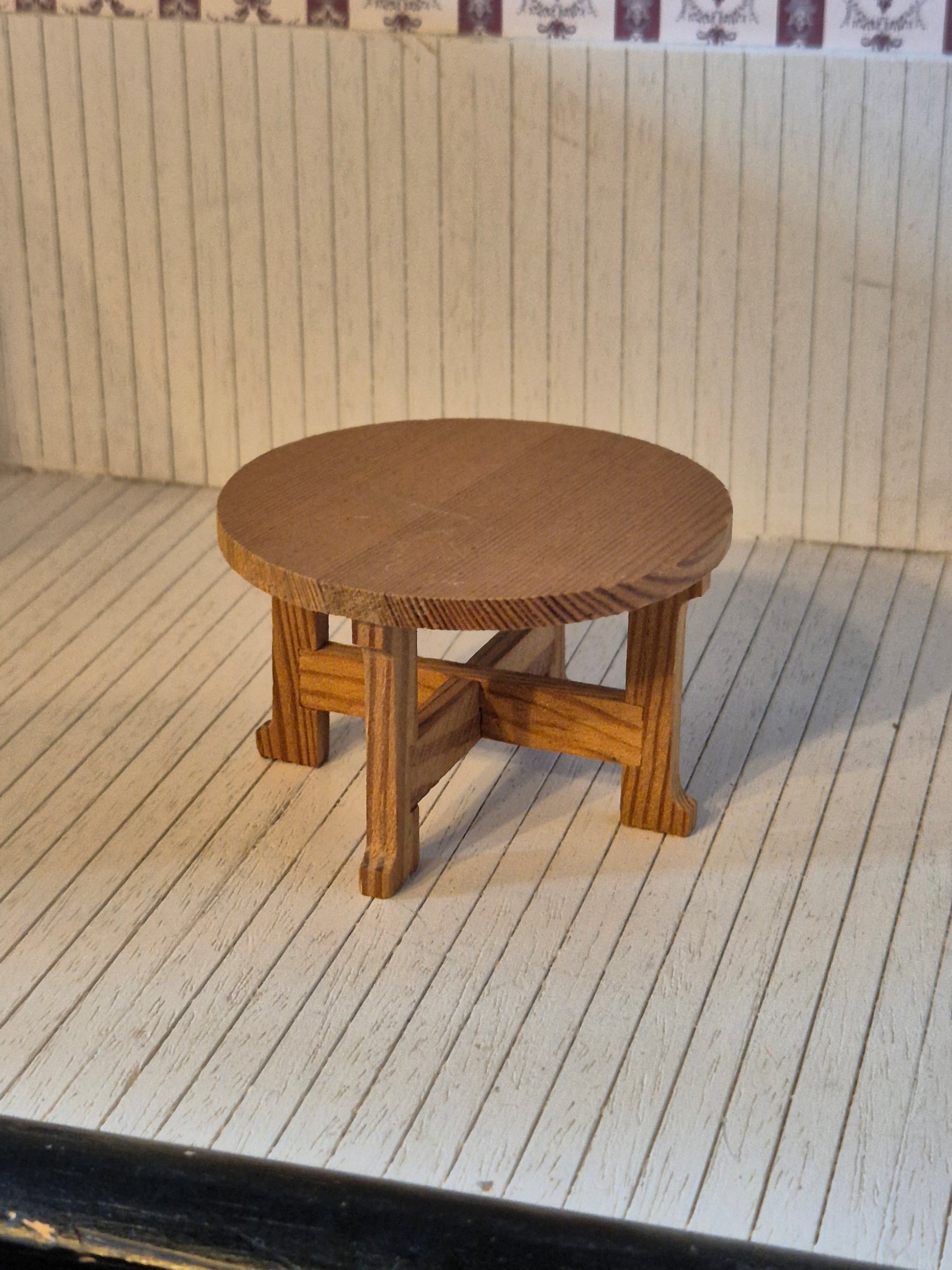 Rundt træbord af Lundby dukkehus. Det er af fyrretræ. Pænt og fint. Udmærket stand.