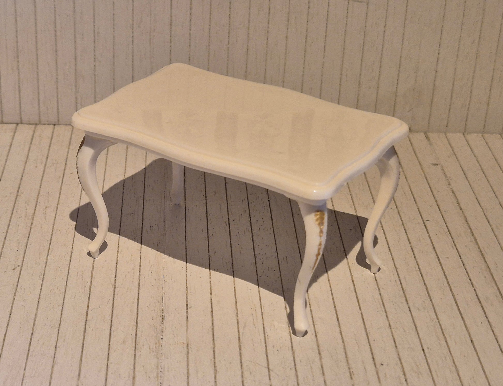 Pænt Lundby bord, spisebord. Det er hvidt med gyldne detaljer på benene..