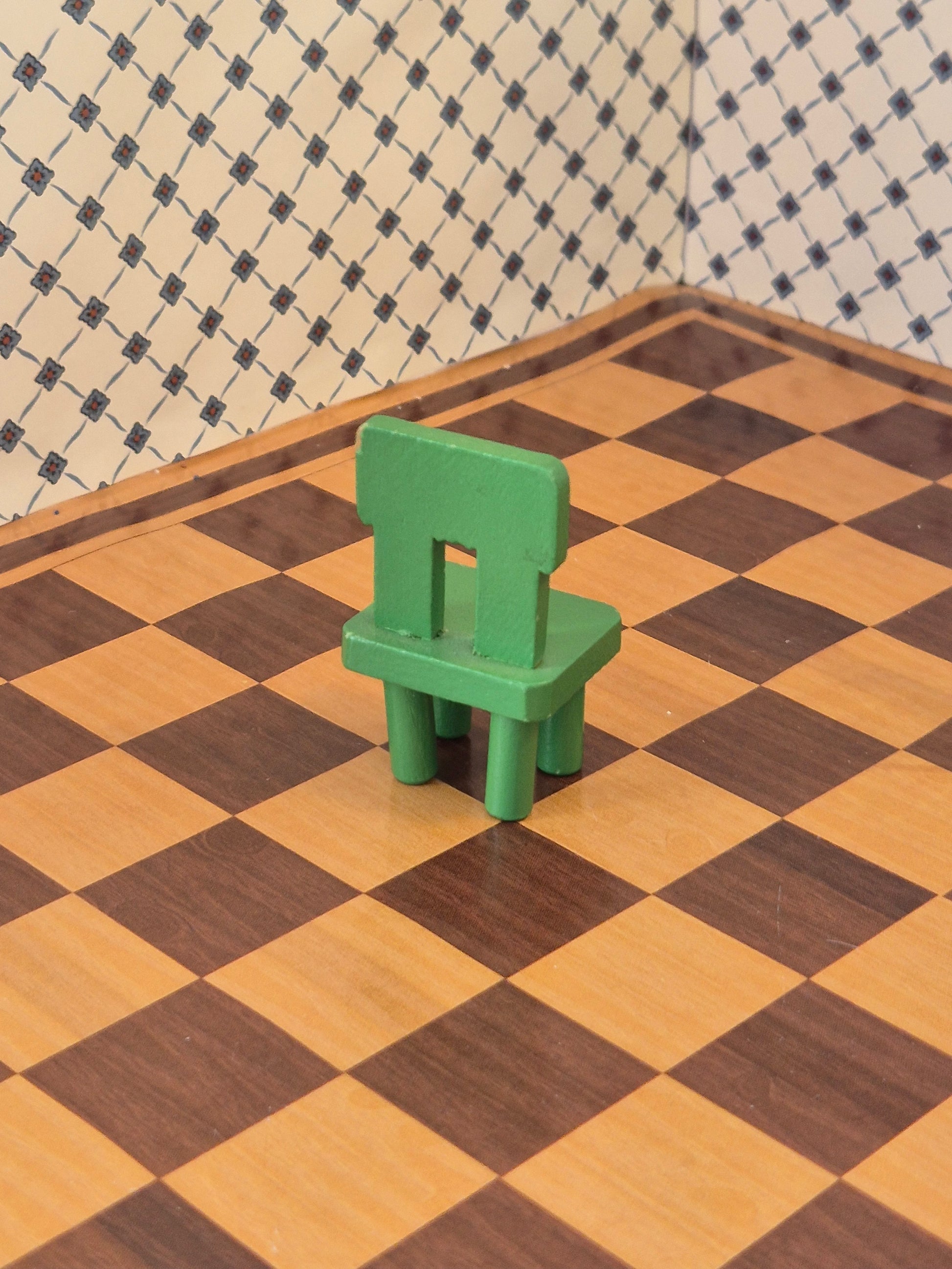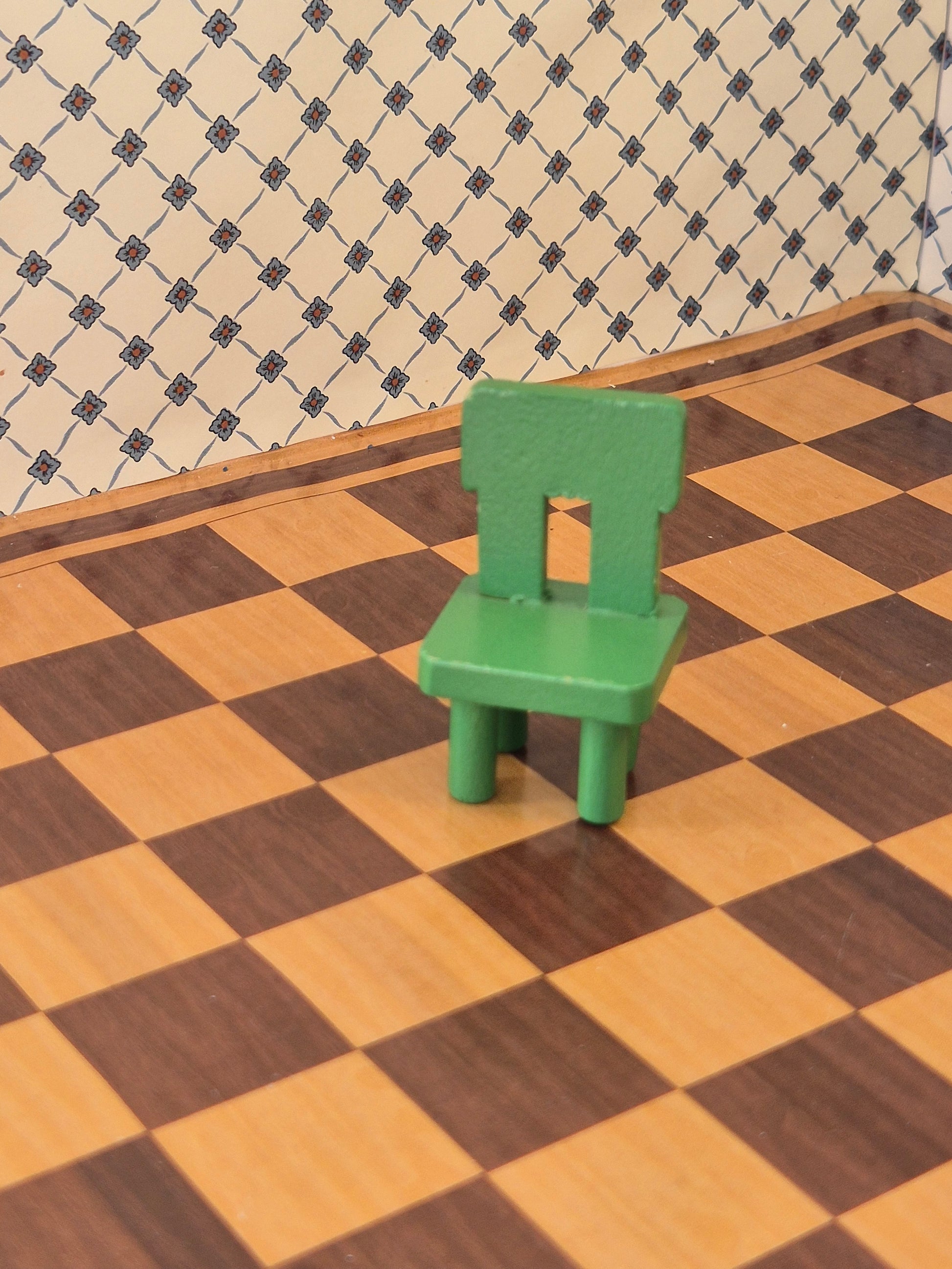 God grøn Lundby stol til dukkehus børneværelset.