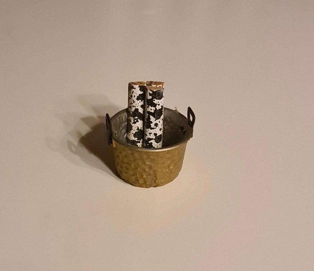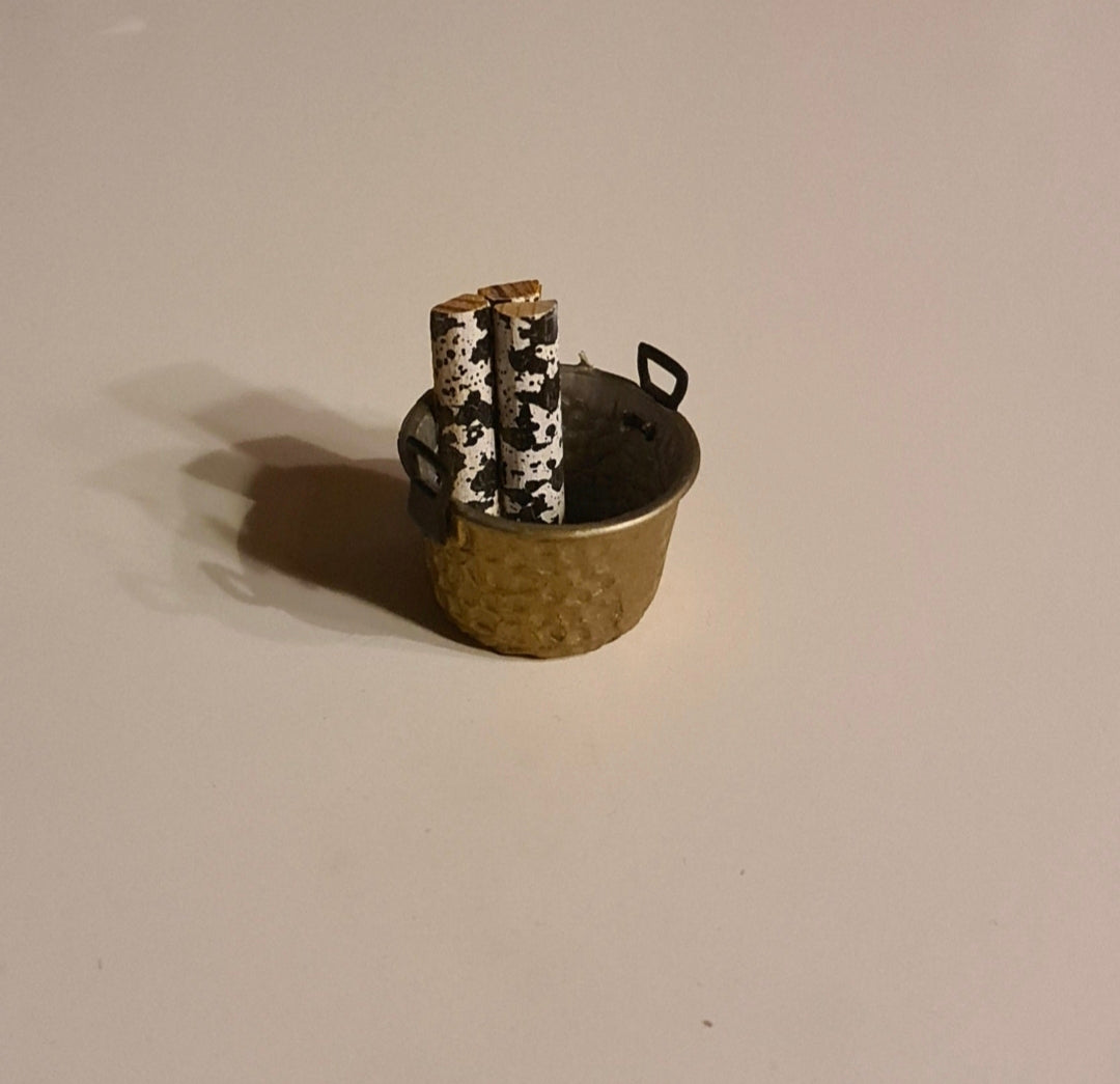 Fin rundt brændekurv til Lundby dukkehus, til pejsen eller kaminen.