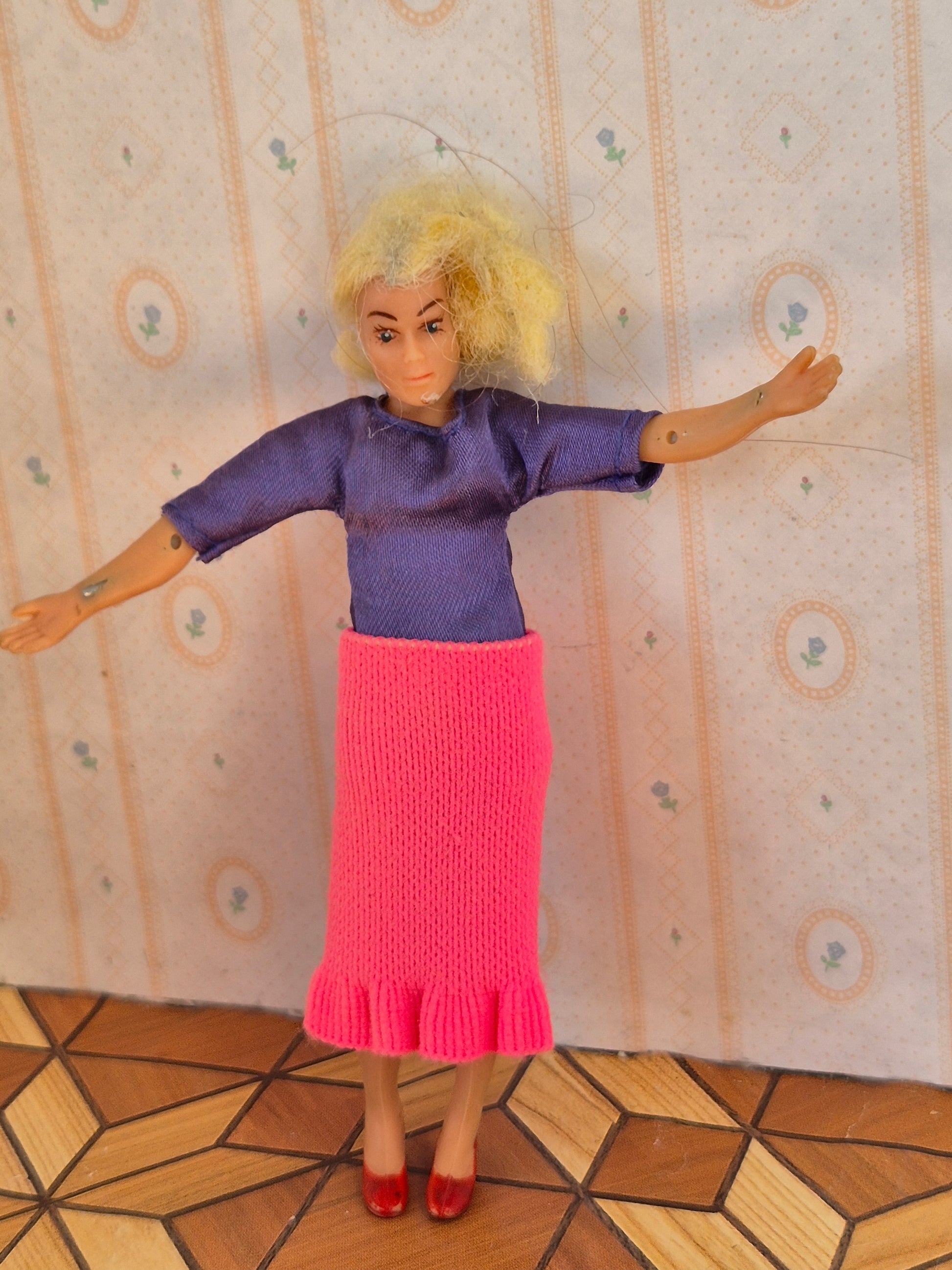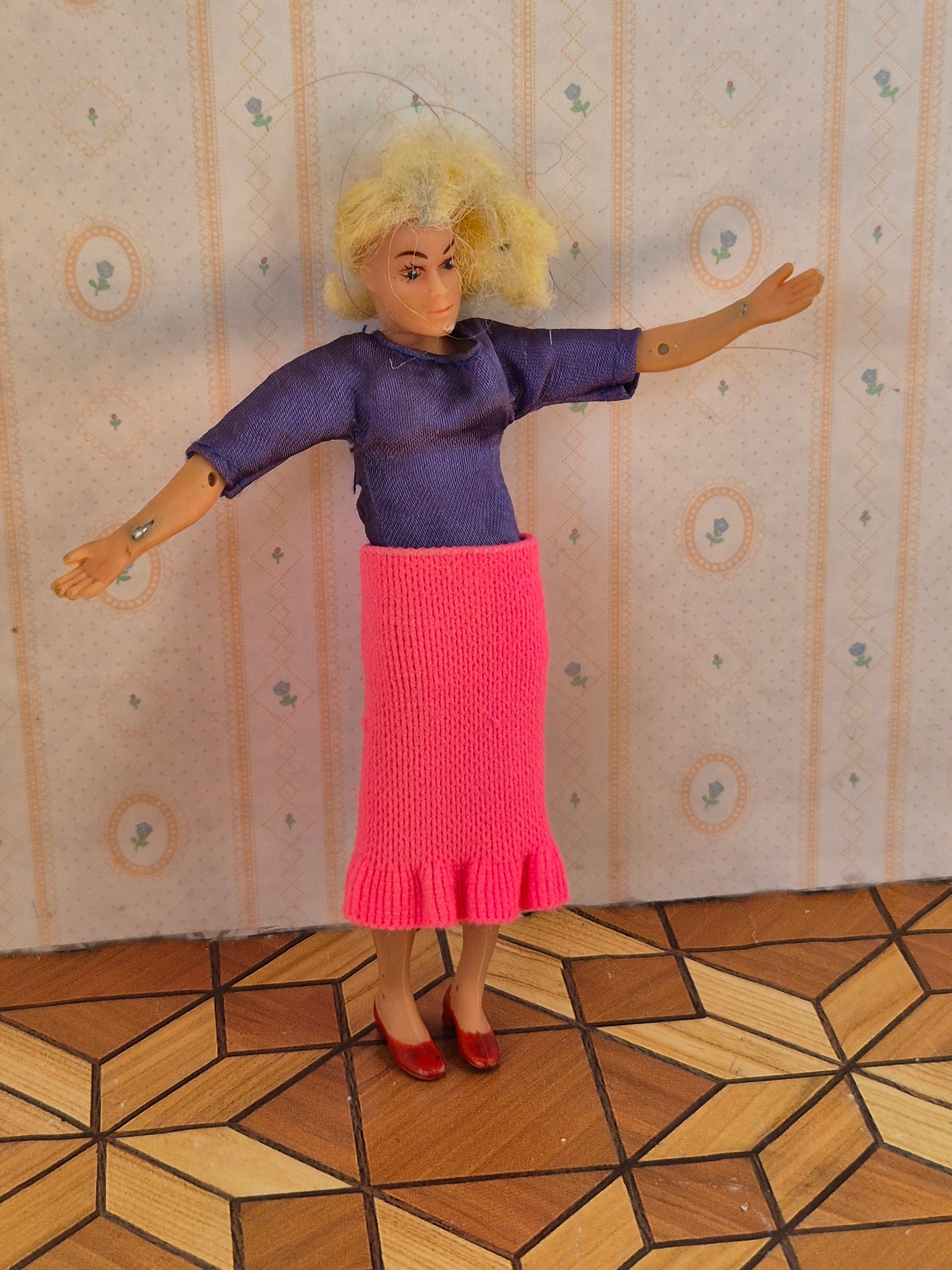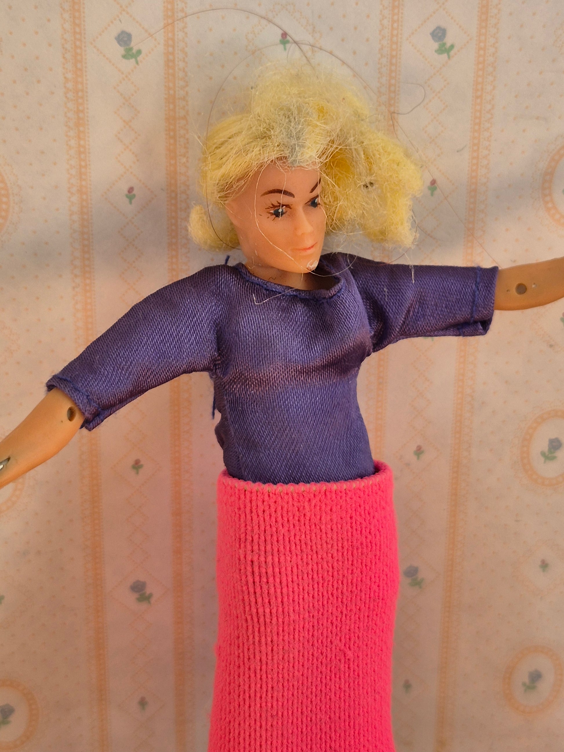 Lundby dame fra 1970erne. Hun har patina og brugsspor