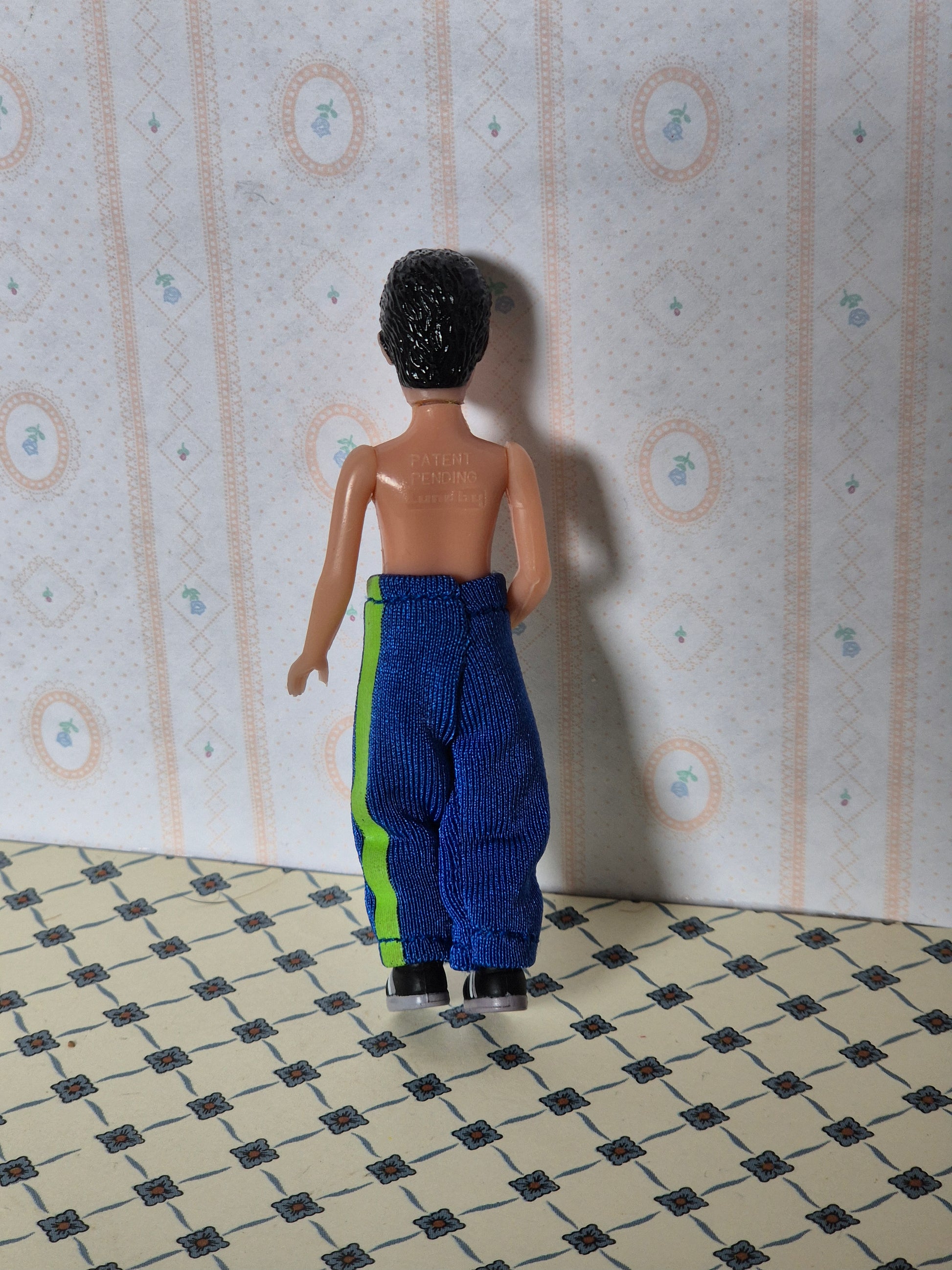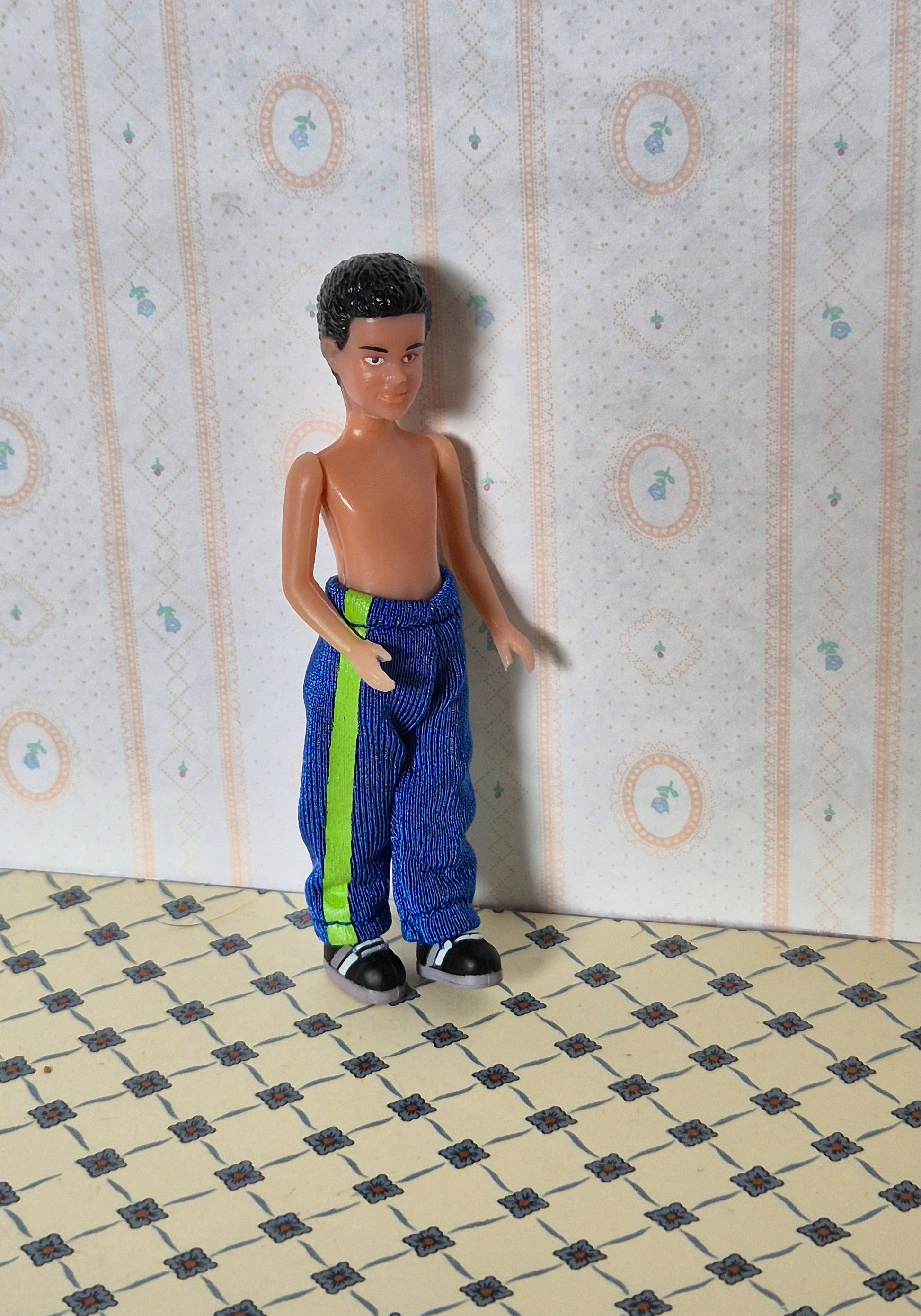 Pæn Lundby dukkedreng med sort hår. Han mangler sine t-shirt eller bluse. Udmærket stand.