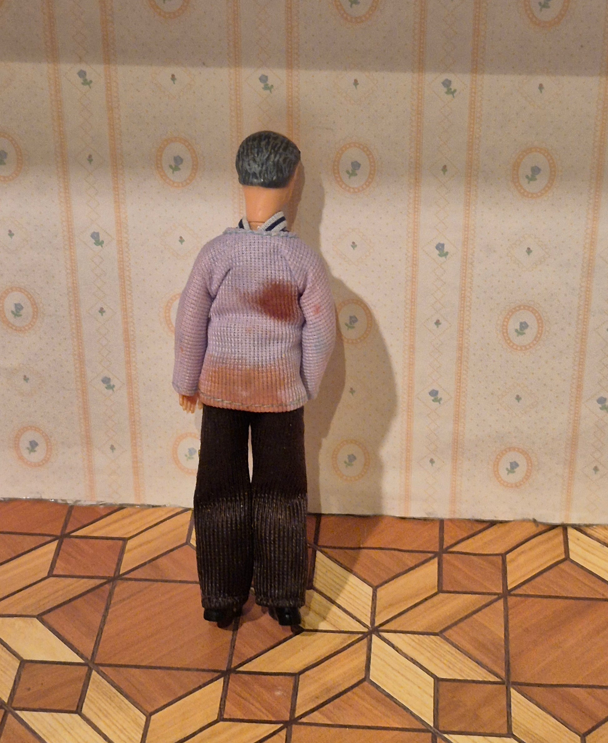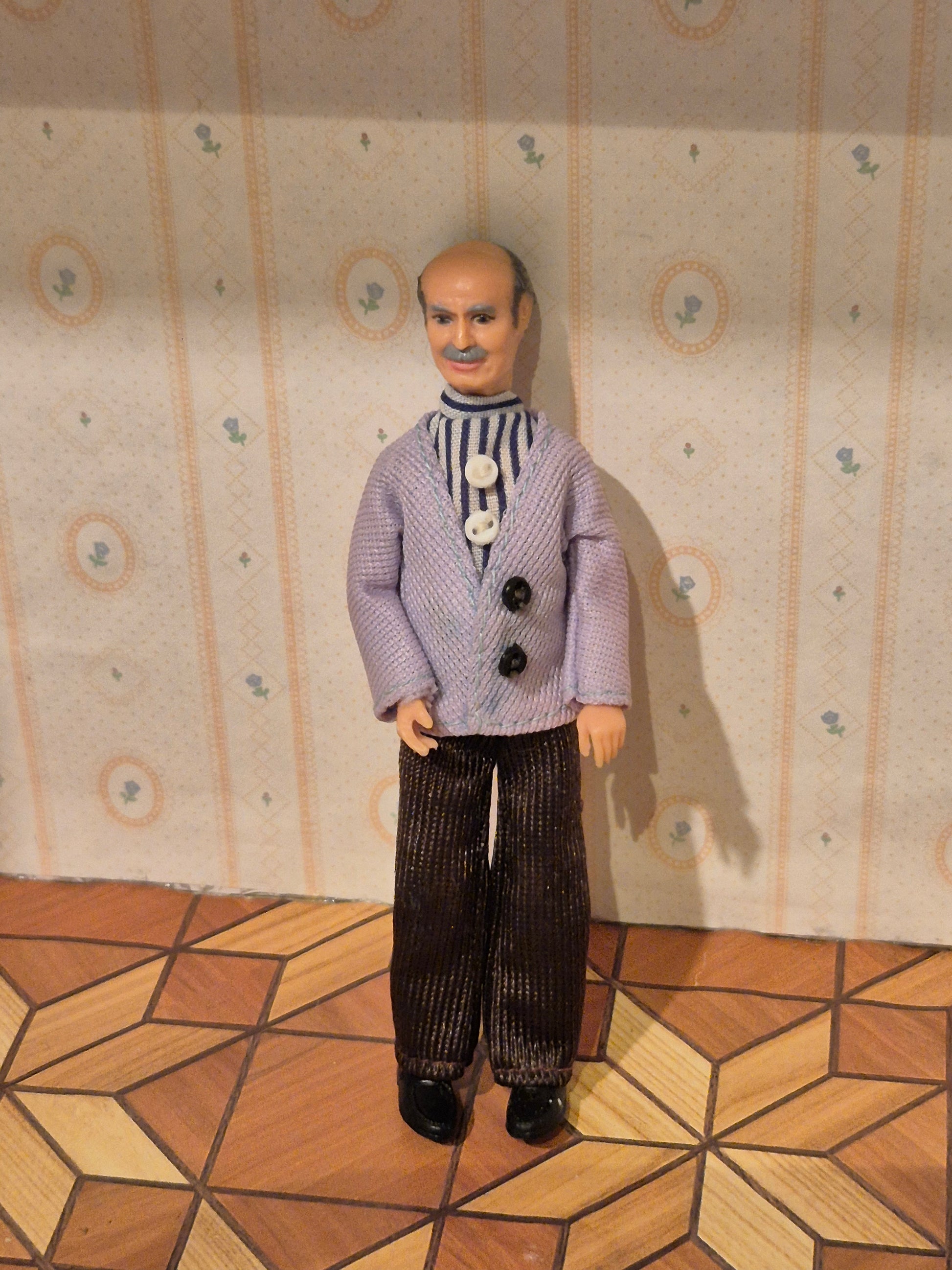 Lundby bedstefar dukke, ældre. God. Pletter på bagsiden, men ellers pæn.
