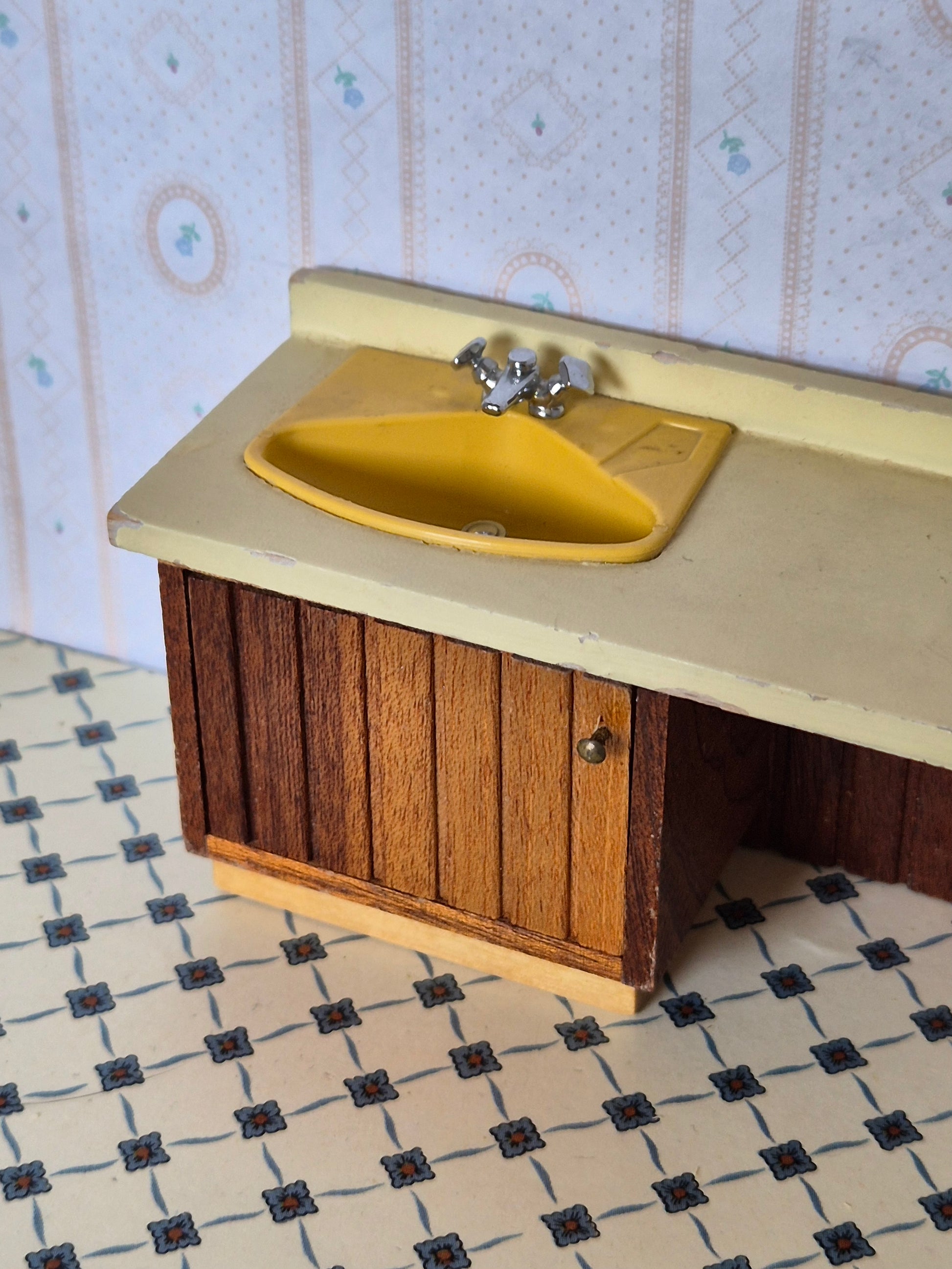 Særlig og sjælden Lundby håndvask, den er vintage fra 1970erne. Pæn stand.