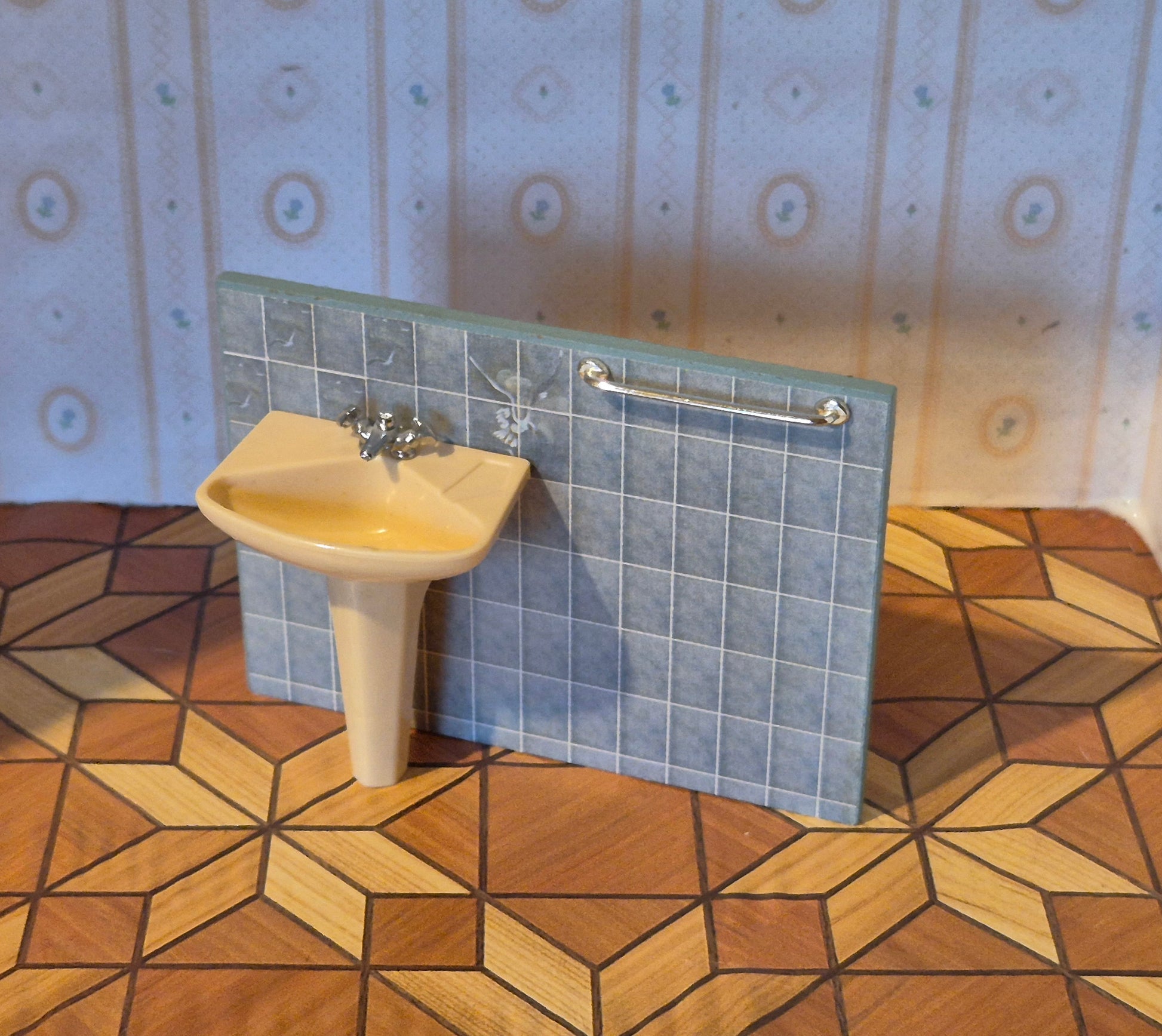 Lundby håndvask til badeværelset, det hører til serien Måge. Pænt, dog mangler håndklædet.