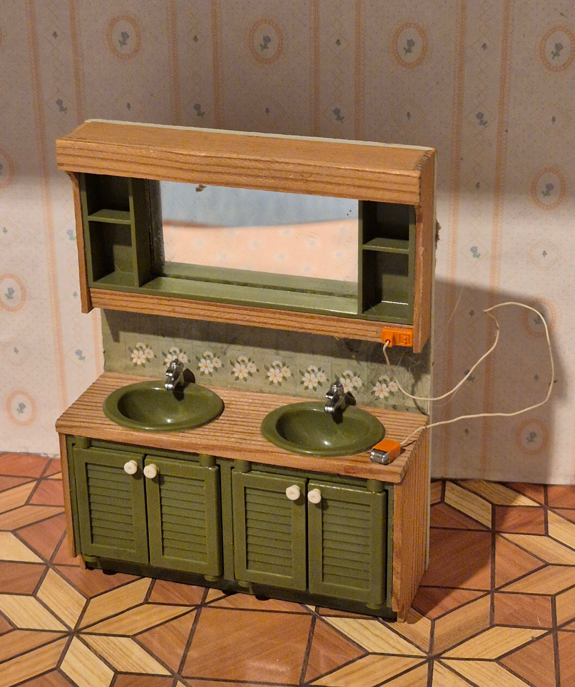 Lundby grøn håndvask til badeværelset. Udmærket stand. Pæn.