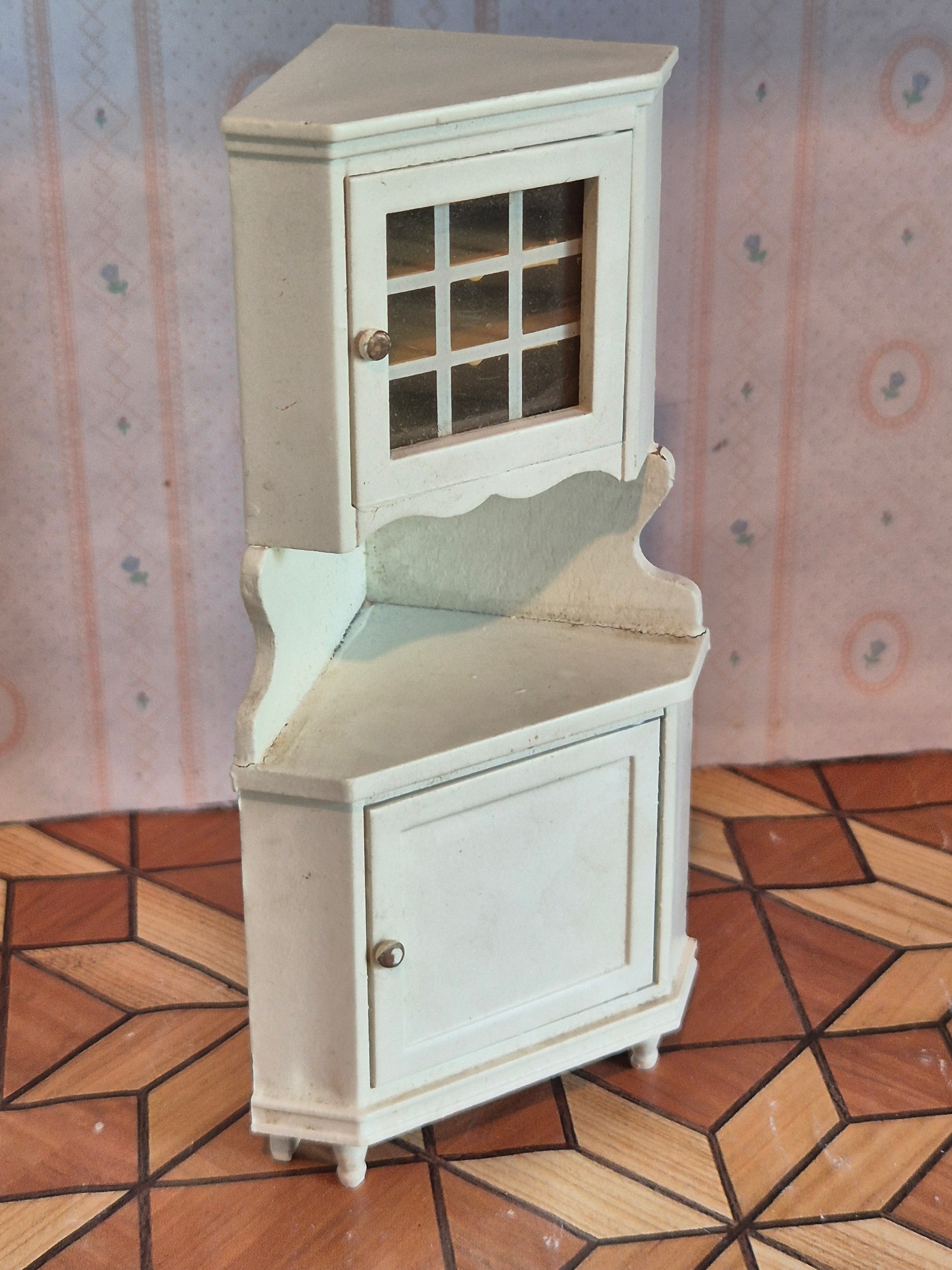Pænt og fint Lundby hjørneskab, der muligvis har været blåt oprindeligt. Det er i god stand.