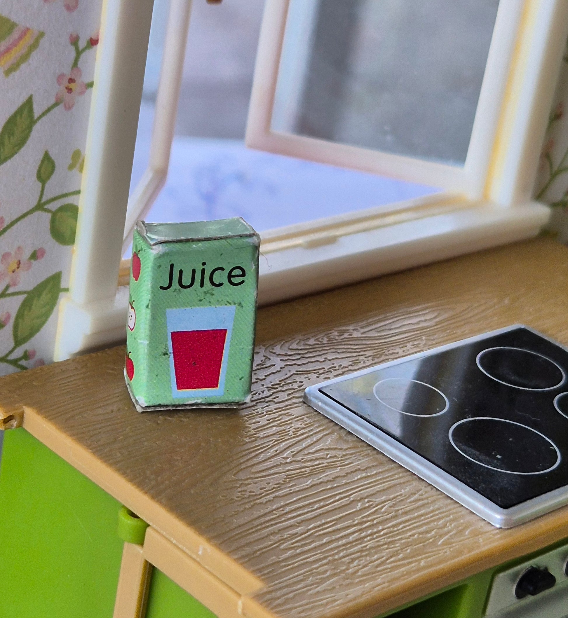 Lundby æble juice i karton, den er lidt bulet