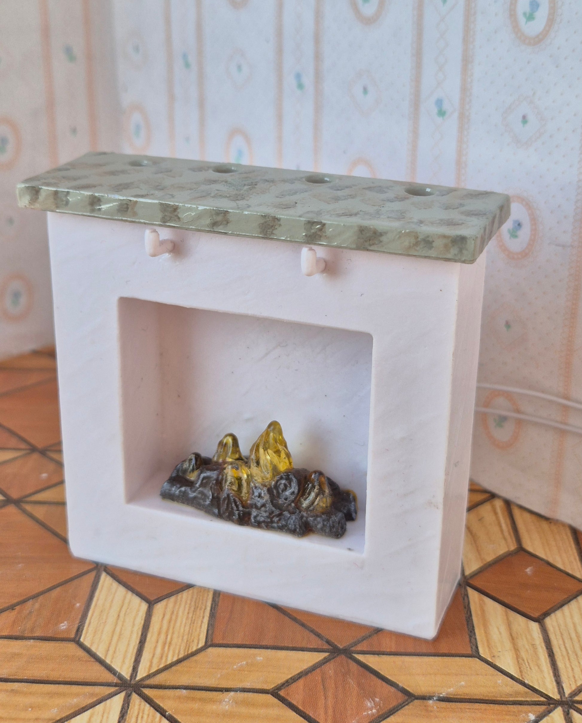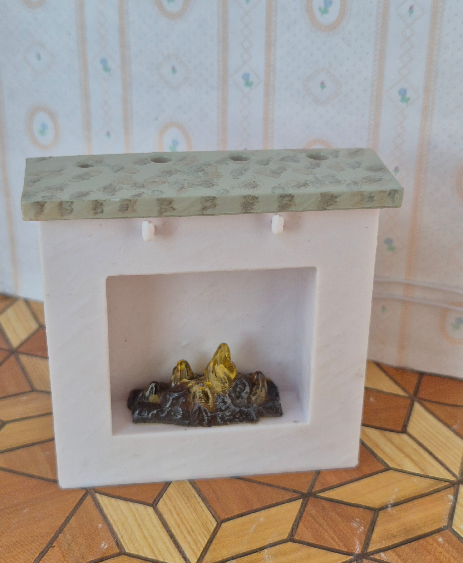Pæn og fin Lundby kamin, pejs, med kroge til julesokker. Pæn stand.