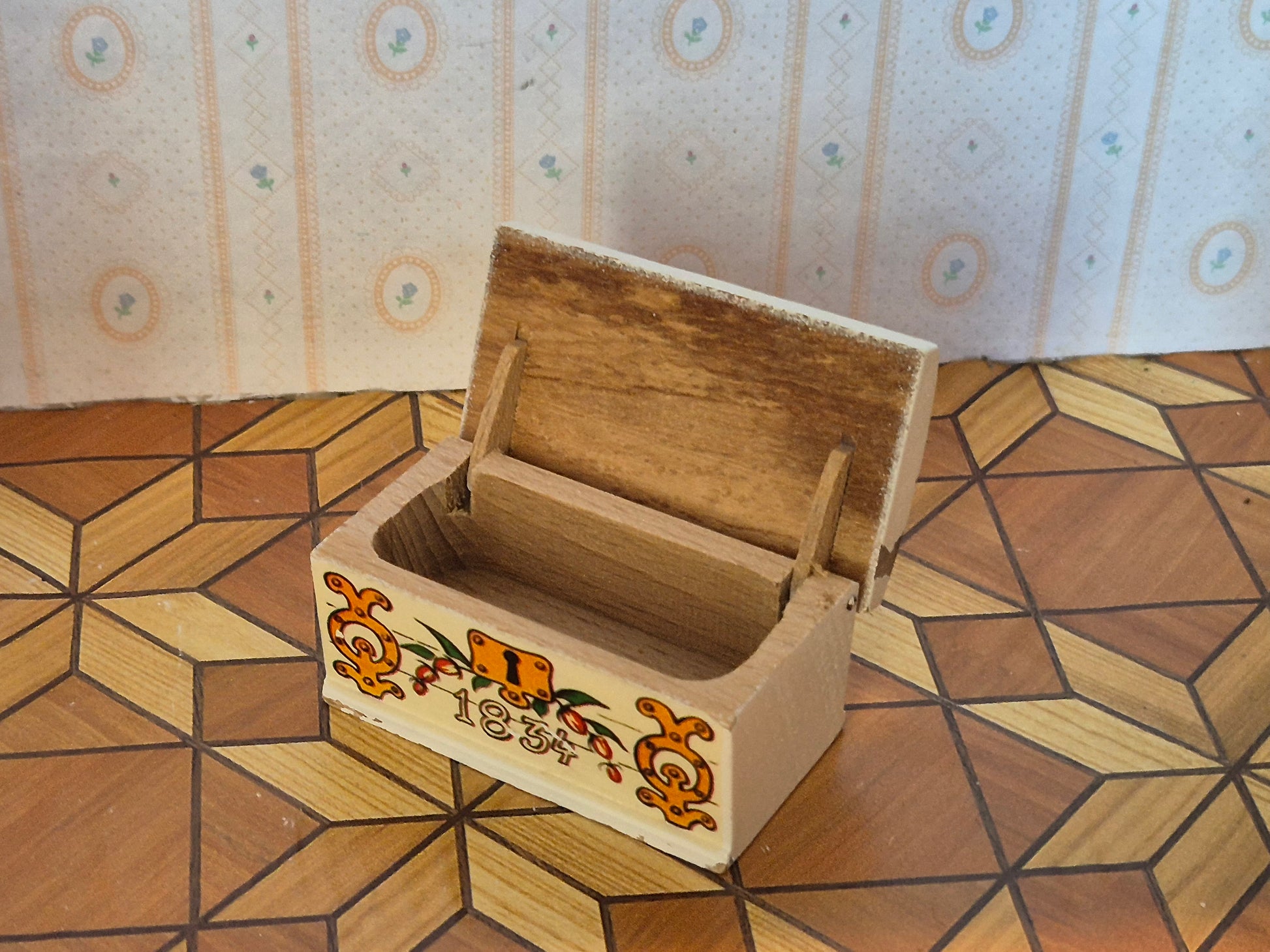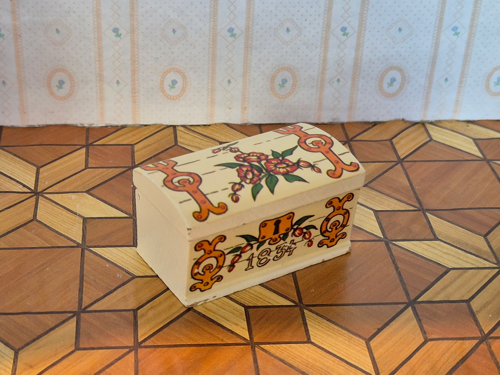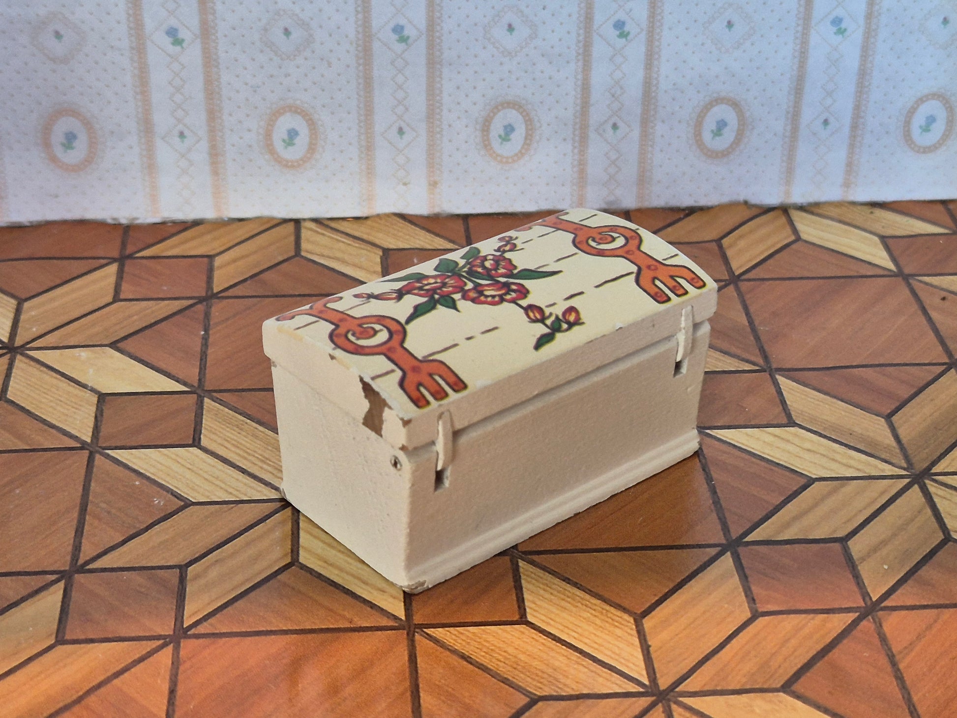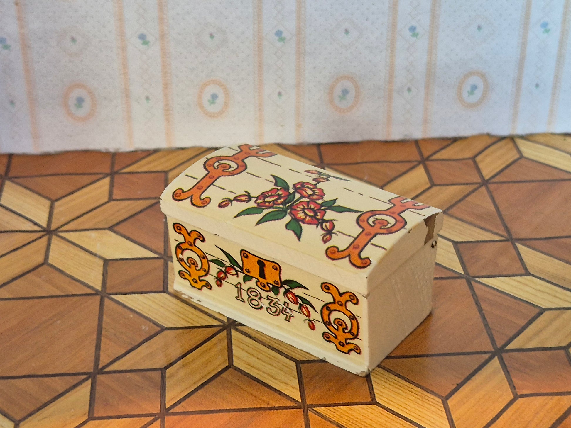 Pæn hvid Lundby almue kiste, ses sjældent. Rigtig pæn stand.