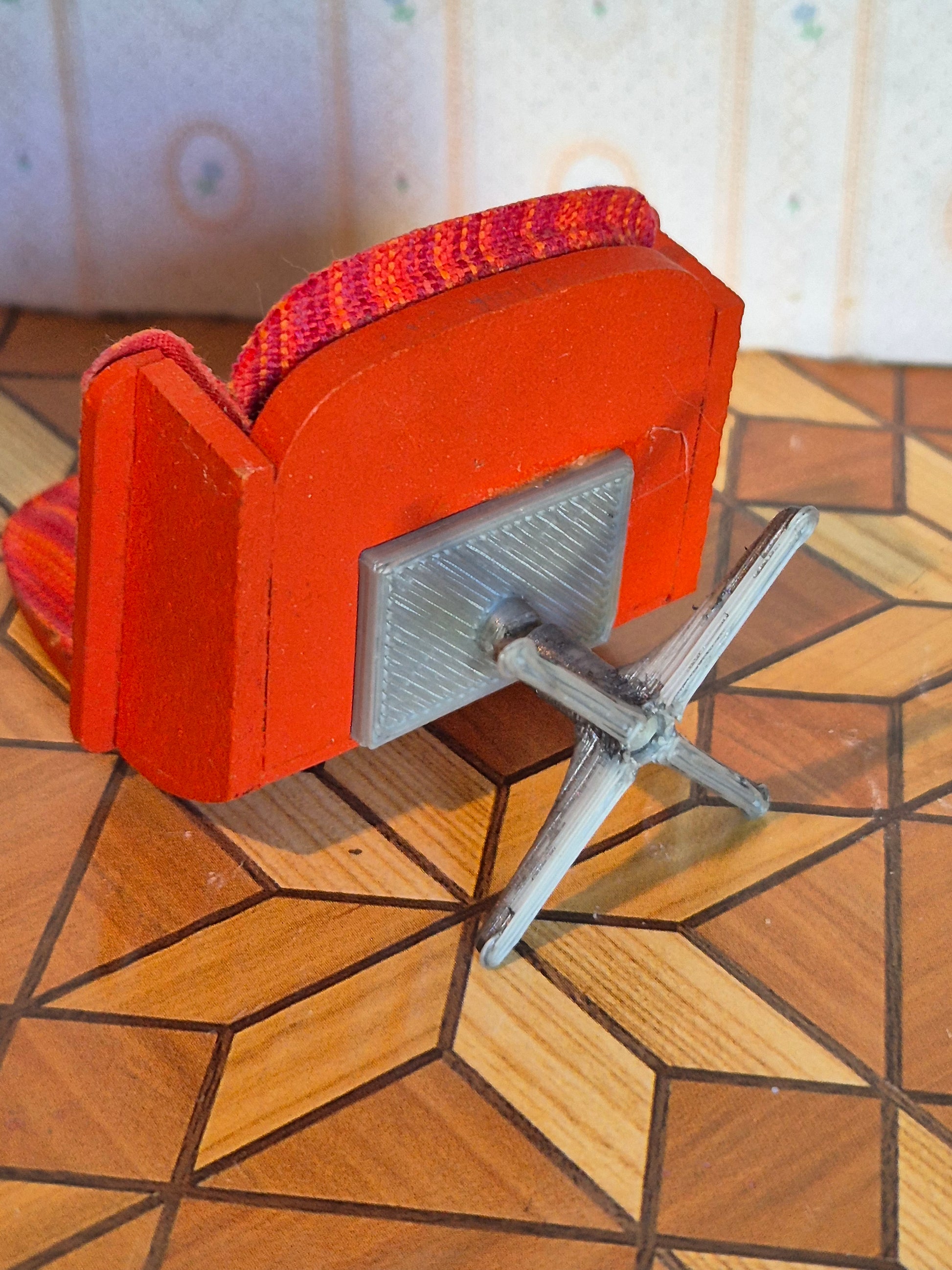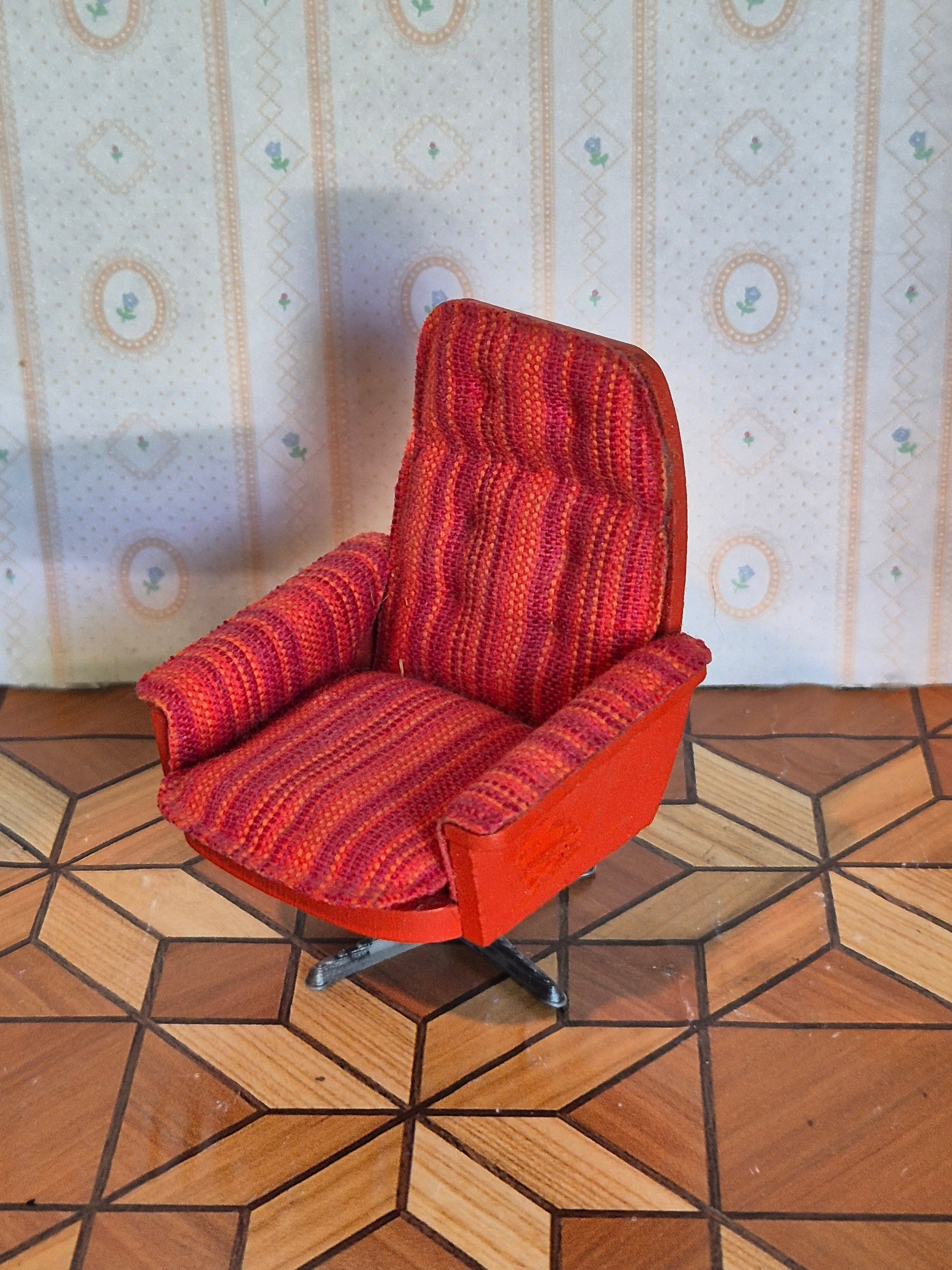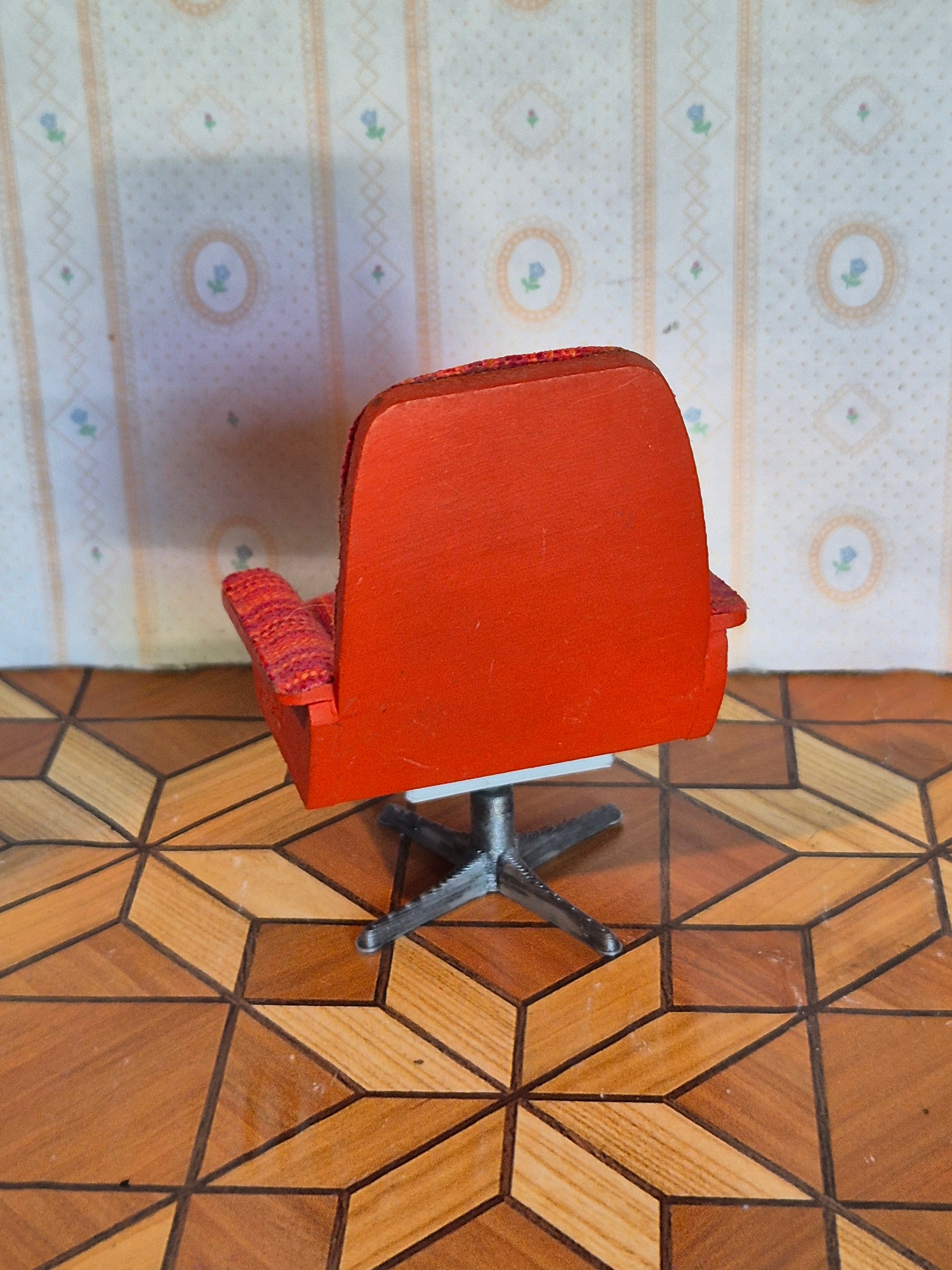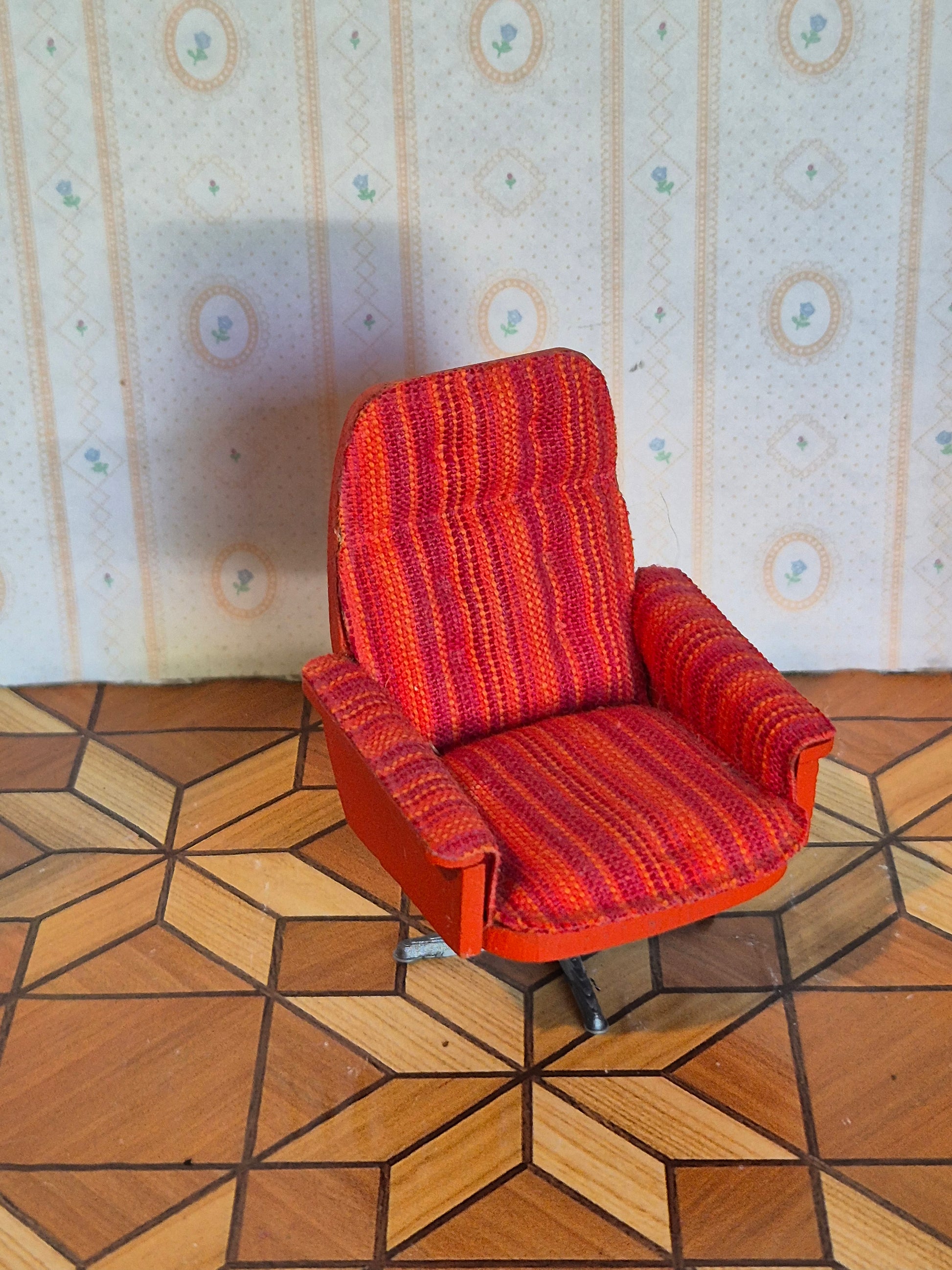 Fin Lundby Lænestol, vintage med drejefod. Den drejer fint. Foden er 3D printet og ikke original.