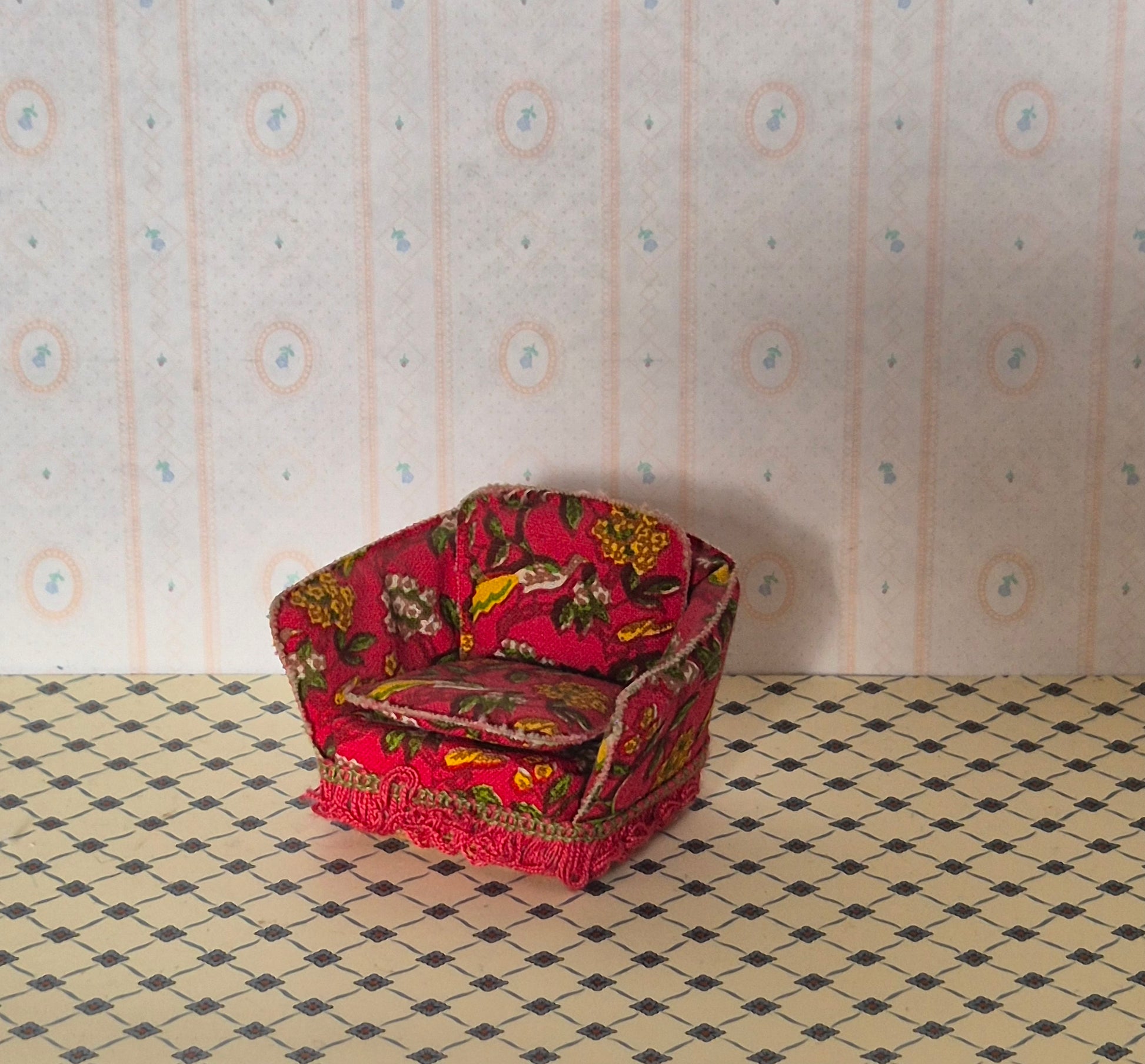 Rigtig pæn lundby lyserød lænestol med blomstermotiv. Patina og brugsspor må forventes