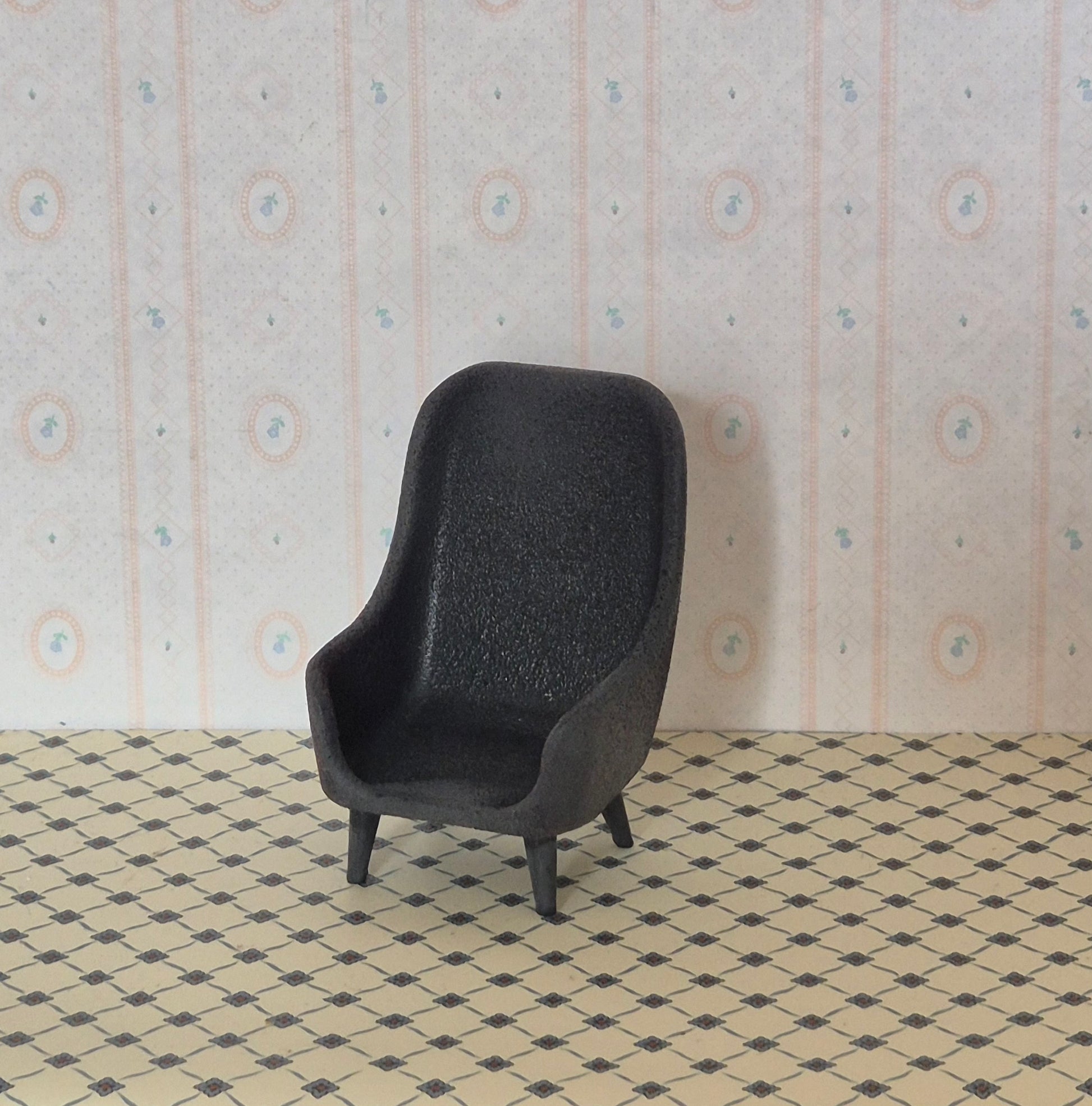 Renoveret pæn Lundby lænestol. Den er malet sort/mørk koksgrå. Ellers udmærket stand.