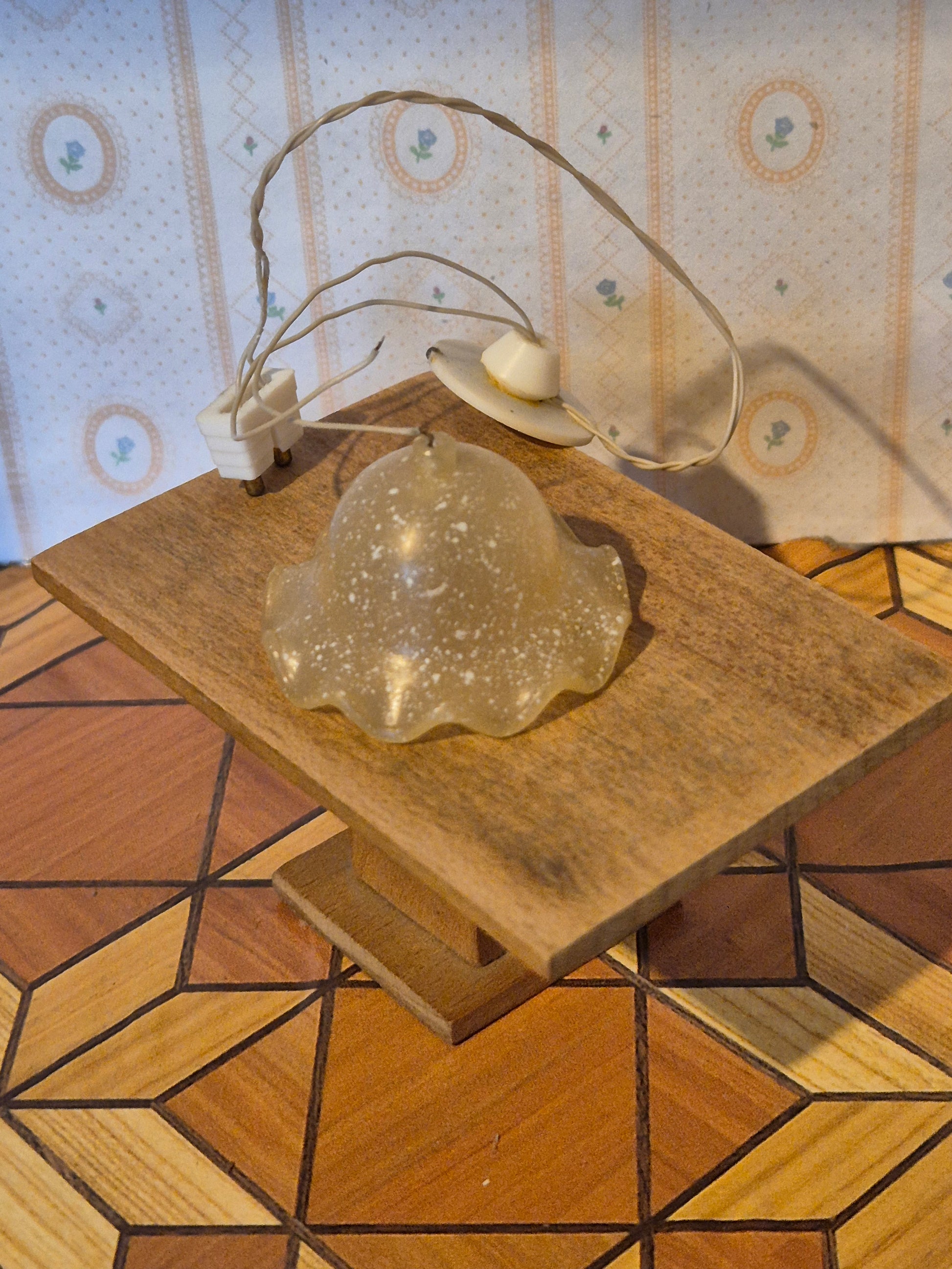 Lundby lampe, pedant lampe, i mat plast med hvide prikker/nister.