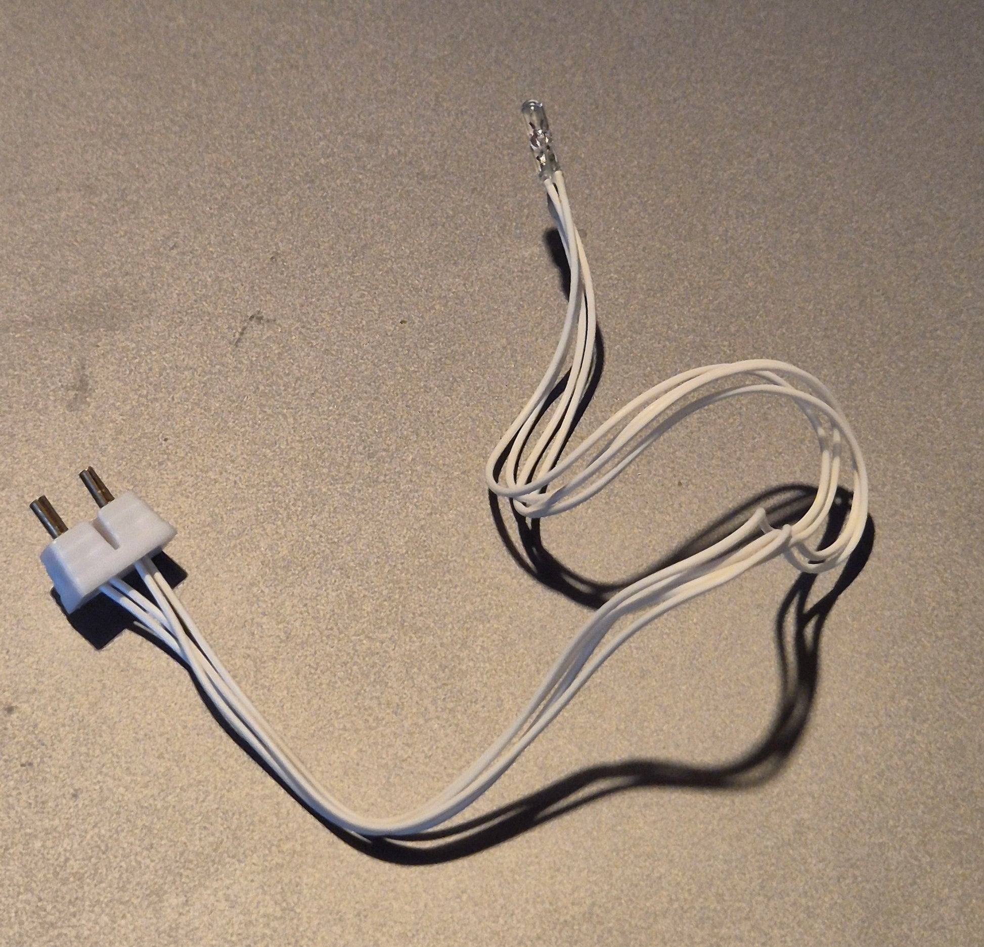 Fin dobbel ledning med 2 lyspære og stik til lundby dukkehuse. Det er til 3-4v el-transformator.