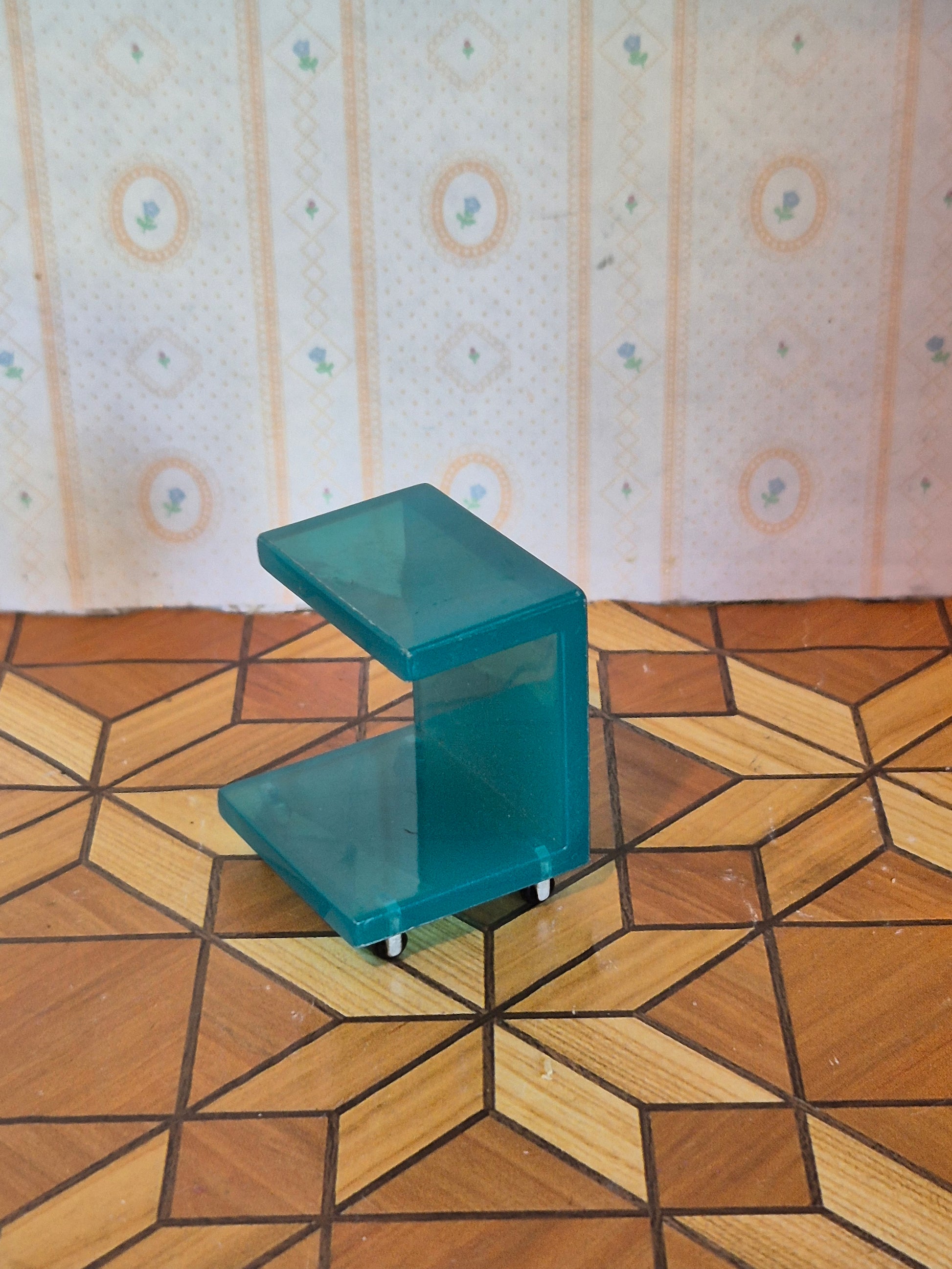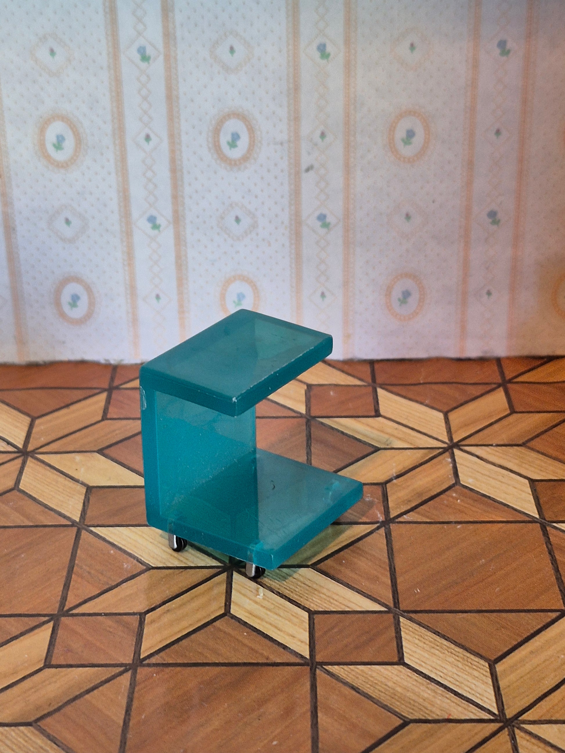 Pænt natbord i gennemsigtig blå plast til lundby børneværelset