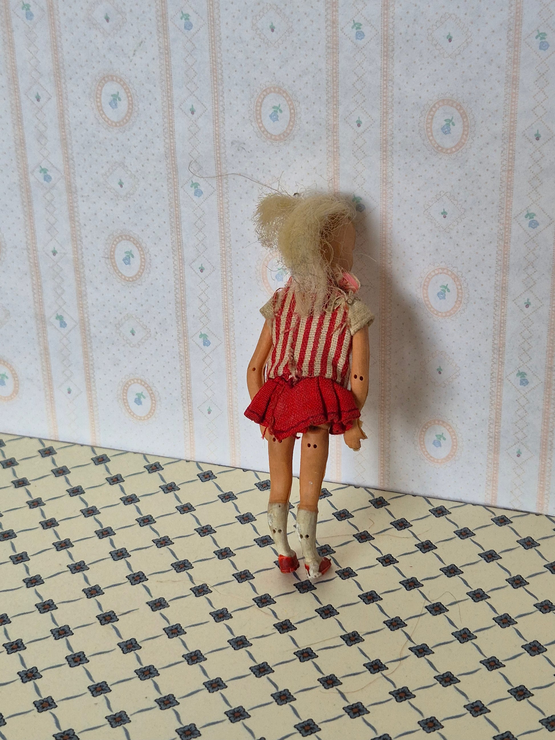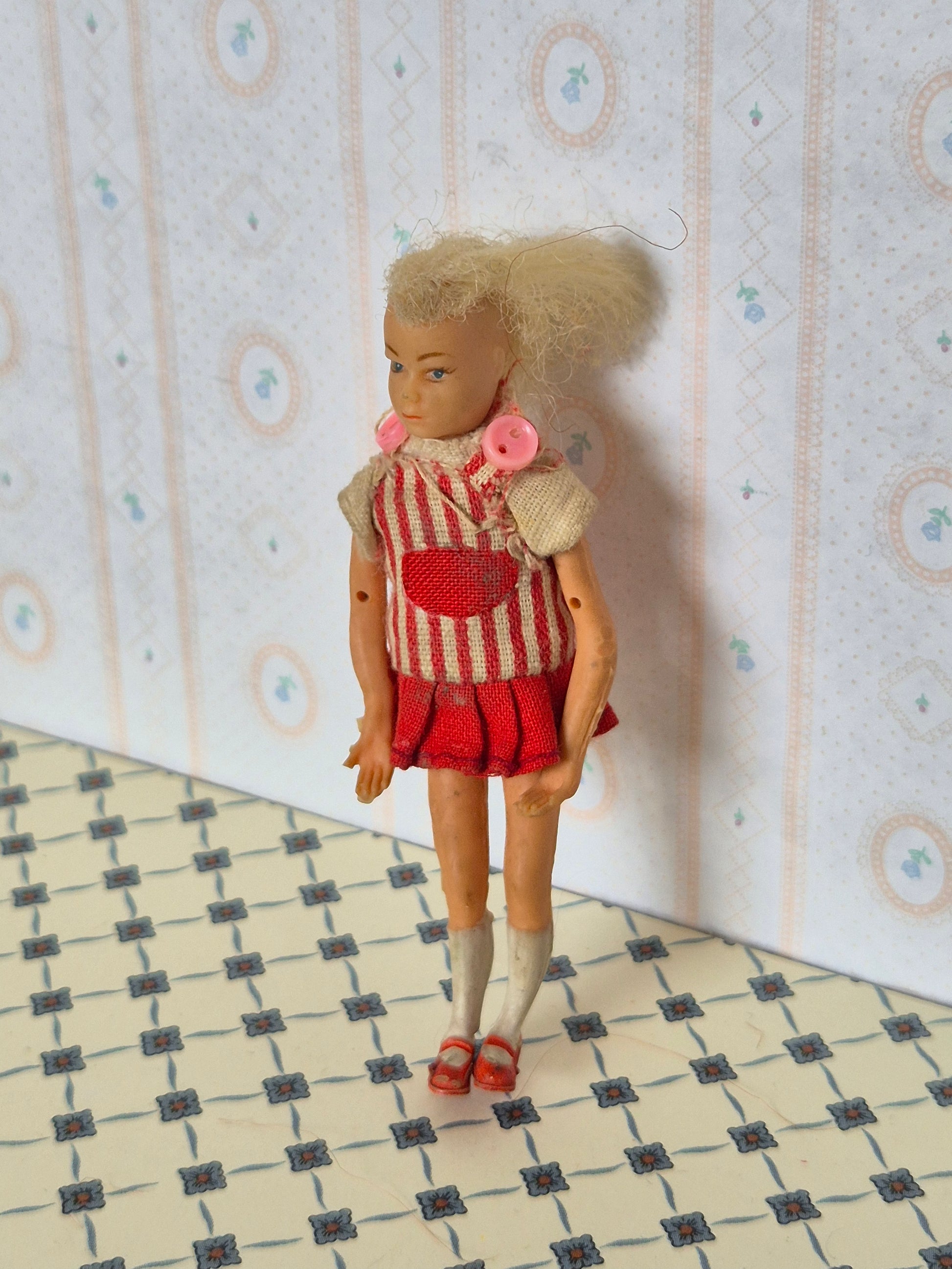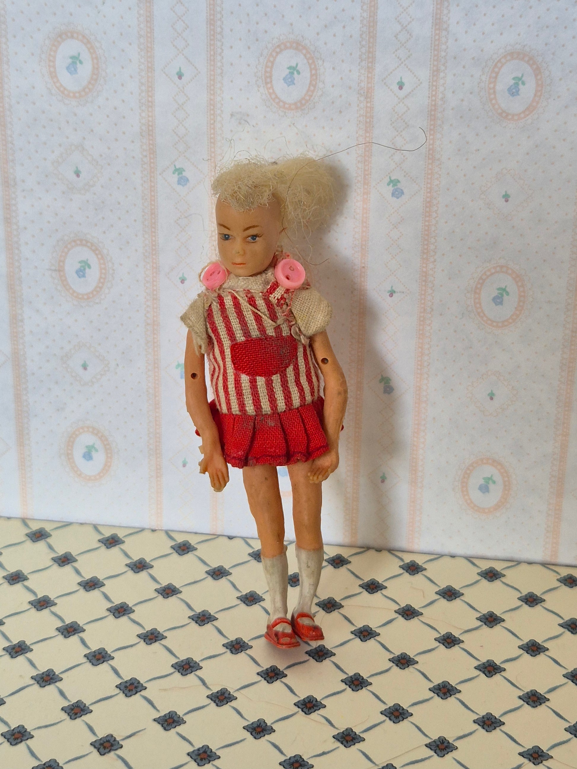 Lundby vintage dukke pige. Der er en del patina og brugsspor. Hun er lidt bøjet.