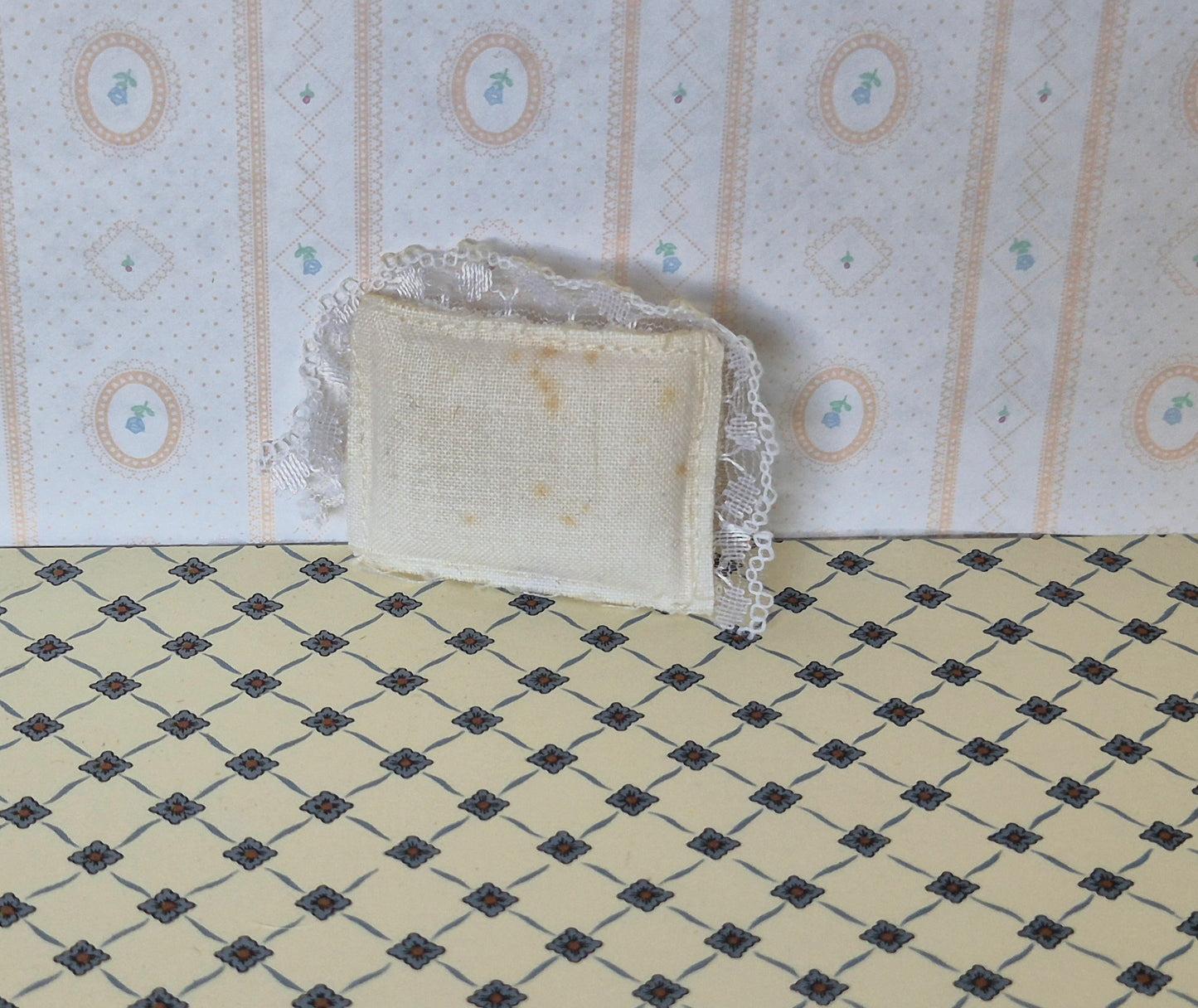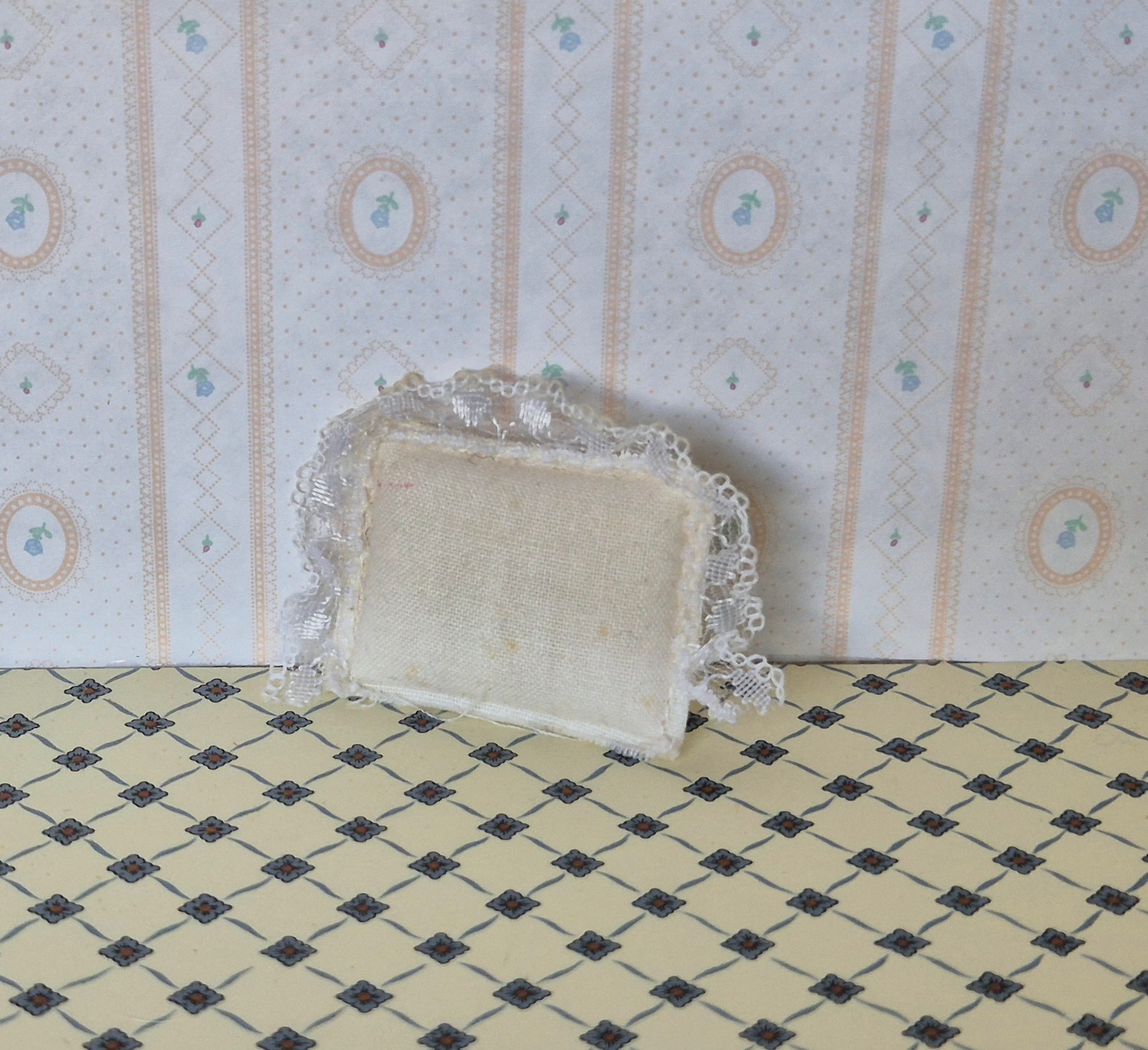 Vintage Lundby pude med blondekant. Der er patina og brugsspor