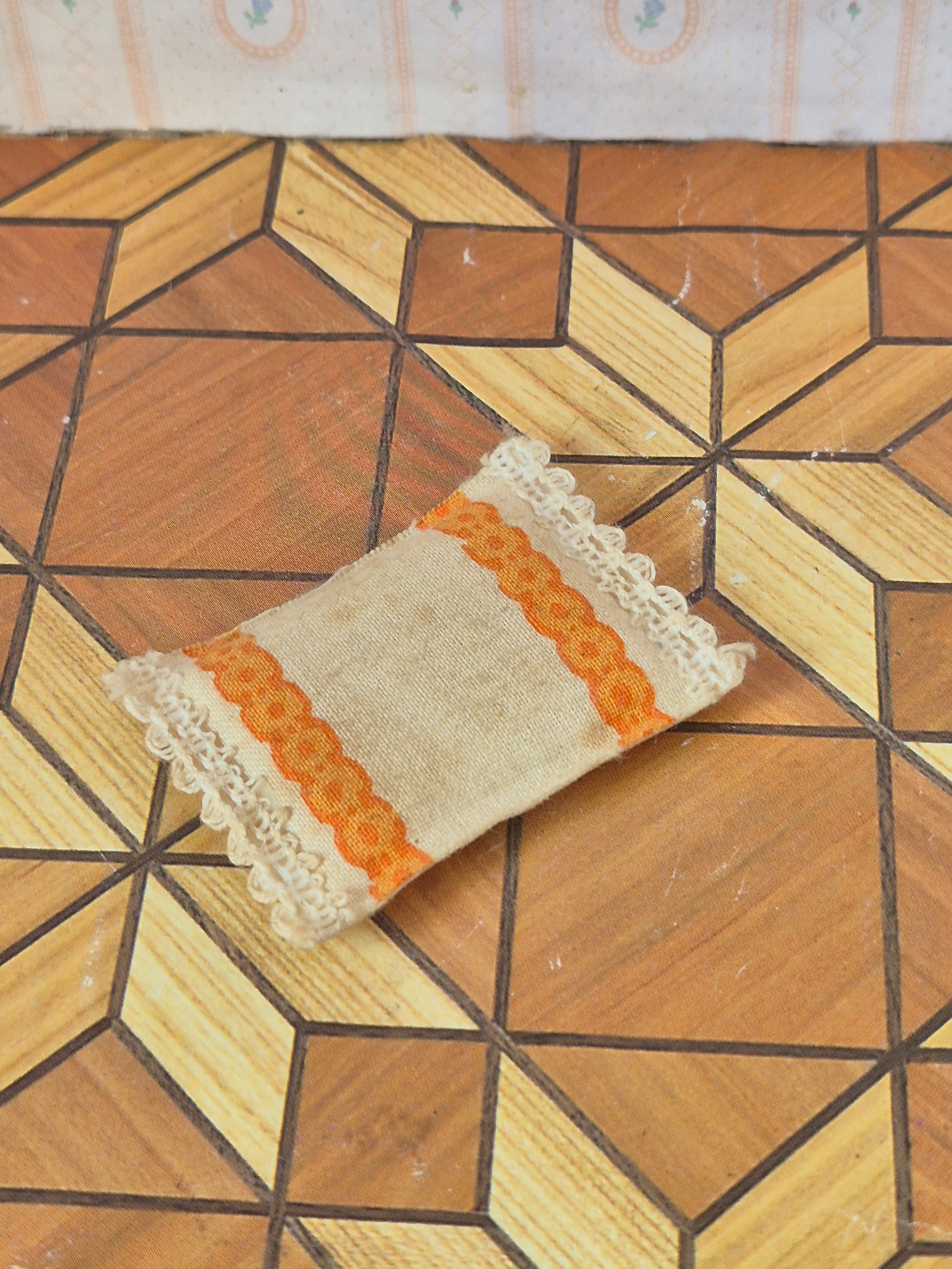 Lundby hovedpude med orange striber og blondekant
