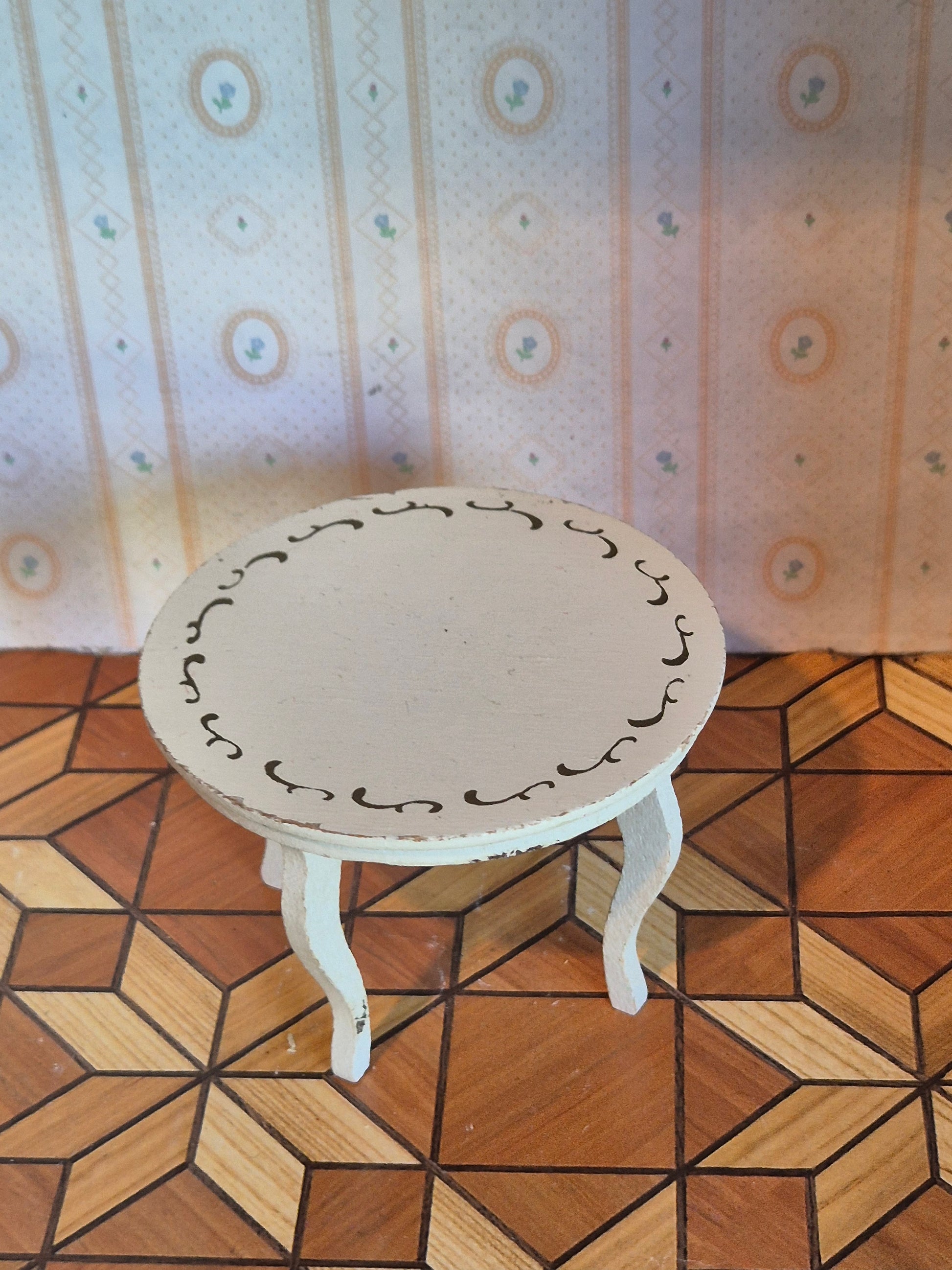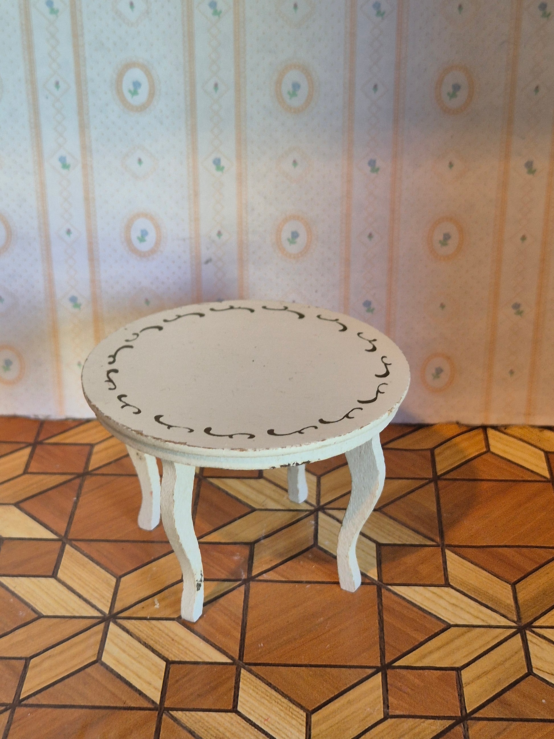 Ældre 1950erne Lundby bord i hvid rokoko stil. Der er patina og brugsspor