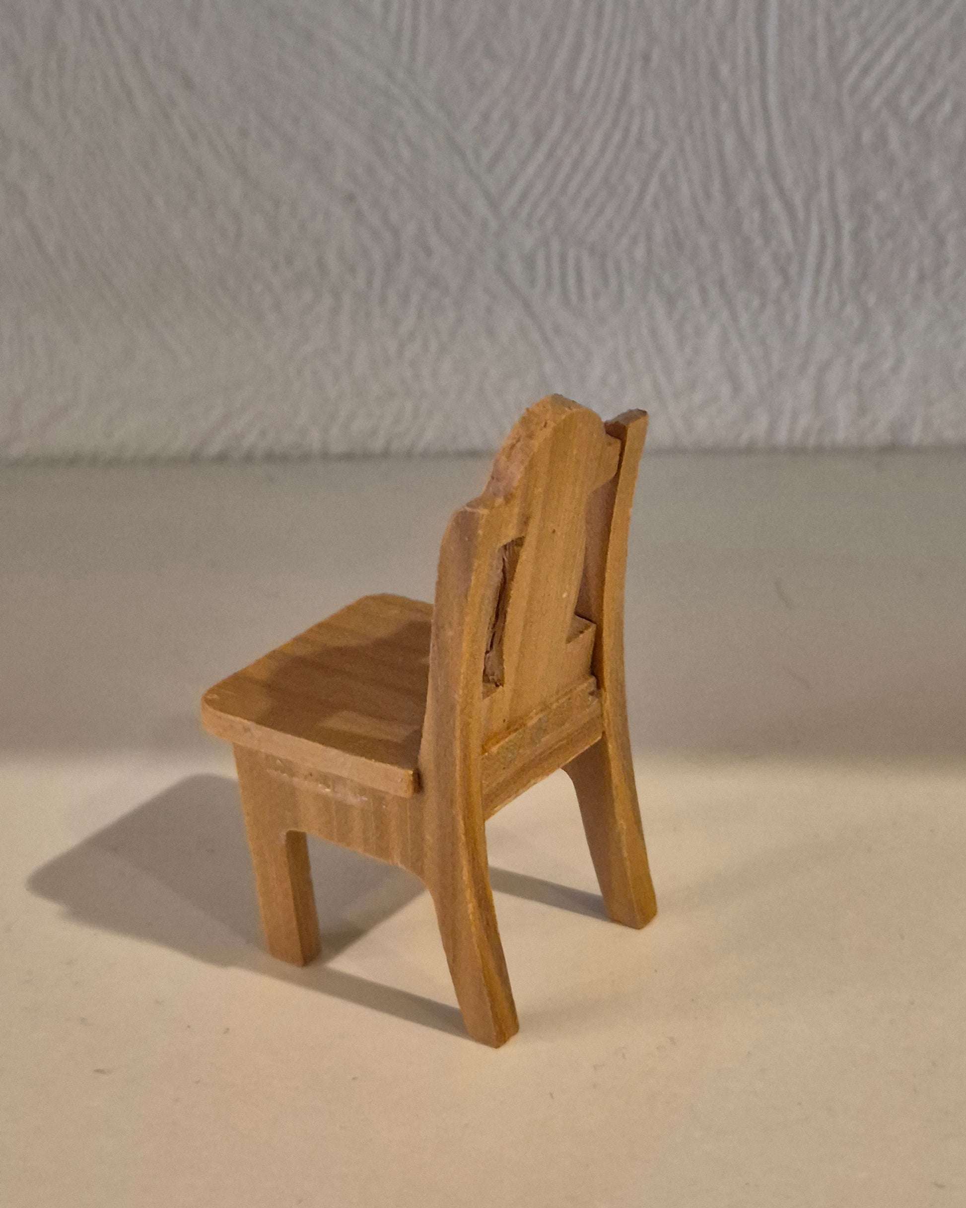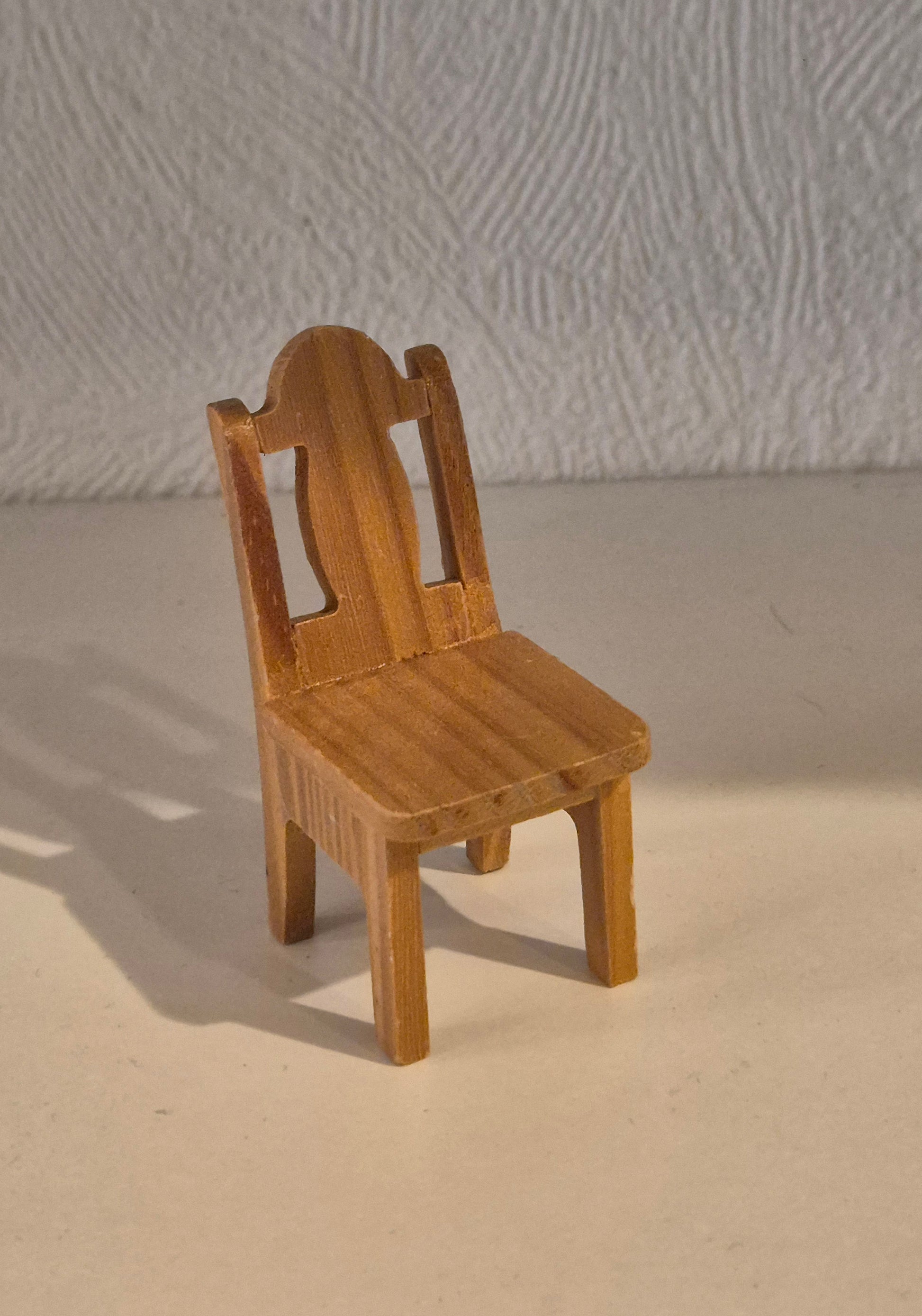 Pæn rustik stol af lyst træ til dukkehuset køkkenbord eller spisebordet.