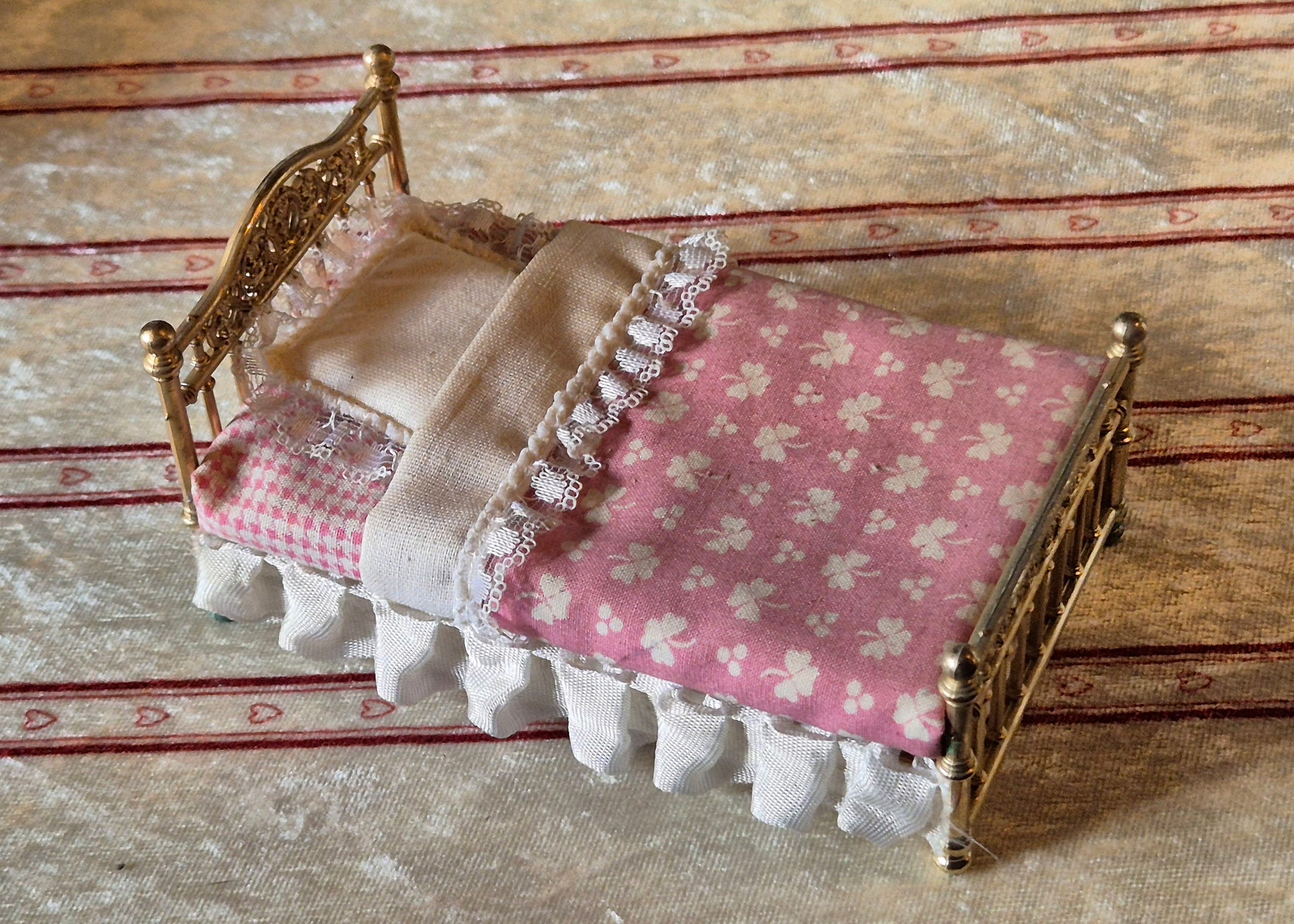God og sød børneseng til dukkehusets børneværelset. Den er i god stand og original. Pæn og fin.