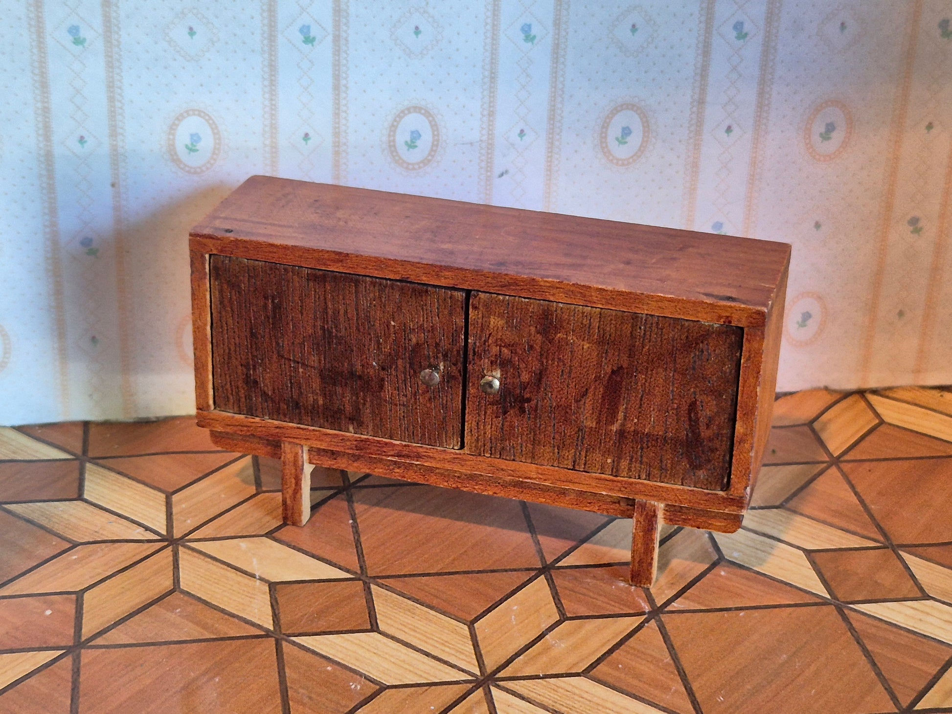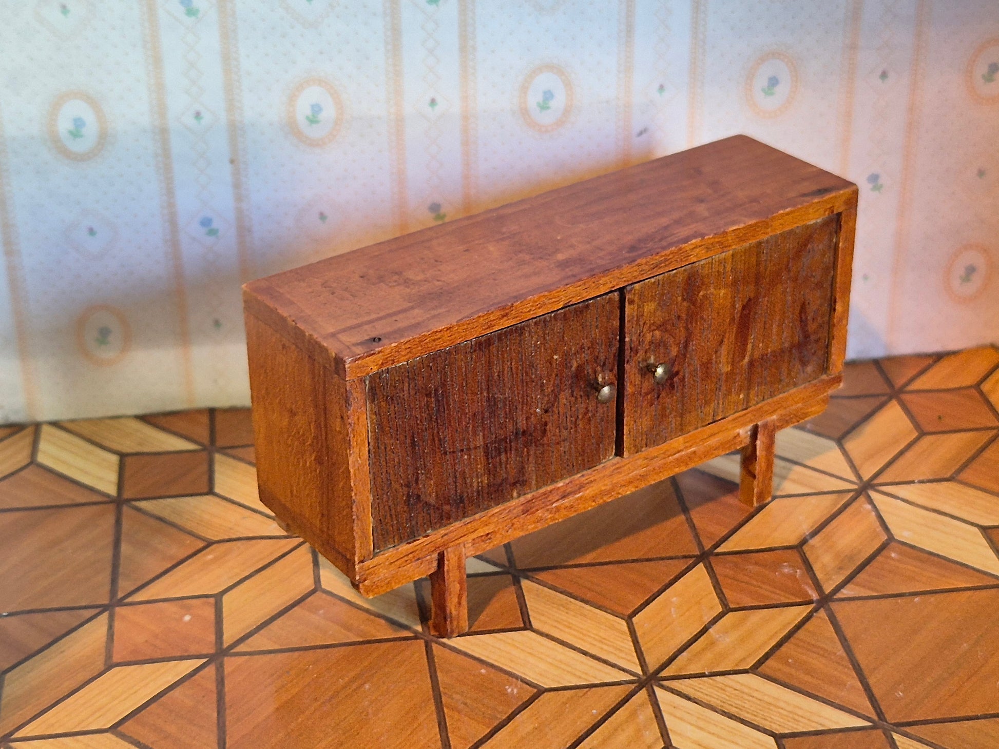 Pæn Lundby skænk af træ og teaktræ. Den ser slidt ud med patina og brugsspor. Den er vintage og ældre.