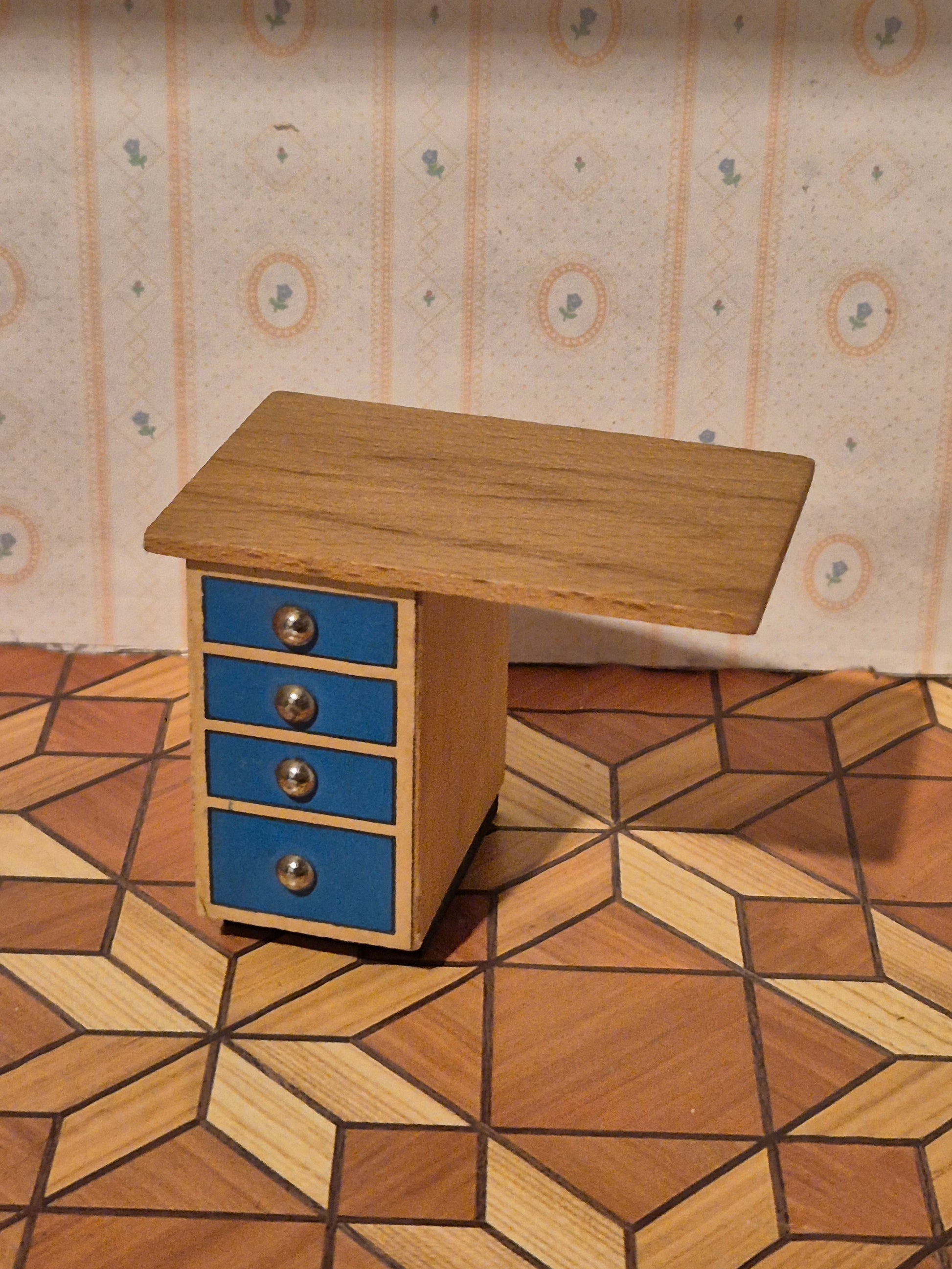 Lundby køkken møbel af træ med bordplade af træ. Skuffe element.