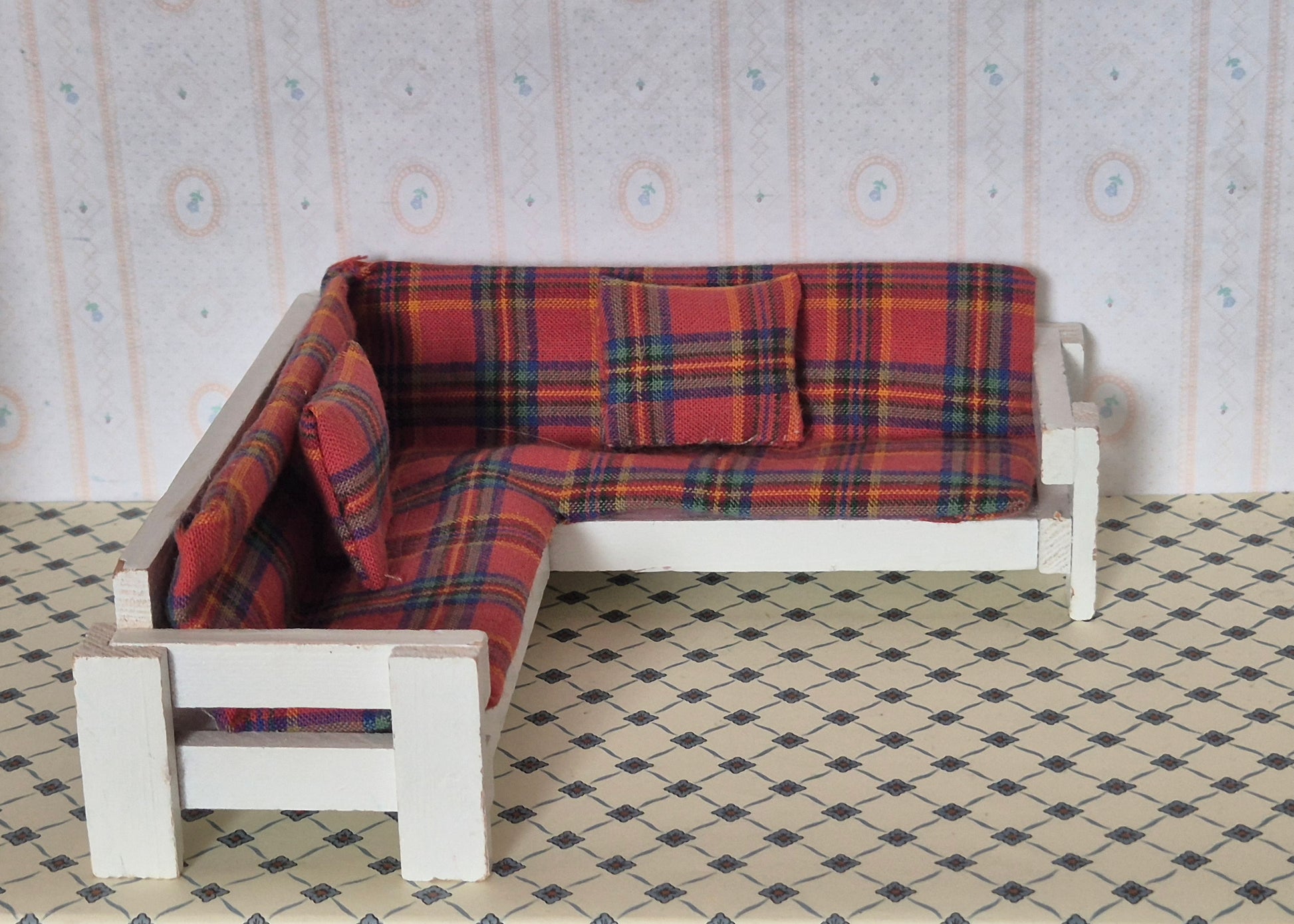 Pæn Lundby sofa der er blevet renoveret med nyt betræk og malet. Udmærket stand. Dukkehusmøbel