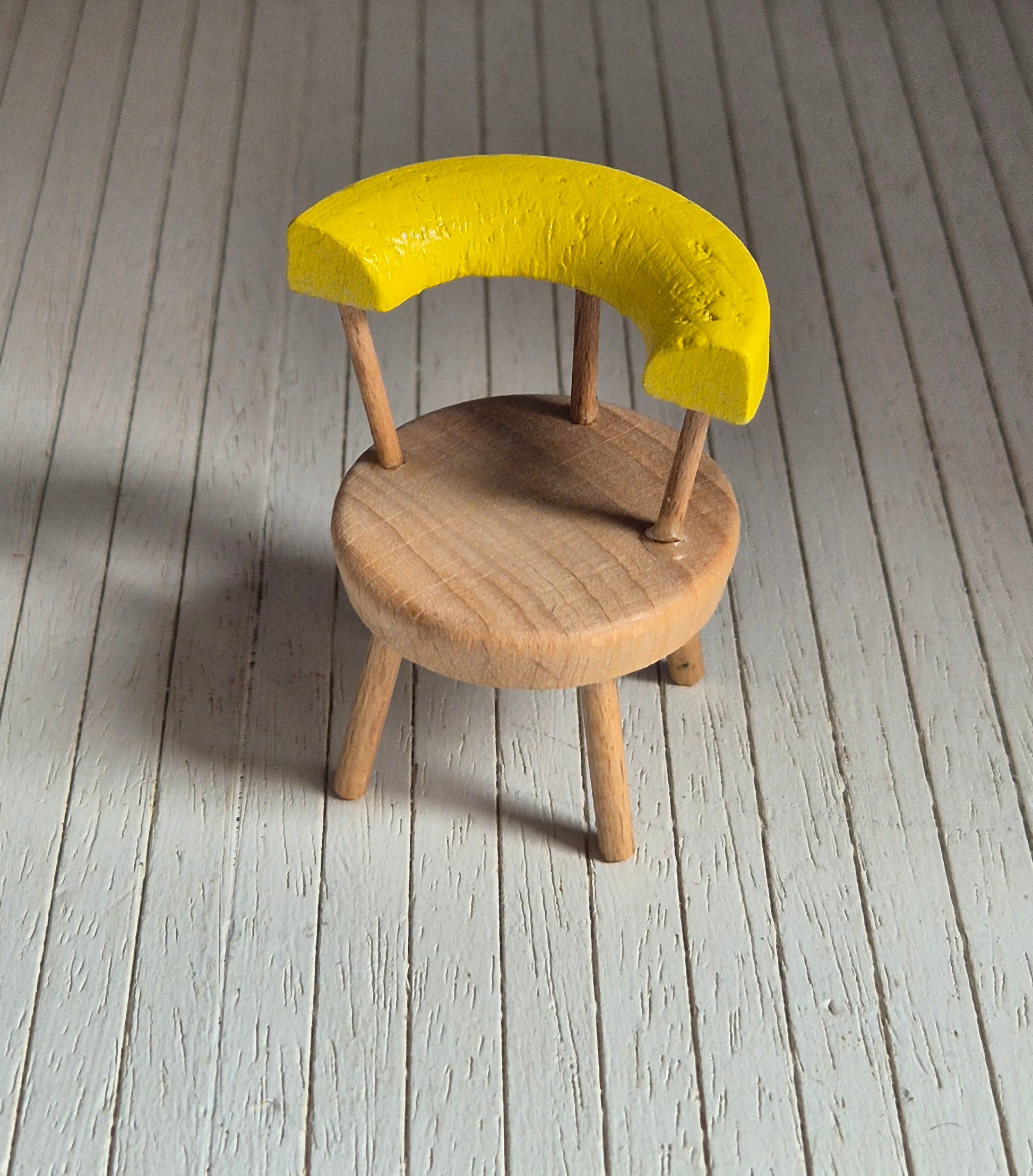 Pæn Lundby stol. God gul rundrygget stol af træ til dukkehuset fx køkkenet eller børneværelset. God fin stand.