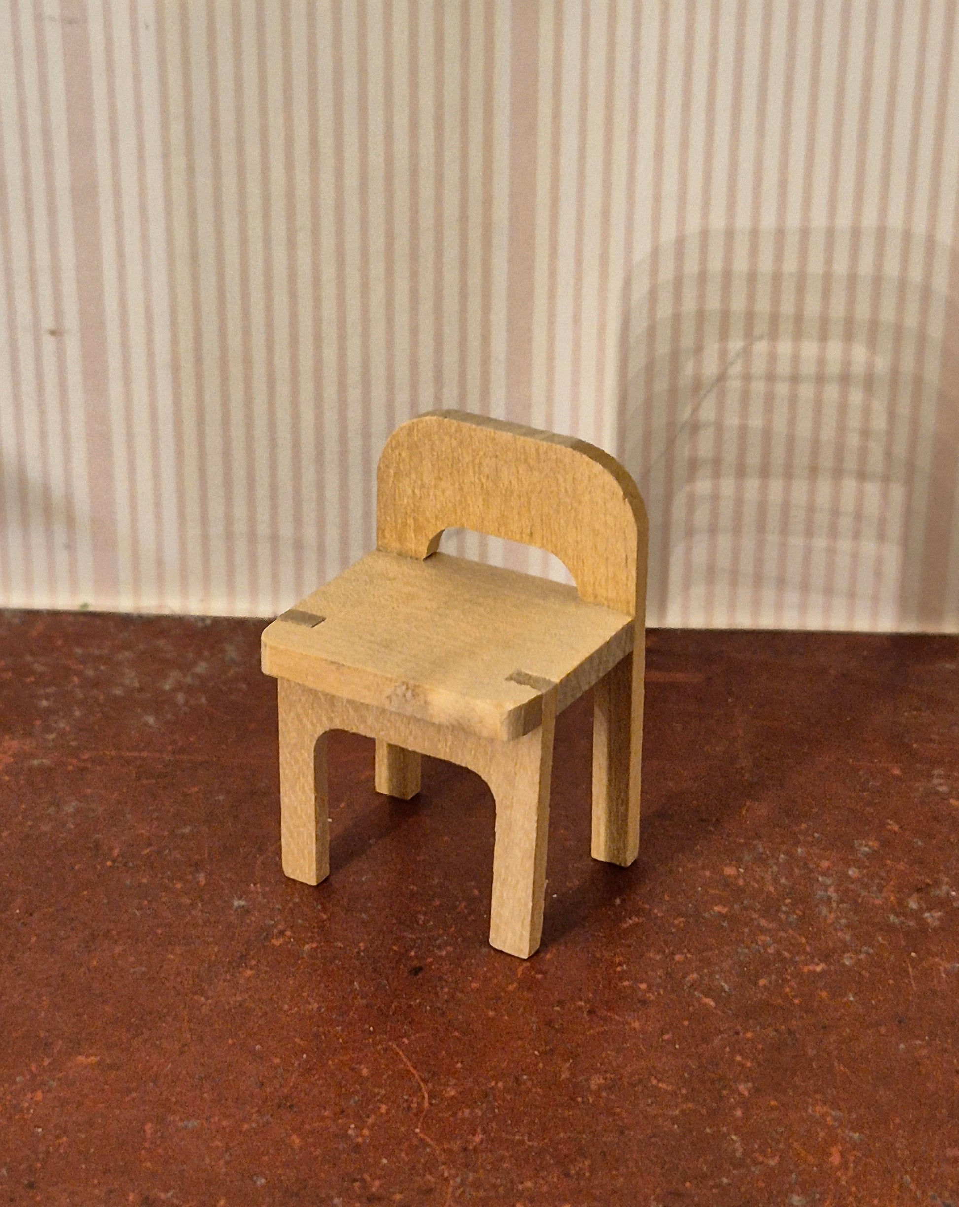 Stolen er af træ og høj til dukken, men passer fint til det tilhørende symaskinebord.