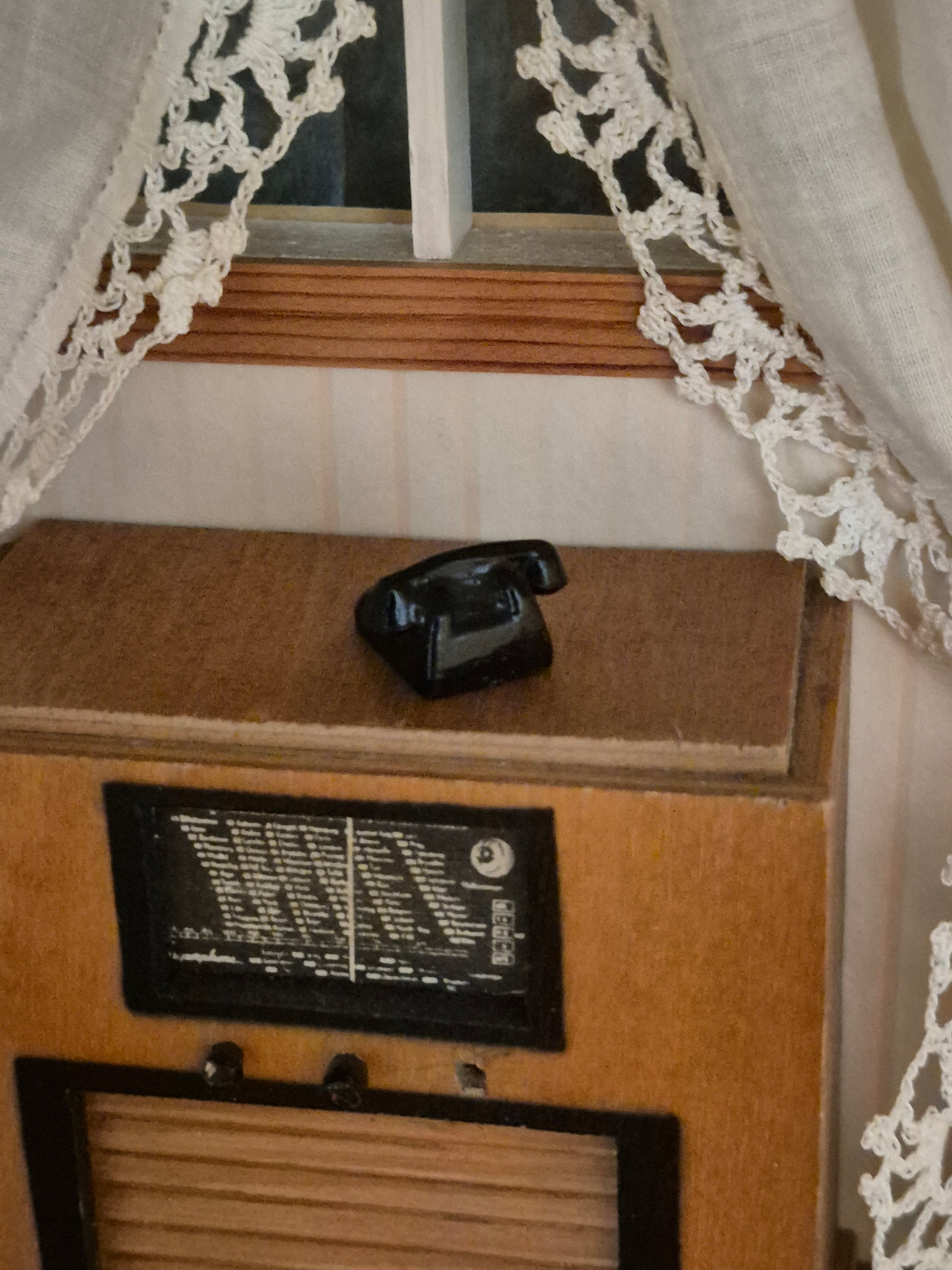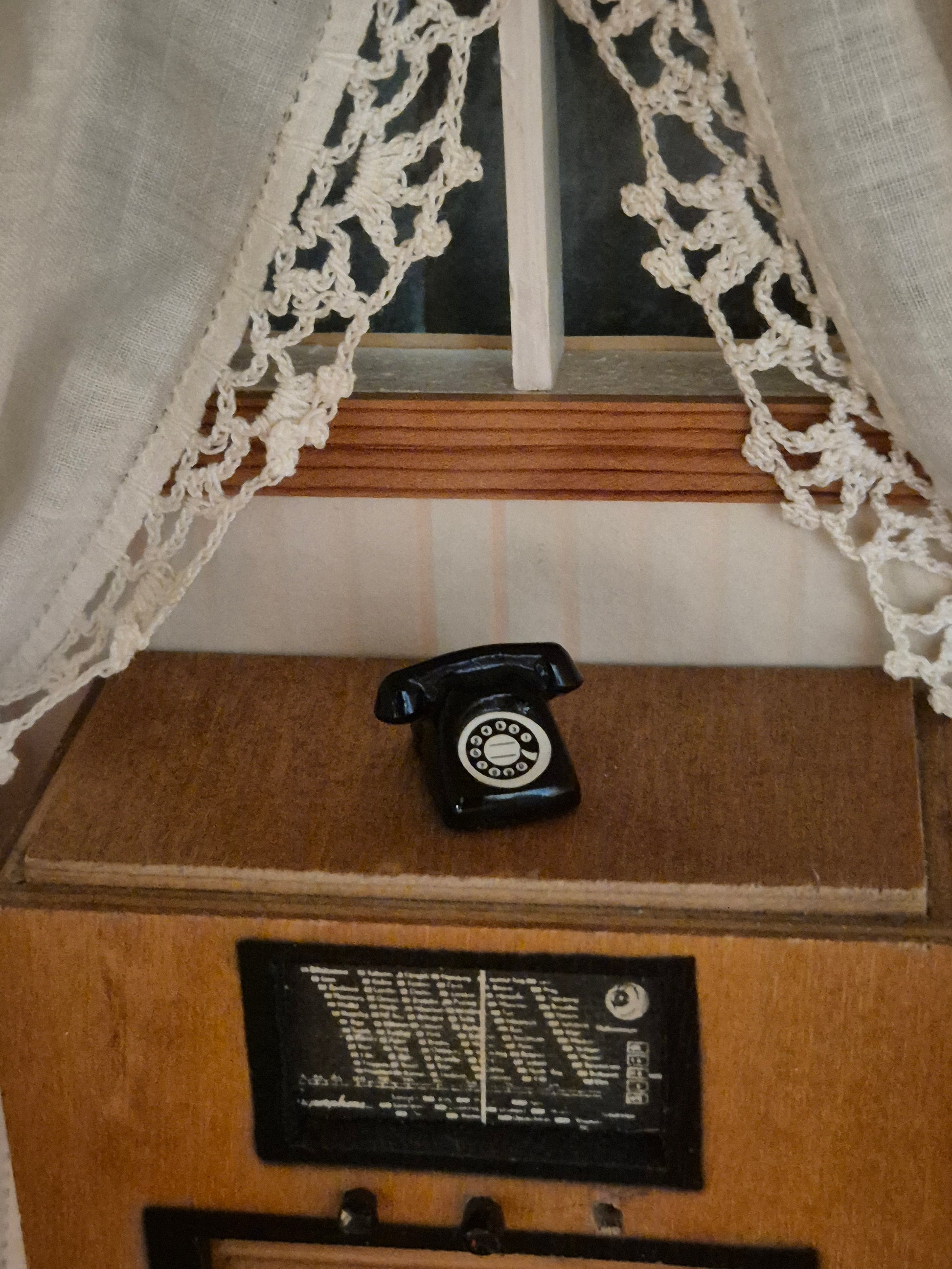 Pæn lille telefon til Lundby dukkehus eller str 1:16. Telefonrøret kan ikke tages af.