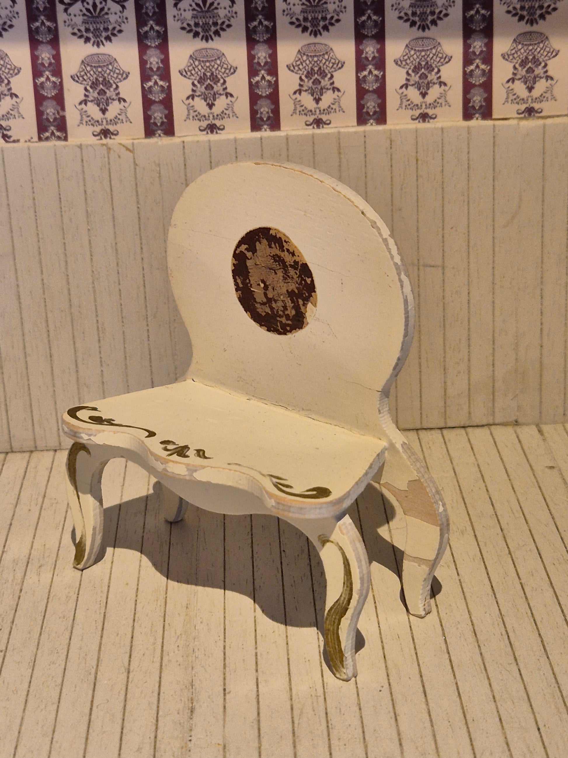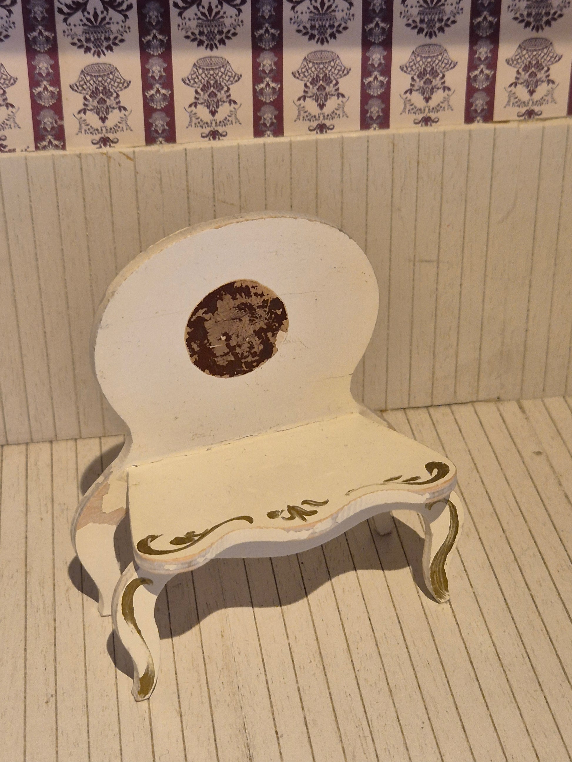 Lundby sminkebord fra 1950erne i hvid rokoko stil med guld detaljer og fine udskæringer.