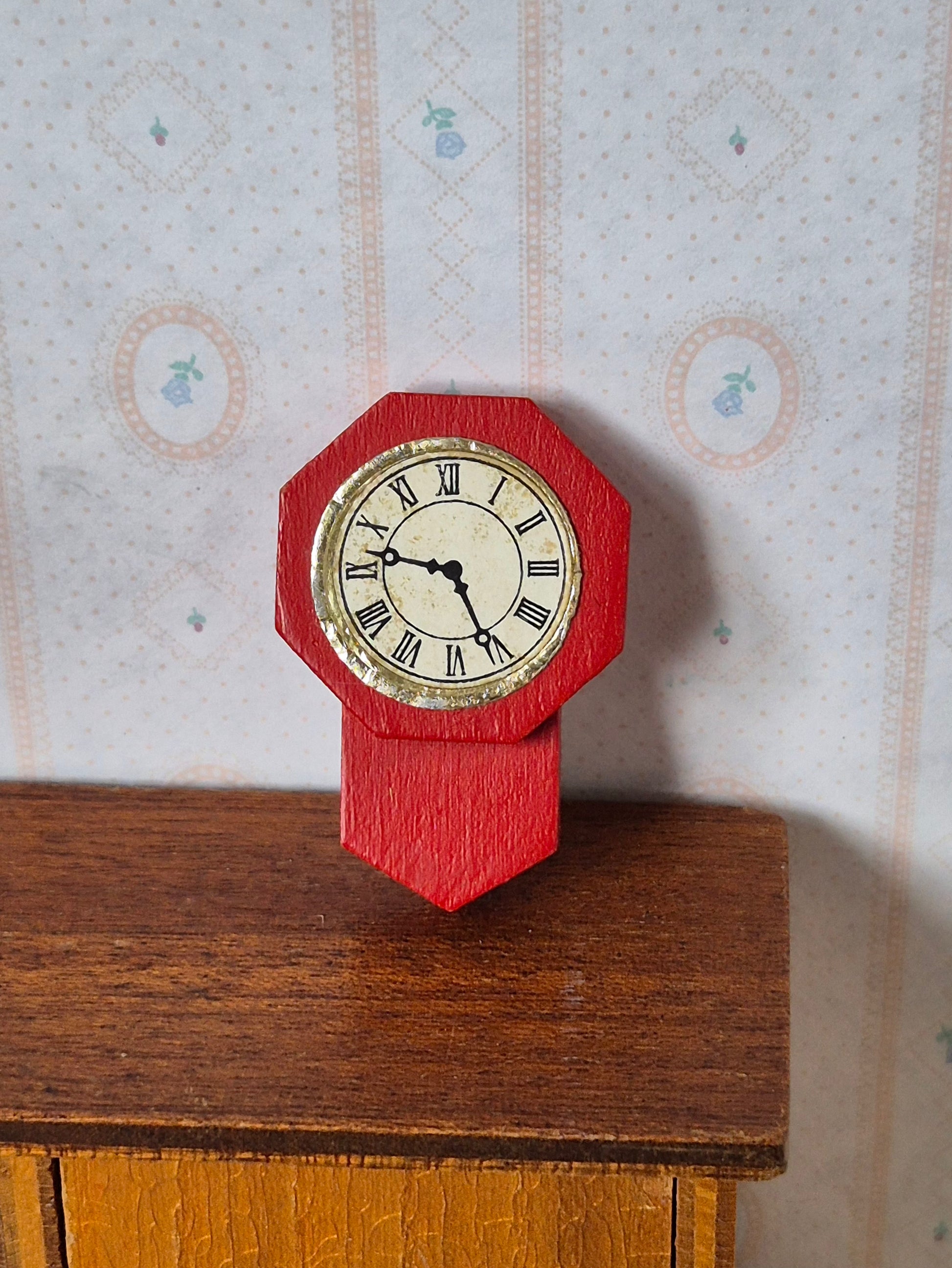 Rødt Lundby ur i almue stil. Der mangler et klistermærke, men ellers intakt.