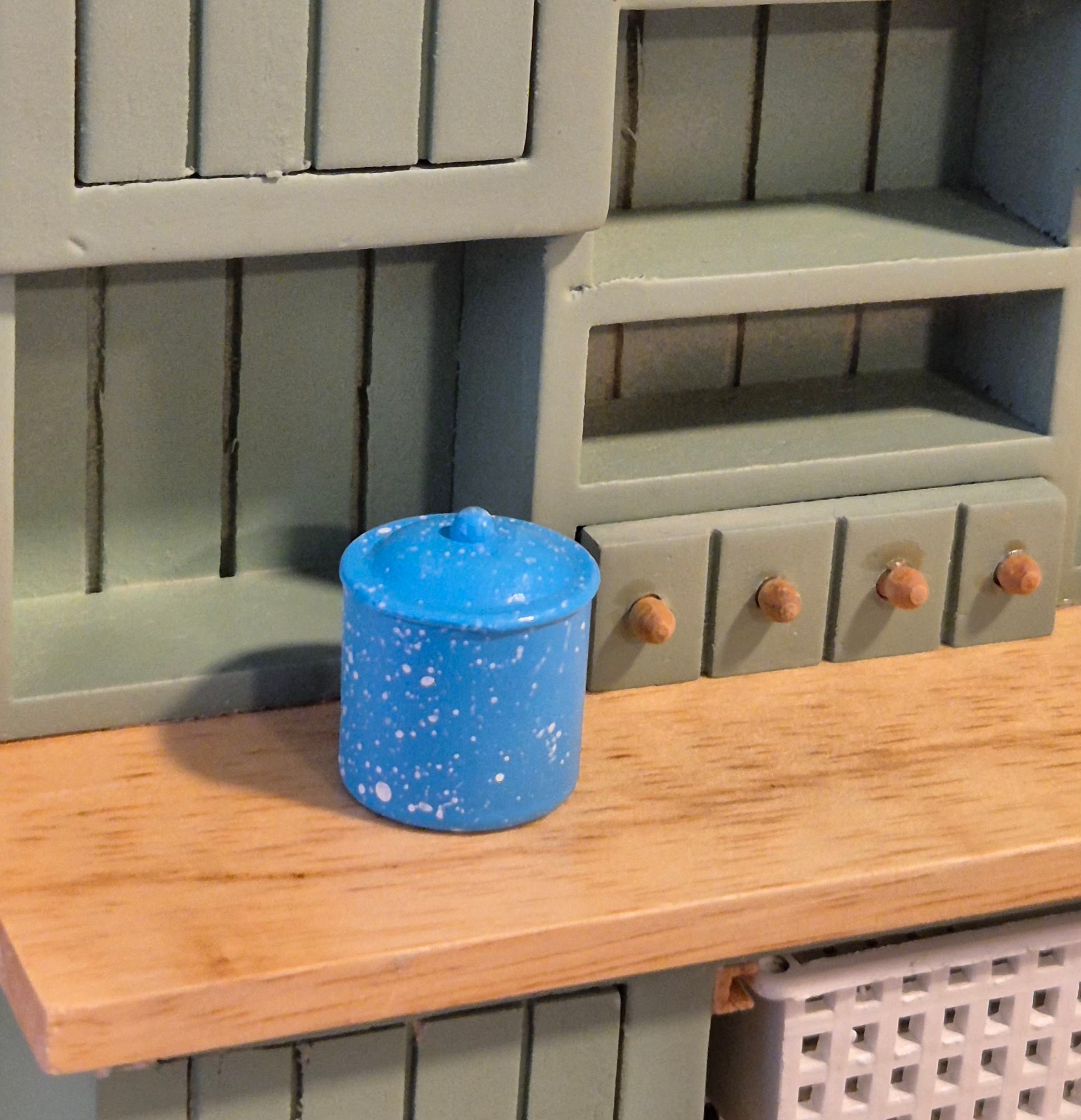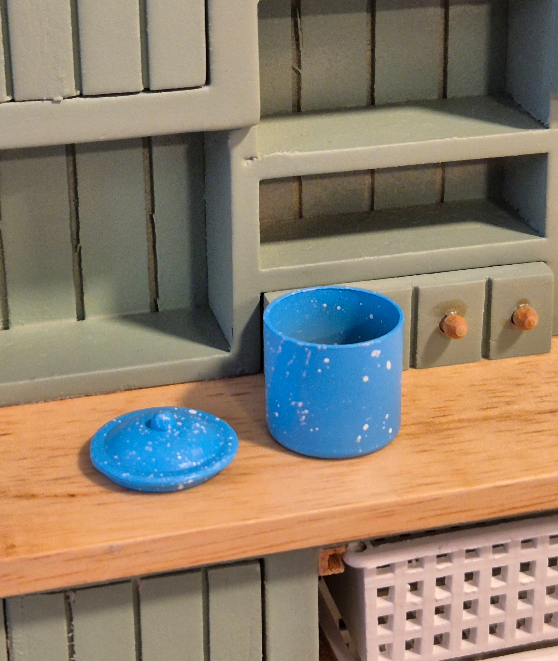 Pæn lyseblå metal kagedåse eller opbevarings dåse med aftageligt låg.